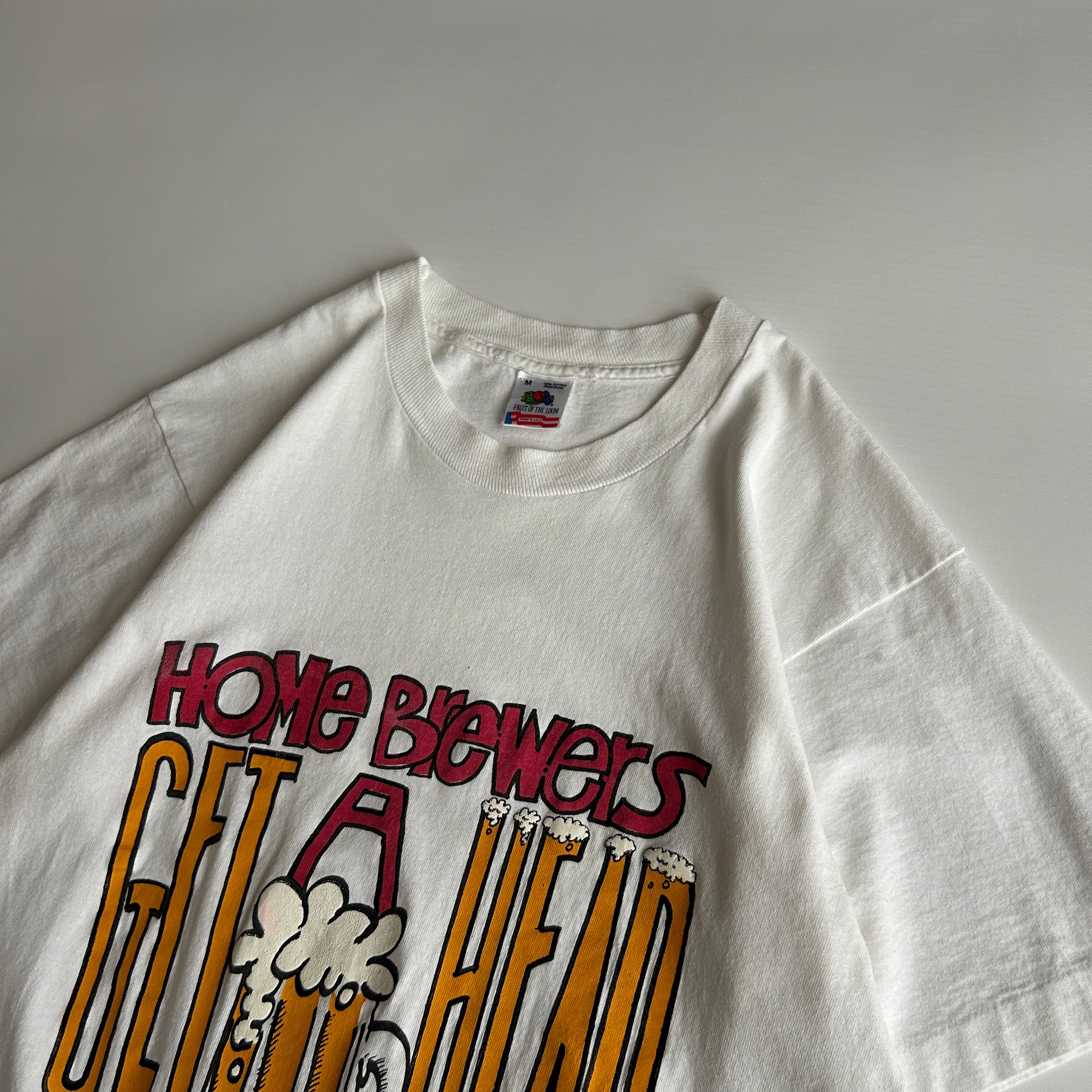 90s FRUIT OF THE LOOM BEER-Print-T-Shirt Made in USA