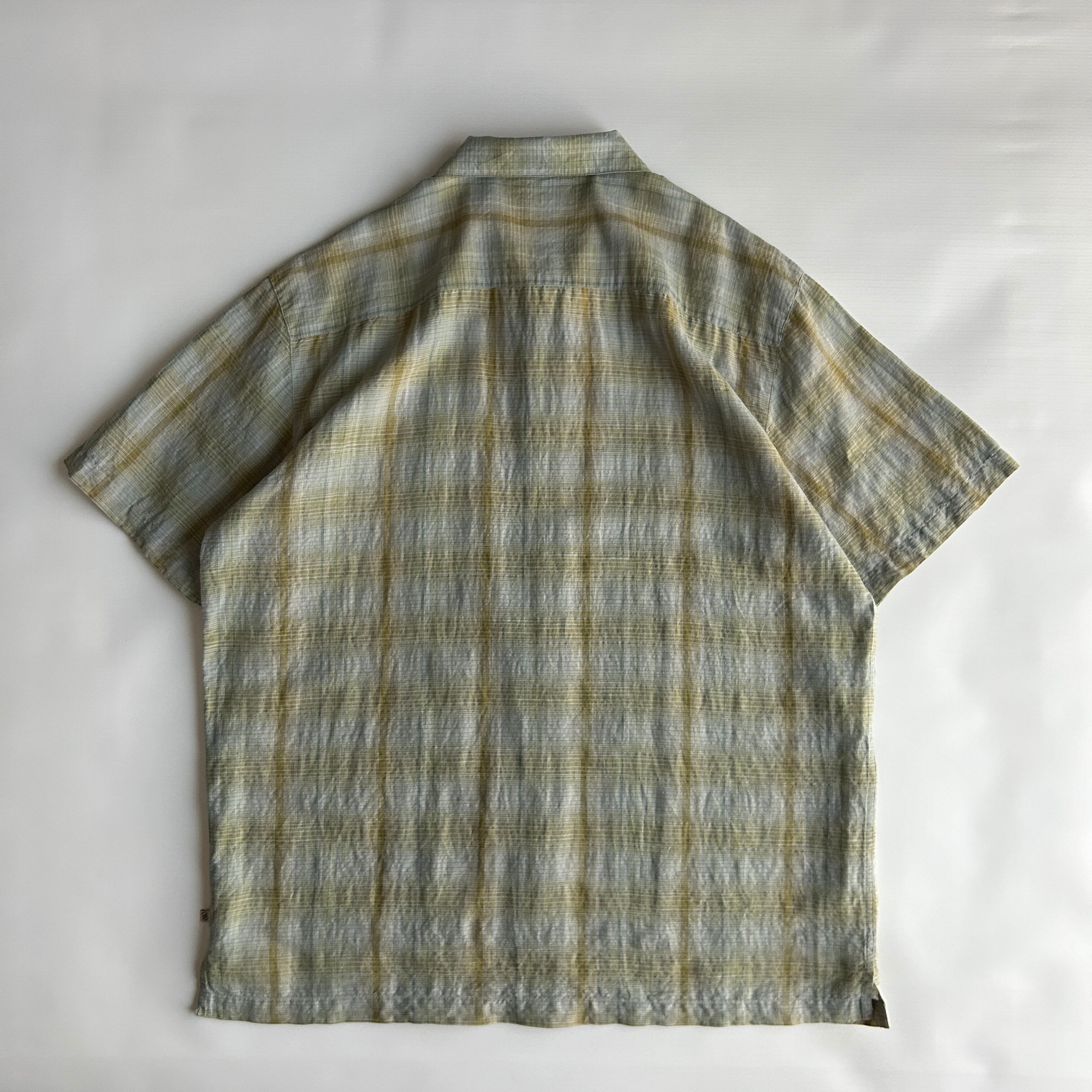 寒色とアースカラーの組み合わせのオンブレチェックシャツ。