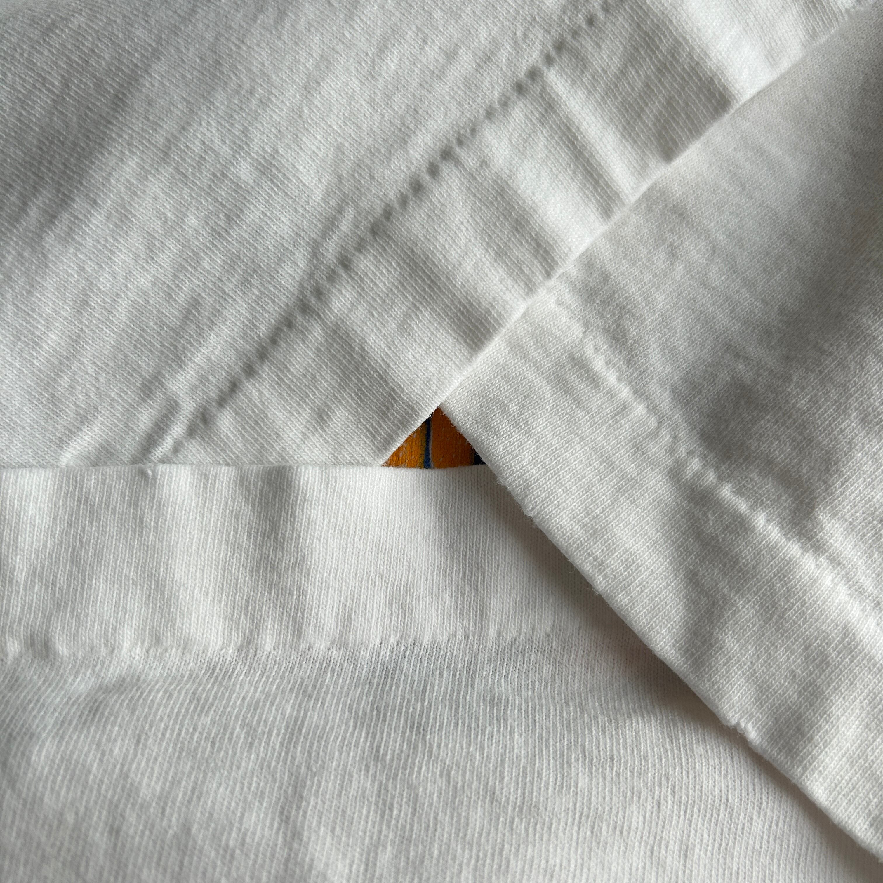 右脇腹にダメージ、背面にシミ、首リブや袖裾にダメージがあります。