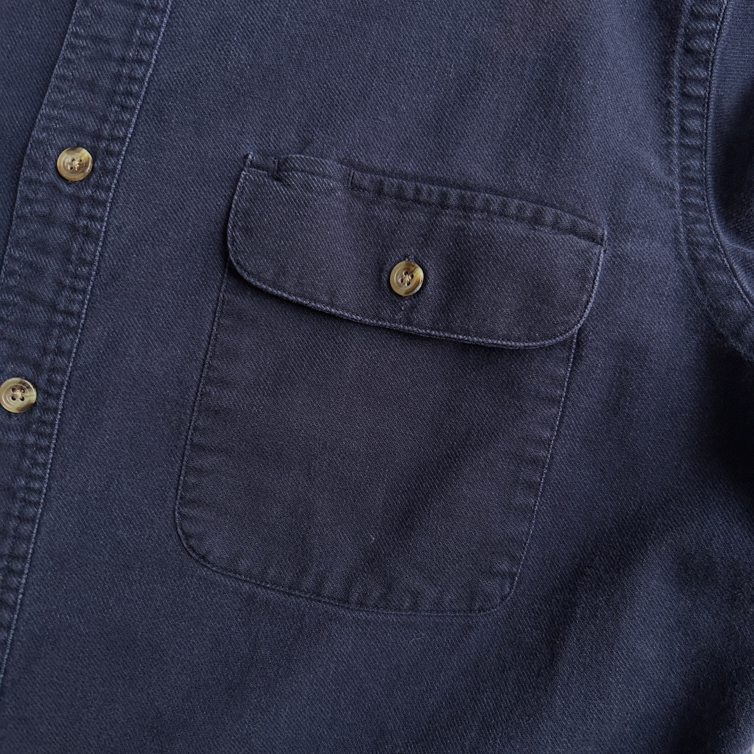 柔らかいツイル生地、ワークっぽい雰囲気のフラップポケット、裾はスクエアカットでサイドスリットあり。