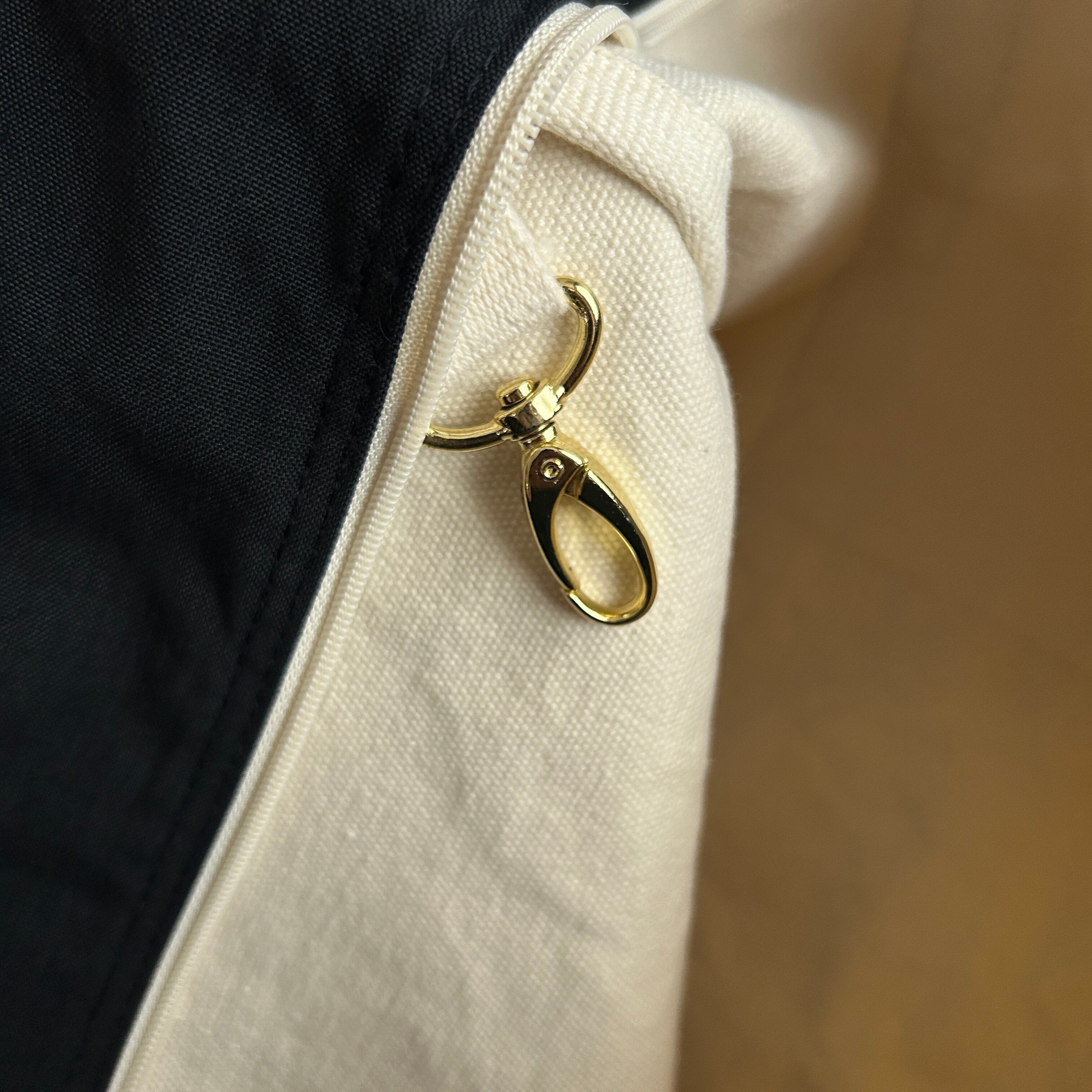 しっかりとしたホワイトカラーのキャンバス生地にブラックの組み合わせは意外と見ないかもしれないですね。