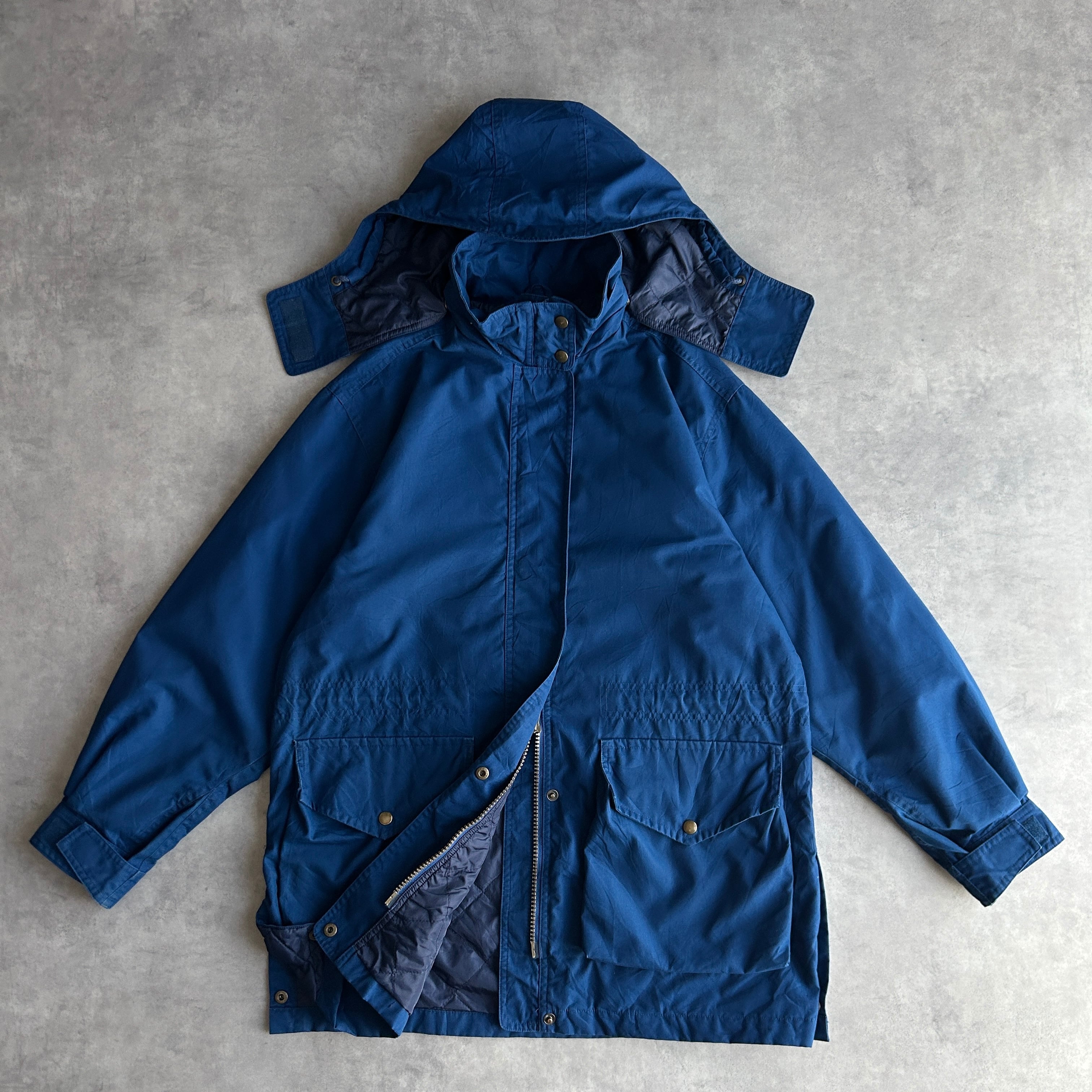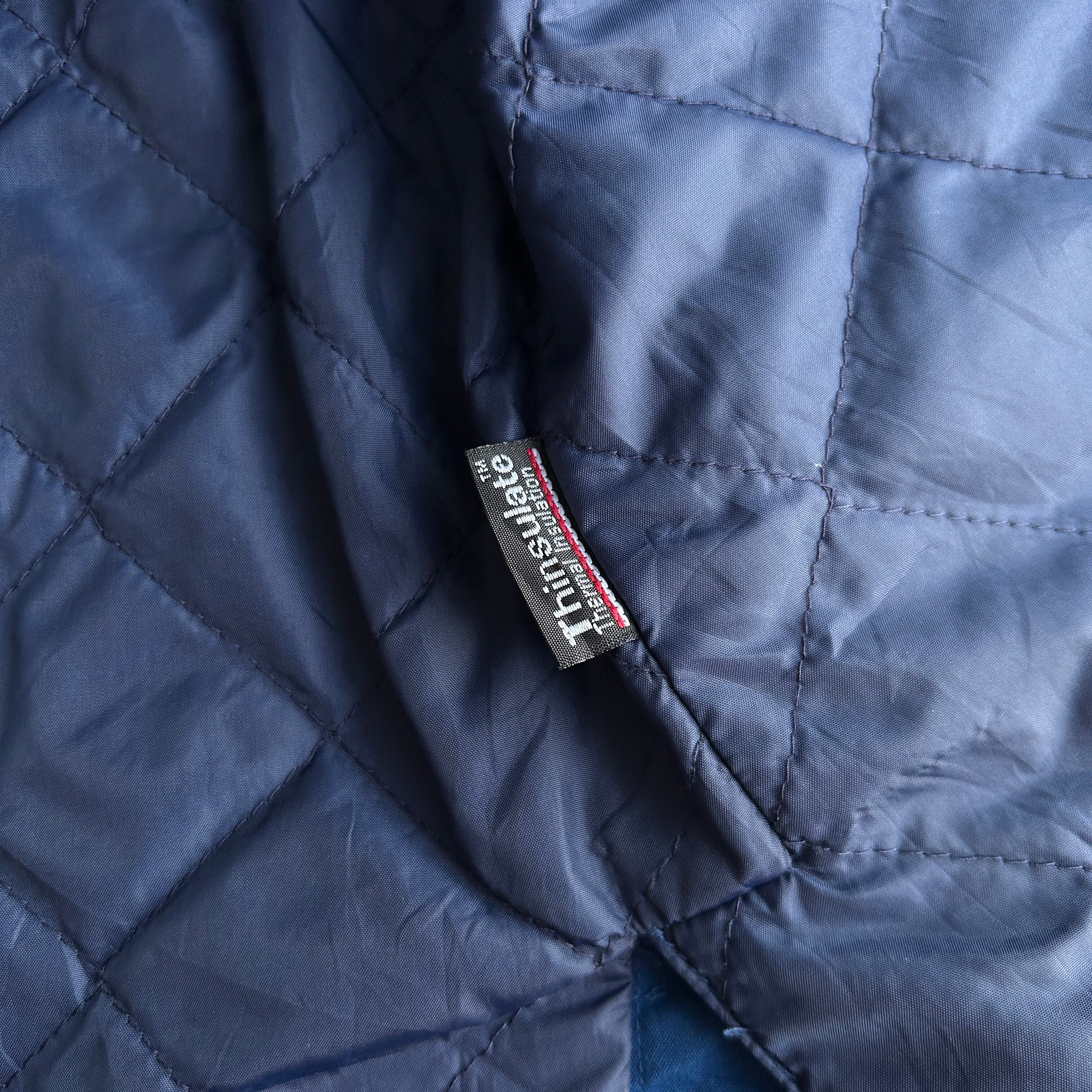 Thinsulateの、裏キルティング、フード取り外し可、ダブルジップ、サイドポケット、裾サイドスリット入り。