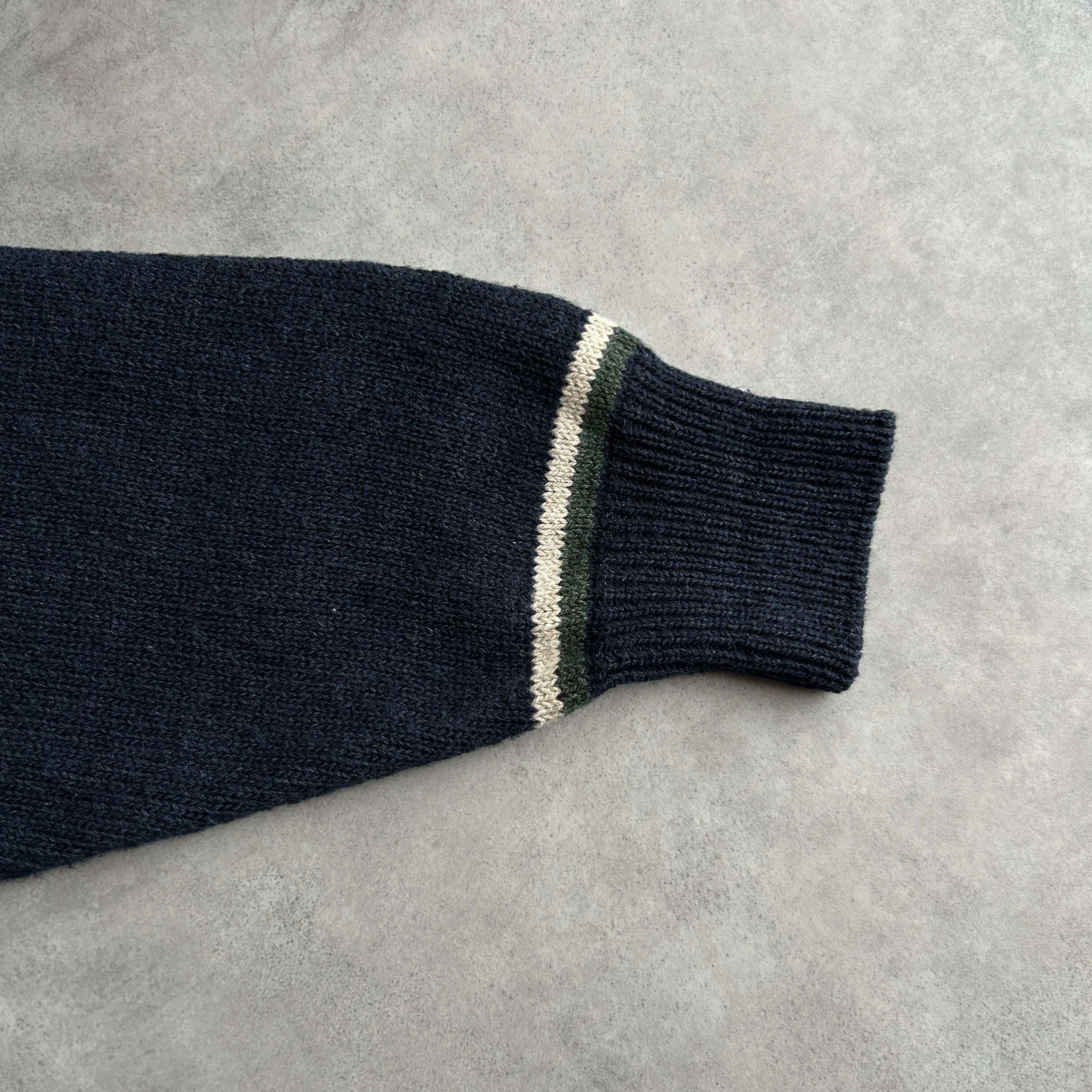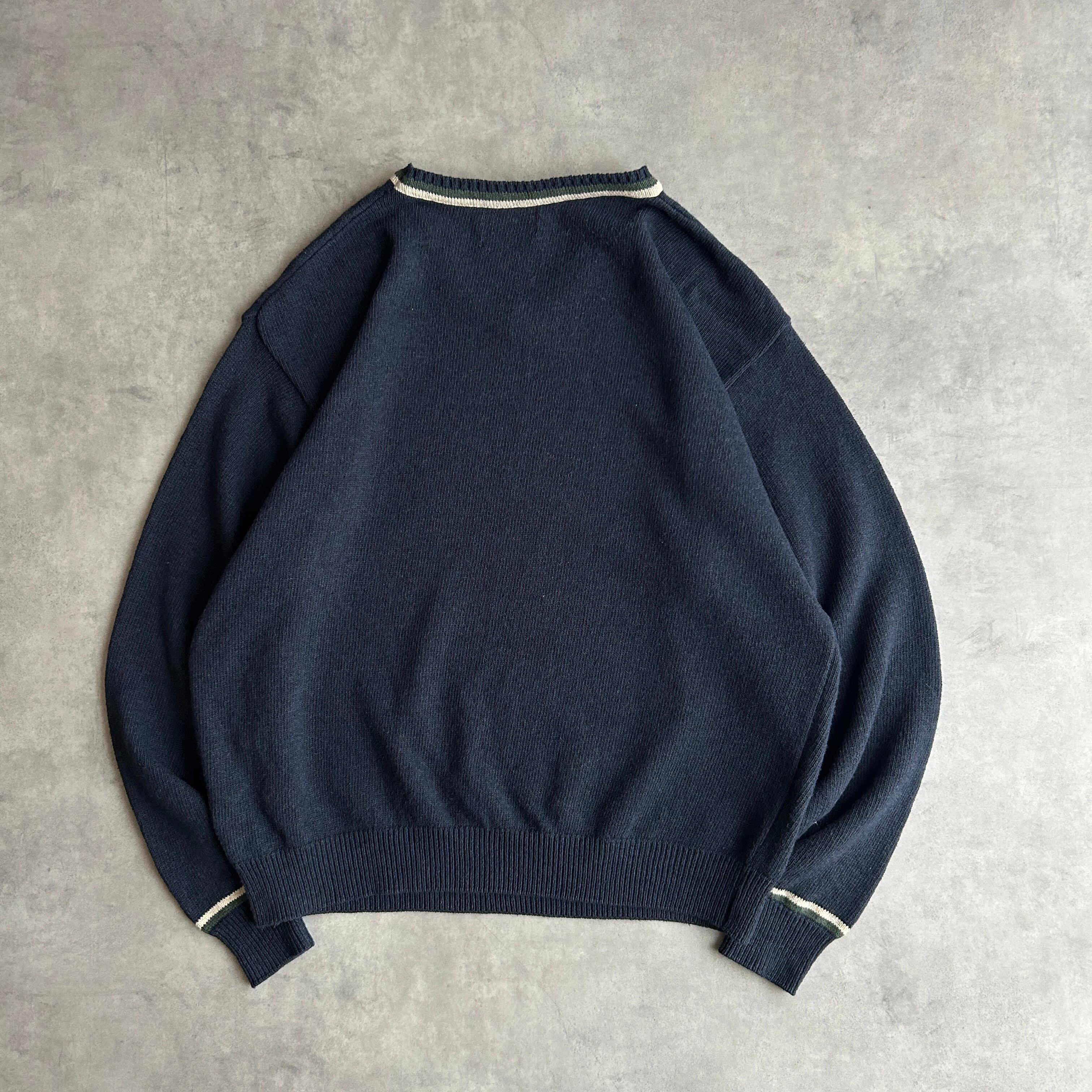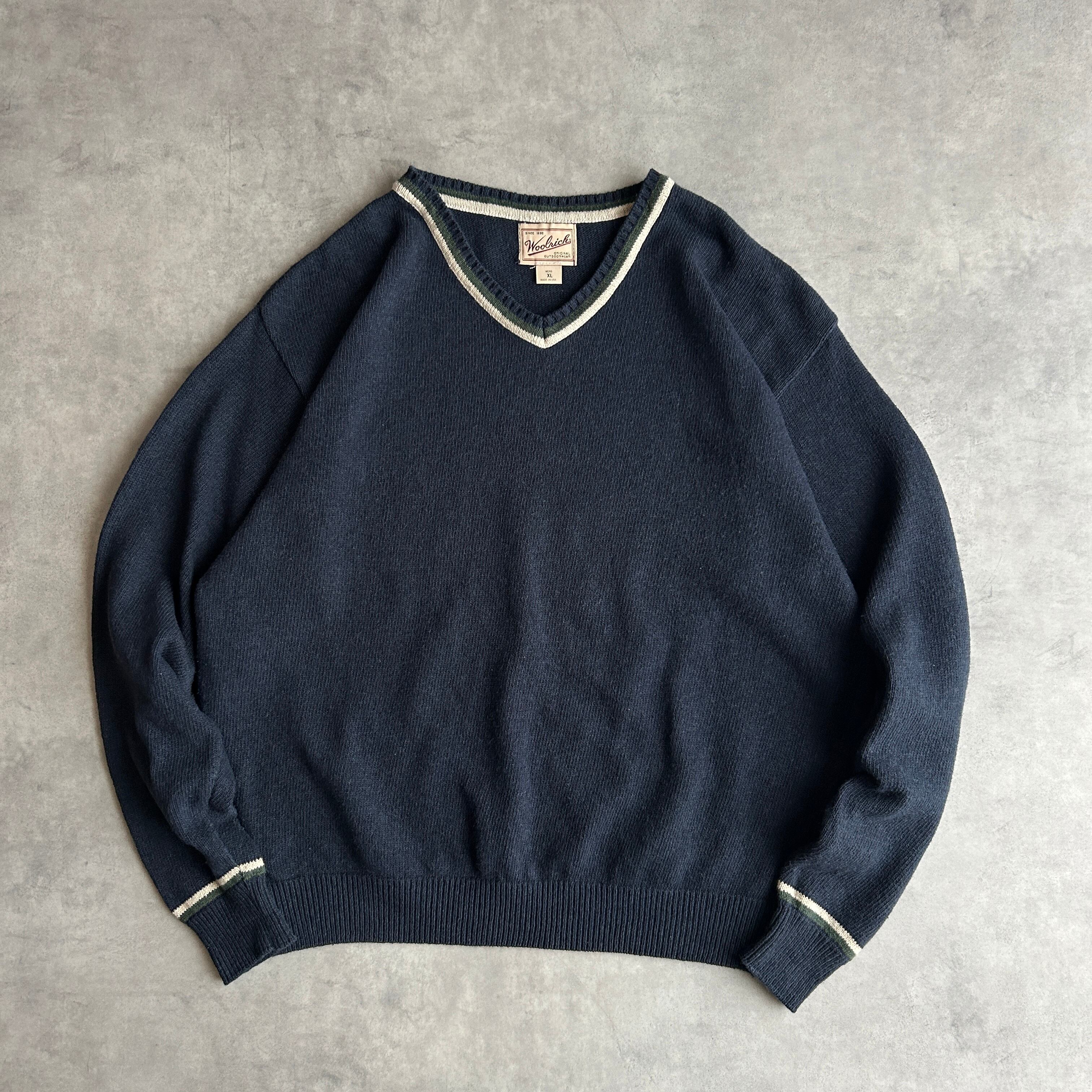 90s/woolrich/ウールリッチ/コットンニット/USA製/アメリカ製/リブライン/プルオーバー/ソリッド/ノームコア/グランパコア/XL/ネイビー/紺