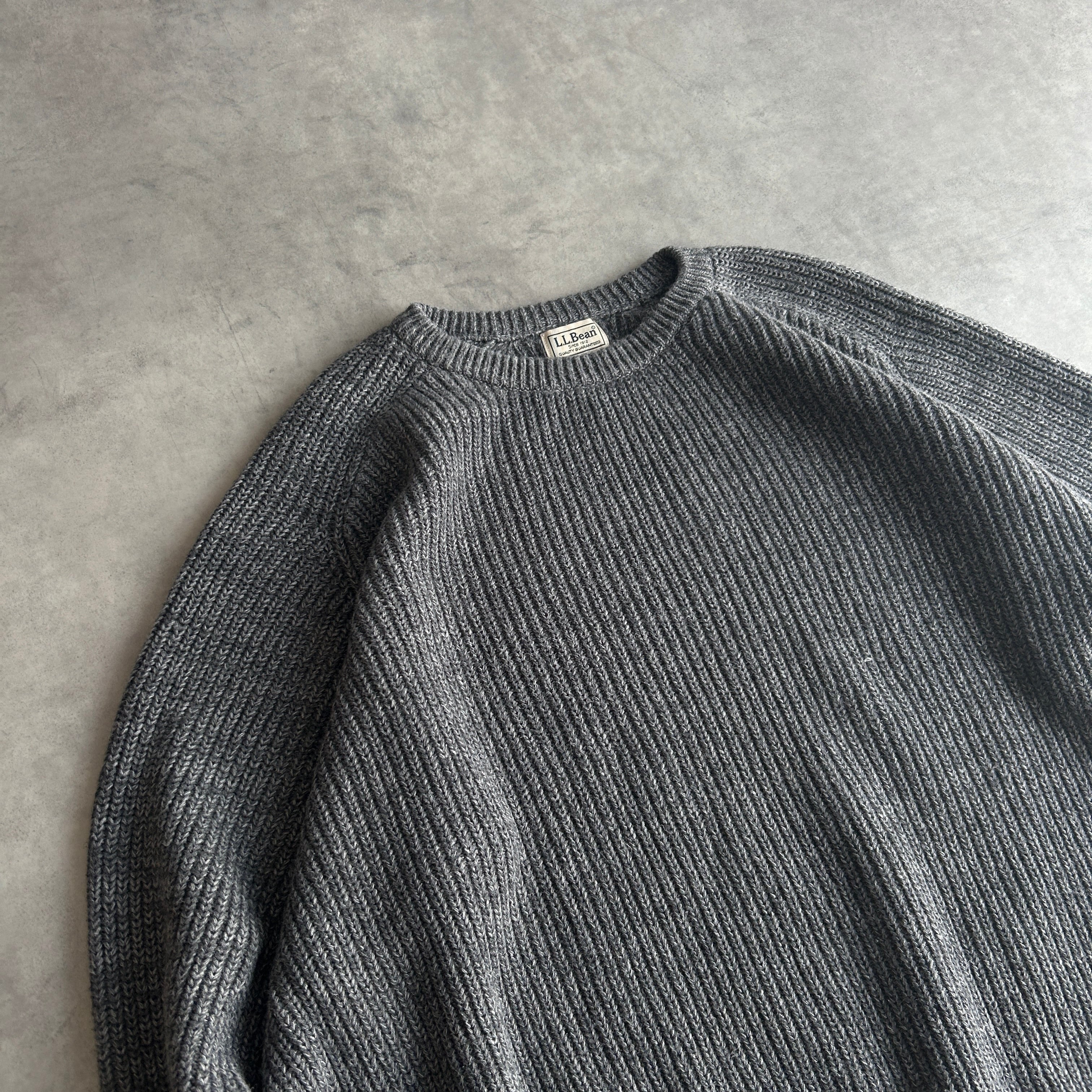 L.L.Bean/エルエルビーン/コットンニット/フリーダムスリーブ/メランジ/杢/霜降り/リブ編み/畔編み/プルオーバー/クルーネック/グレー/XL