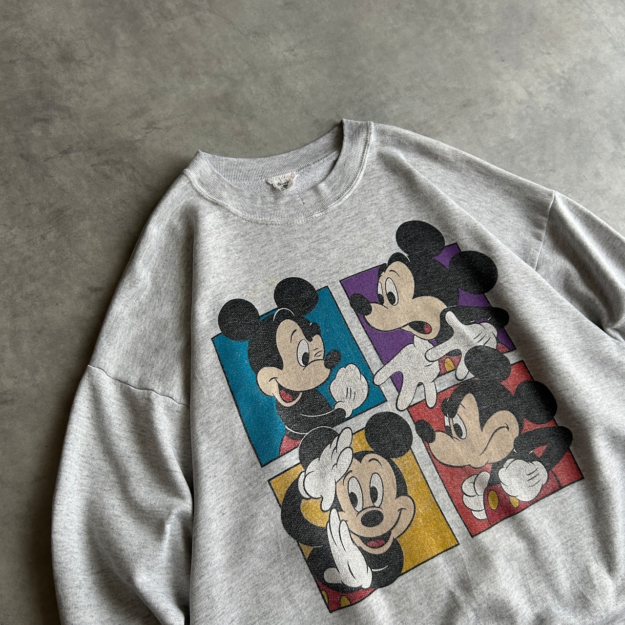ポップカラーアート調に割り振られた4コマに異なる表情のミッキーがかわいらしいデザイン。