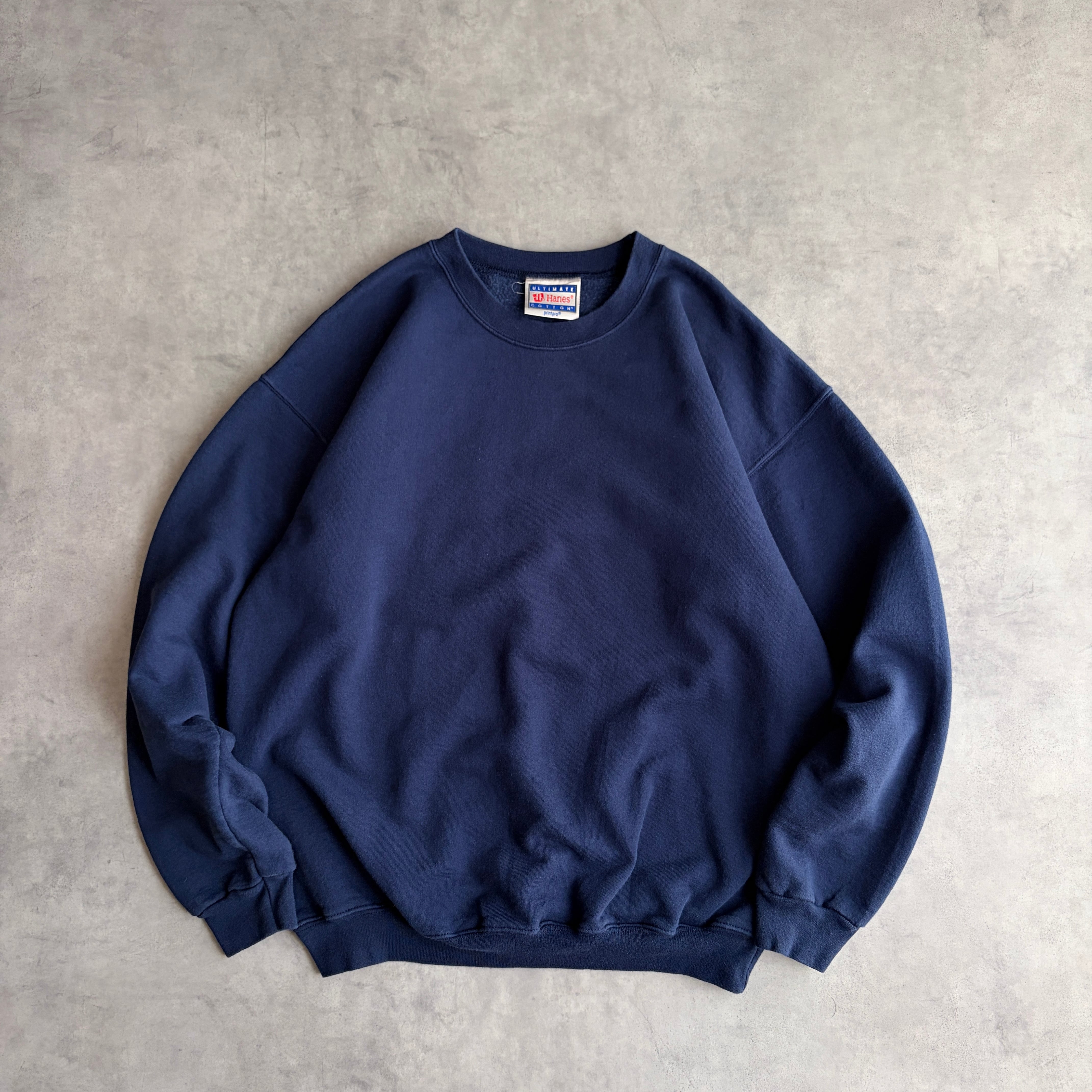 90s〜00s/Hanes/ヘインズ/ULTIMATE COTTON/無地スウェット/ソリッド/プレーン/ブランク/ネイビー/紺/M程度