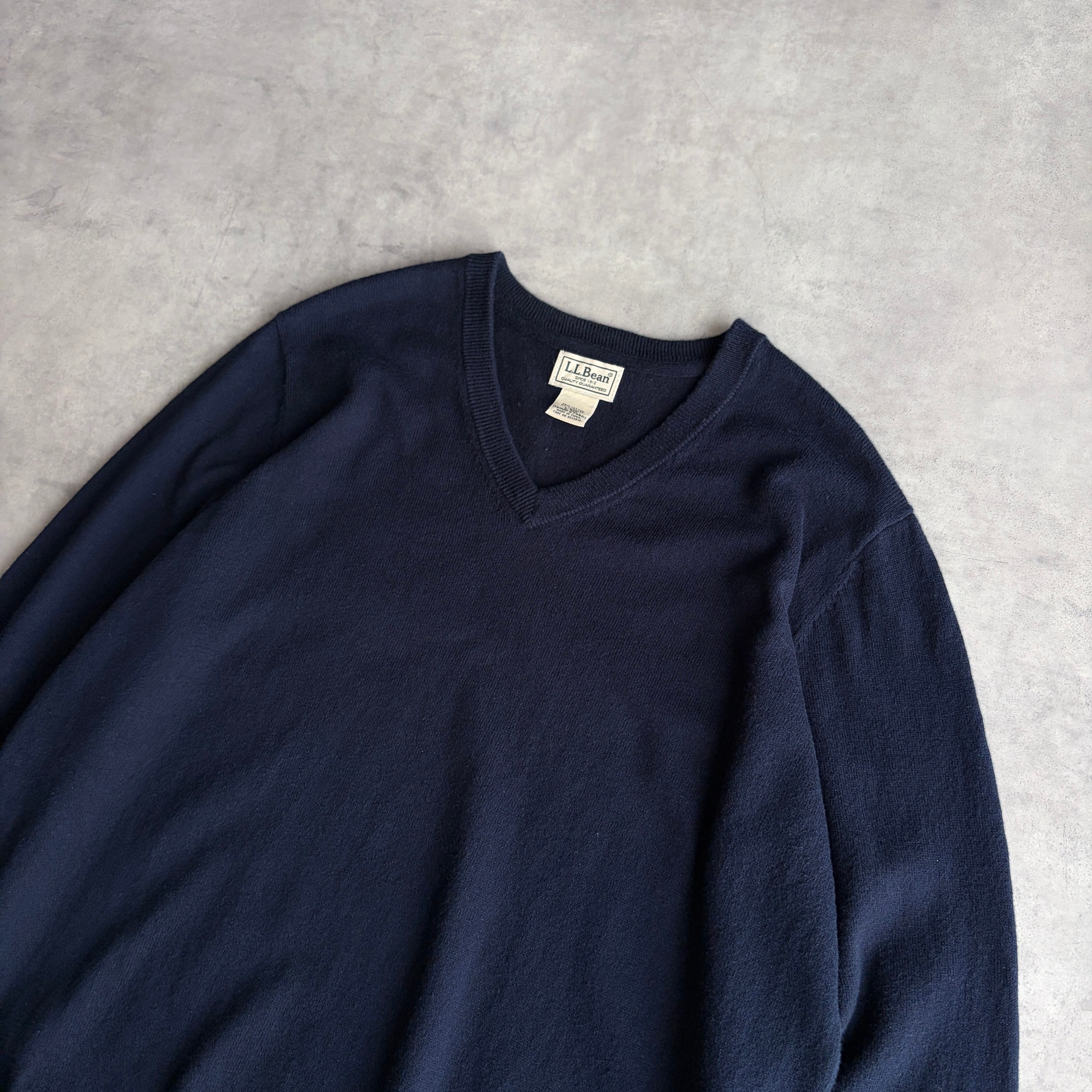 L.L.Bean/エルエルビーン/コットンニット/カシミヤ混/プルオーバー/Vネック/ソリッド/ノームコア/グランパコア/無地/ネイビー/紺/L