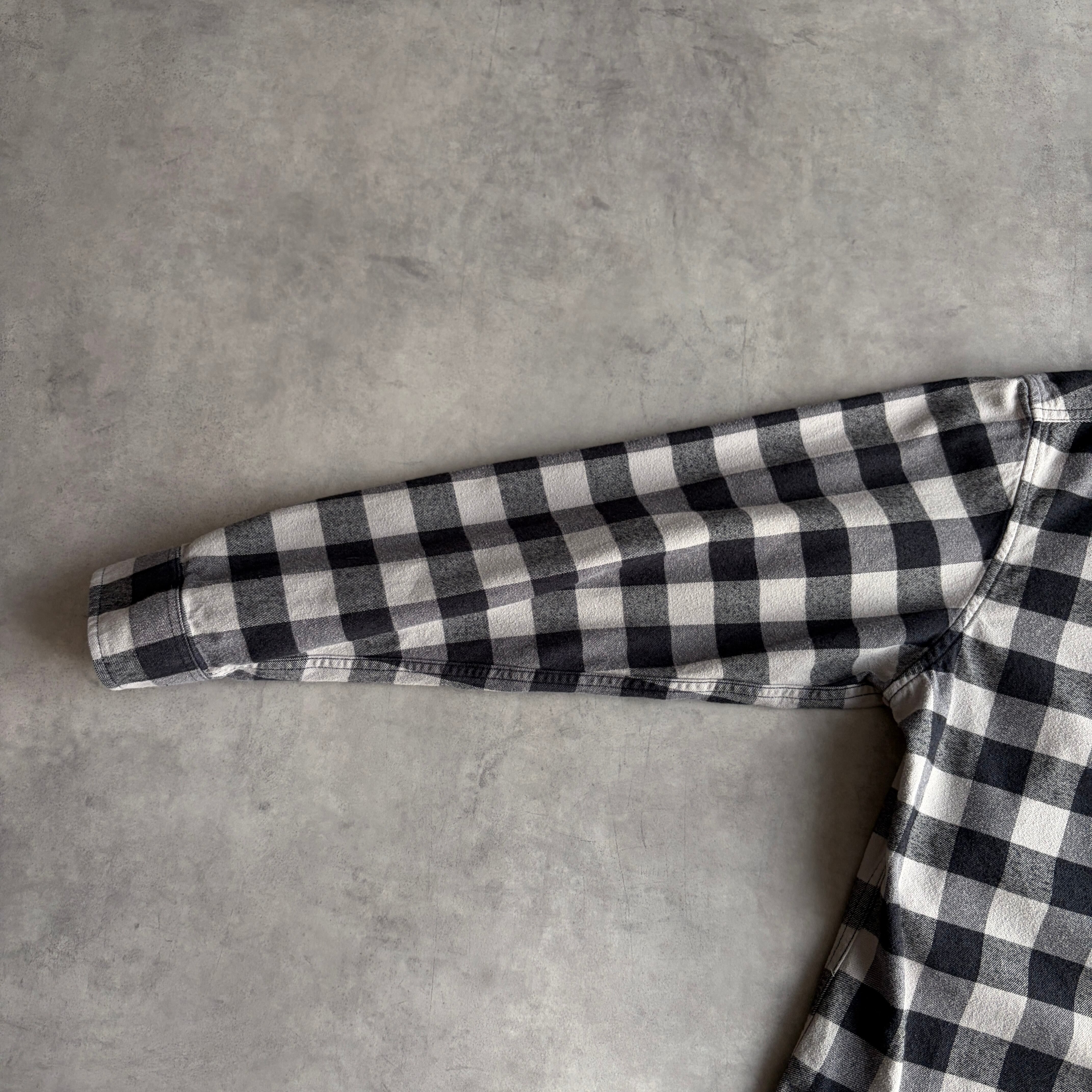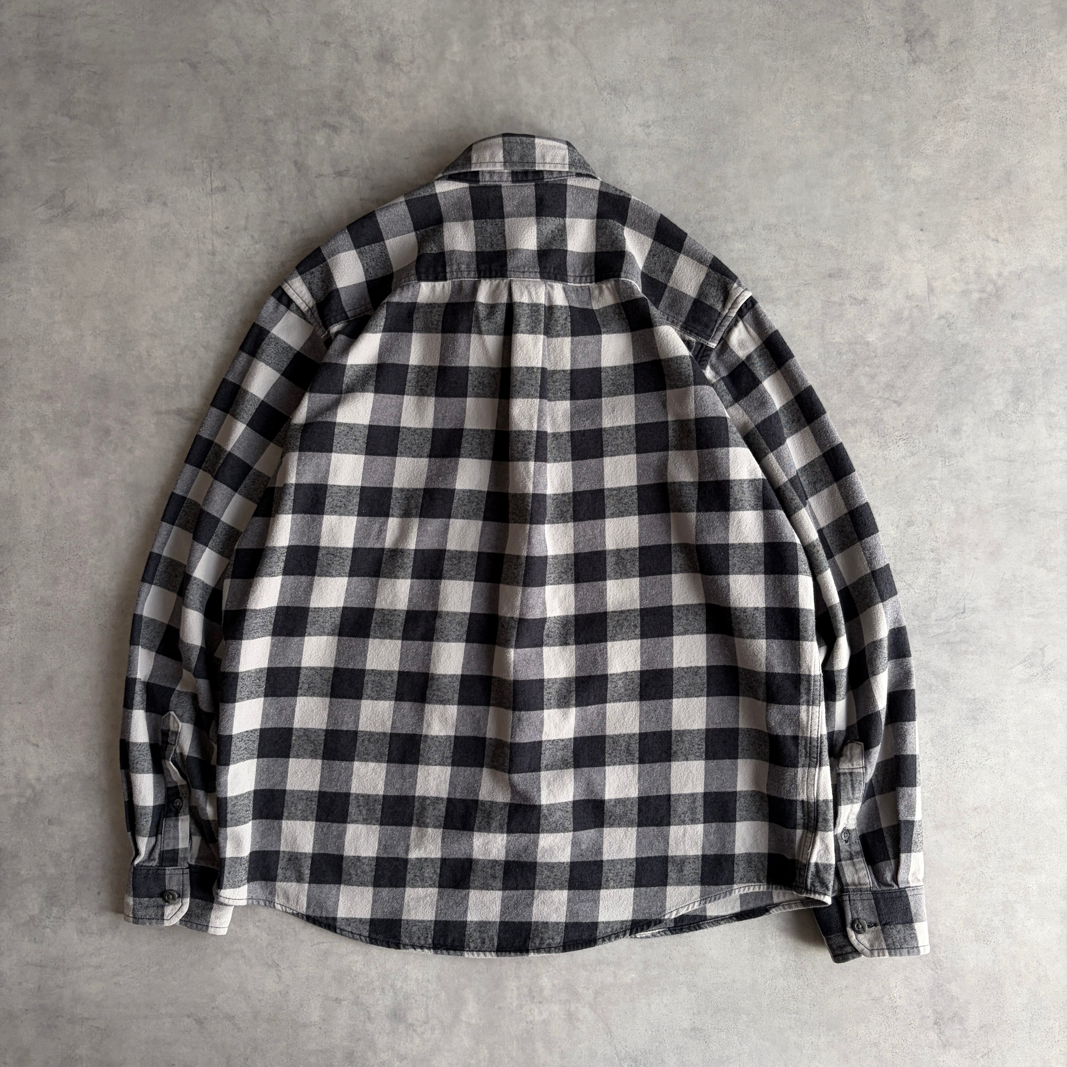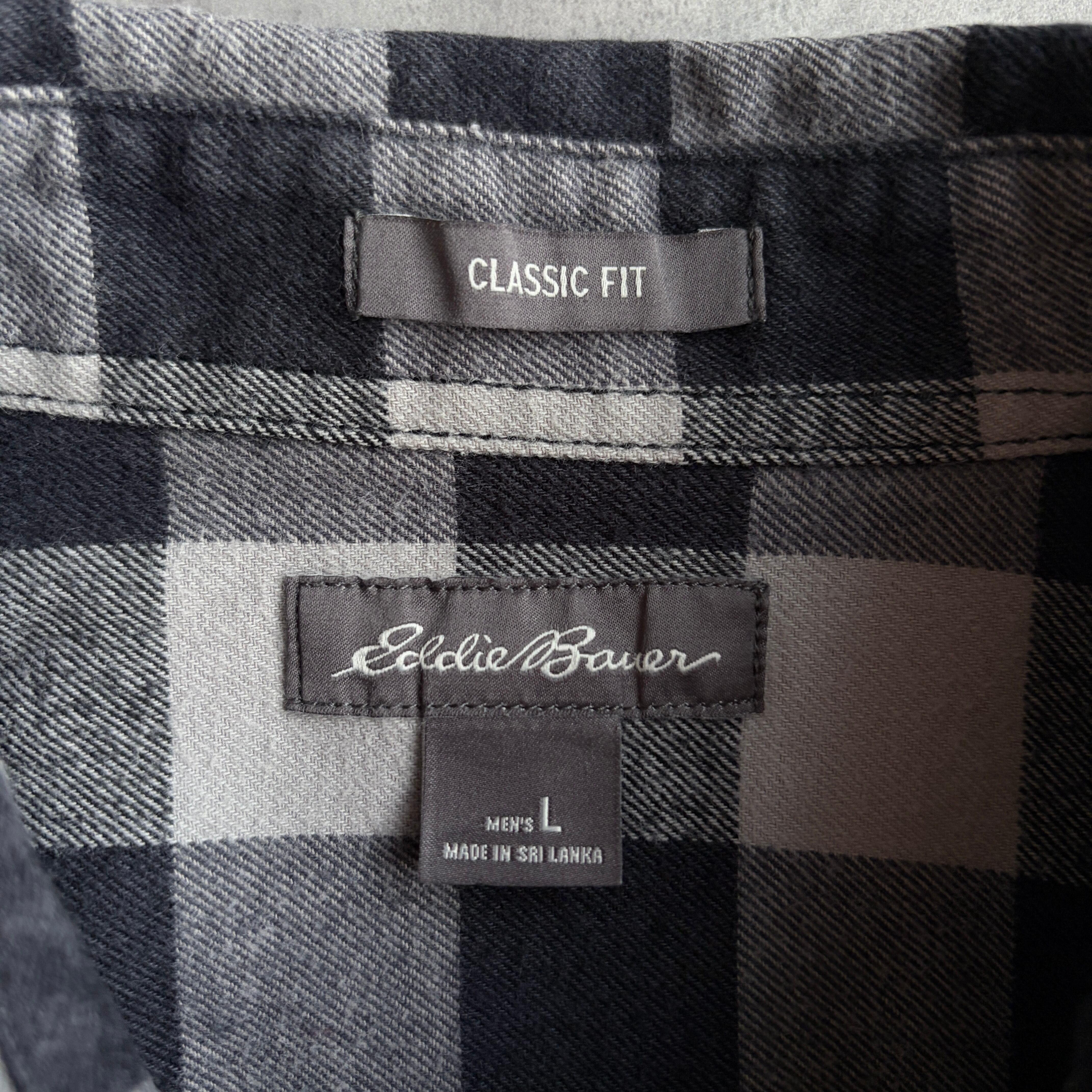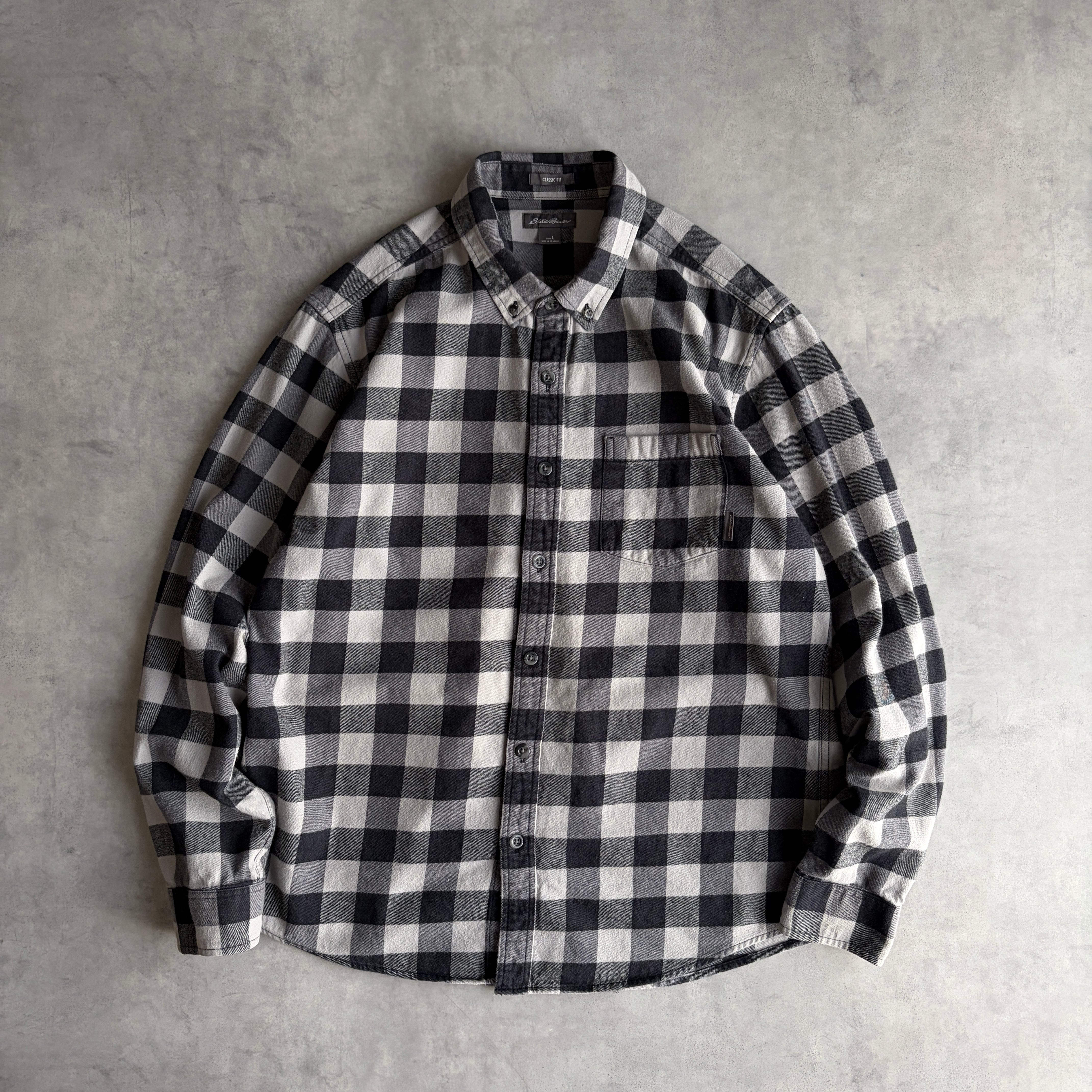 Eddie Bauer/エディーバウアー/長袖/BDシャツ/ボタンダウン/フランネルシャツ/バッファローチェック/ブラック/格子柄/モノトーン/モノクロ/L