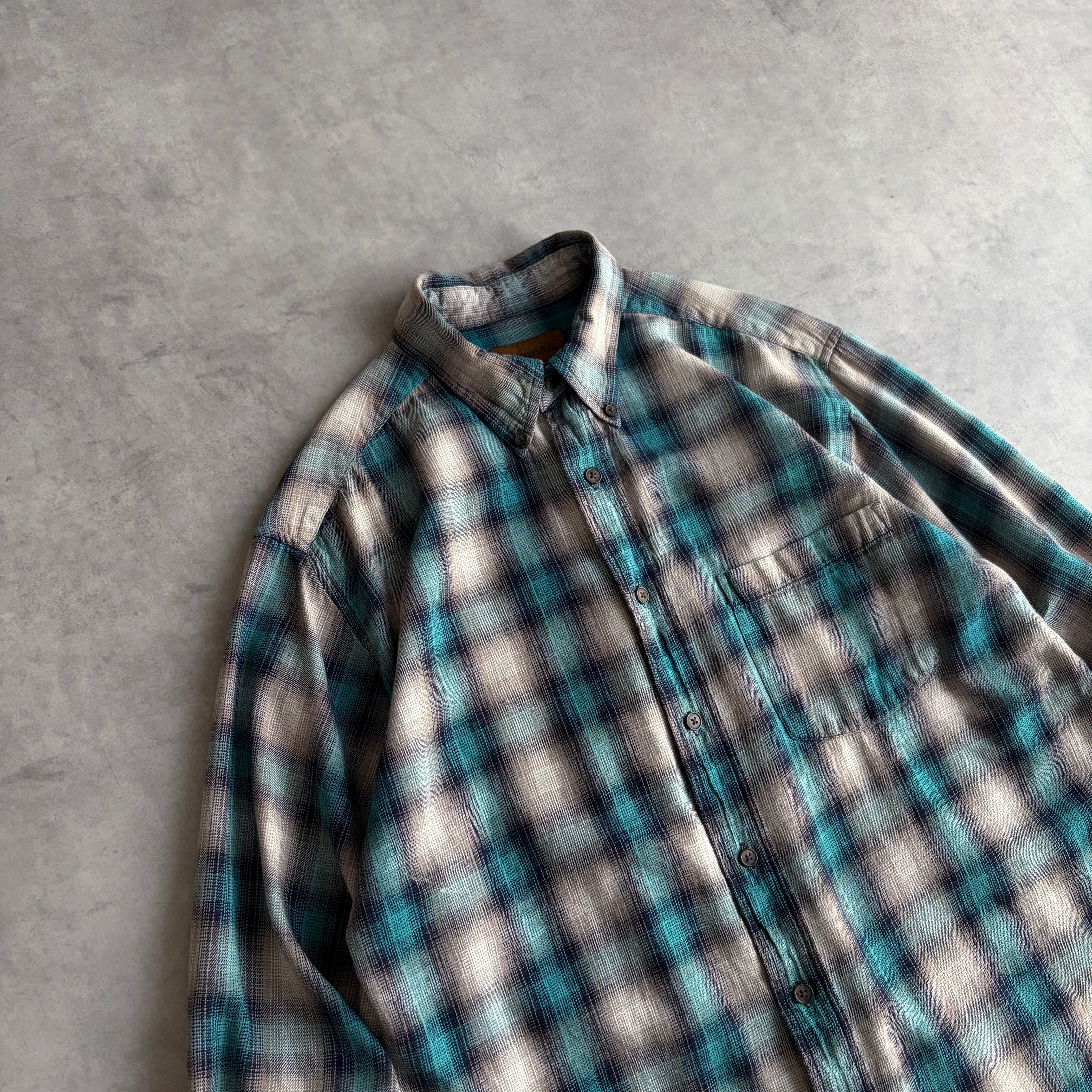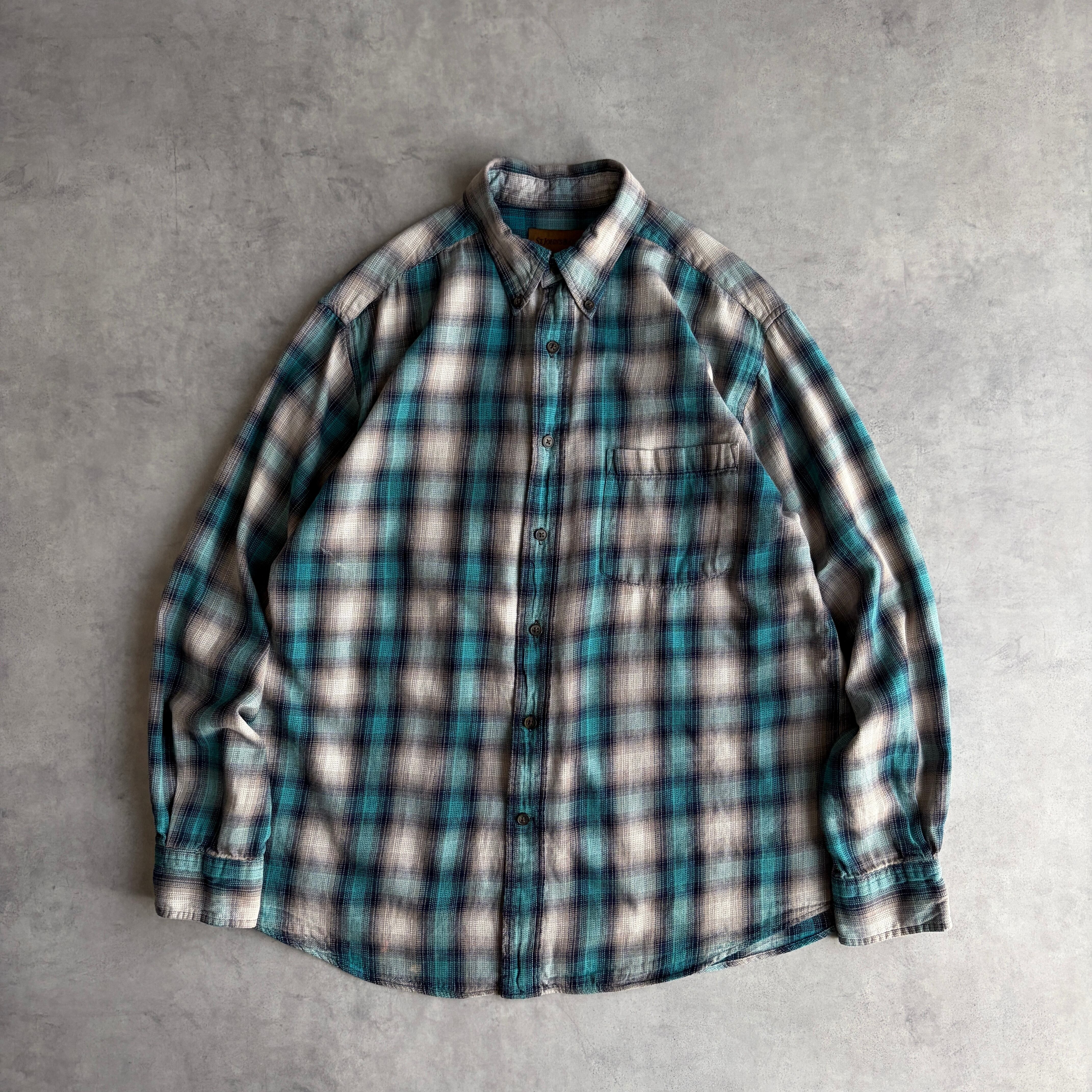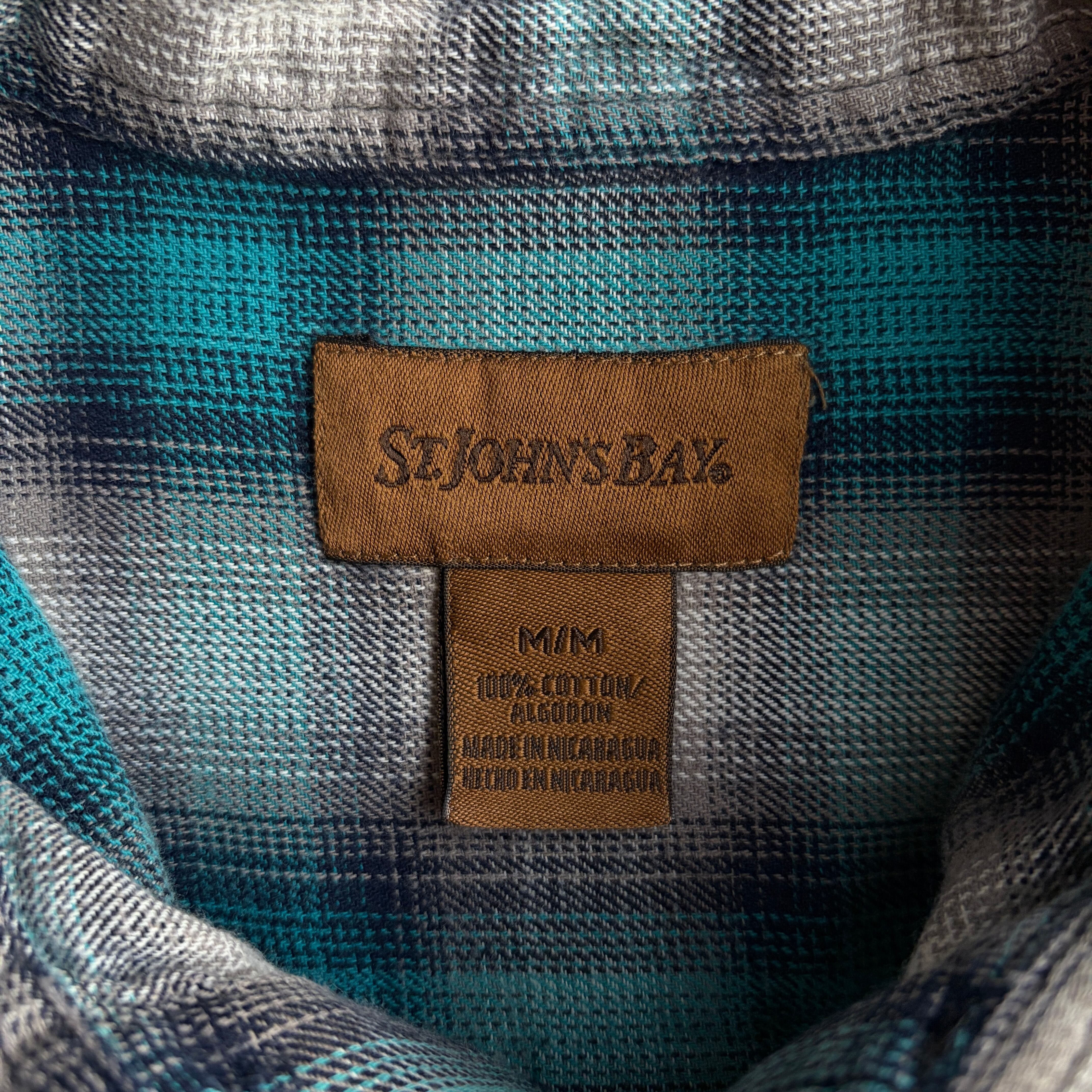 90s〜00s/ST JOHN'S BAY/セントジョンズベイ/長袖/BDシャツ/ボタンダウン/フランネル生地/オンブレチェック/シャドー/格子柄/M