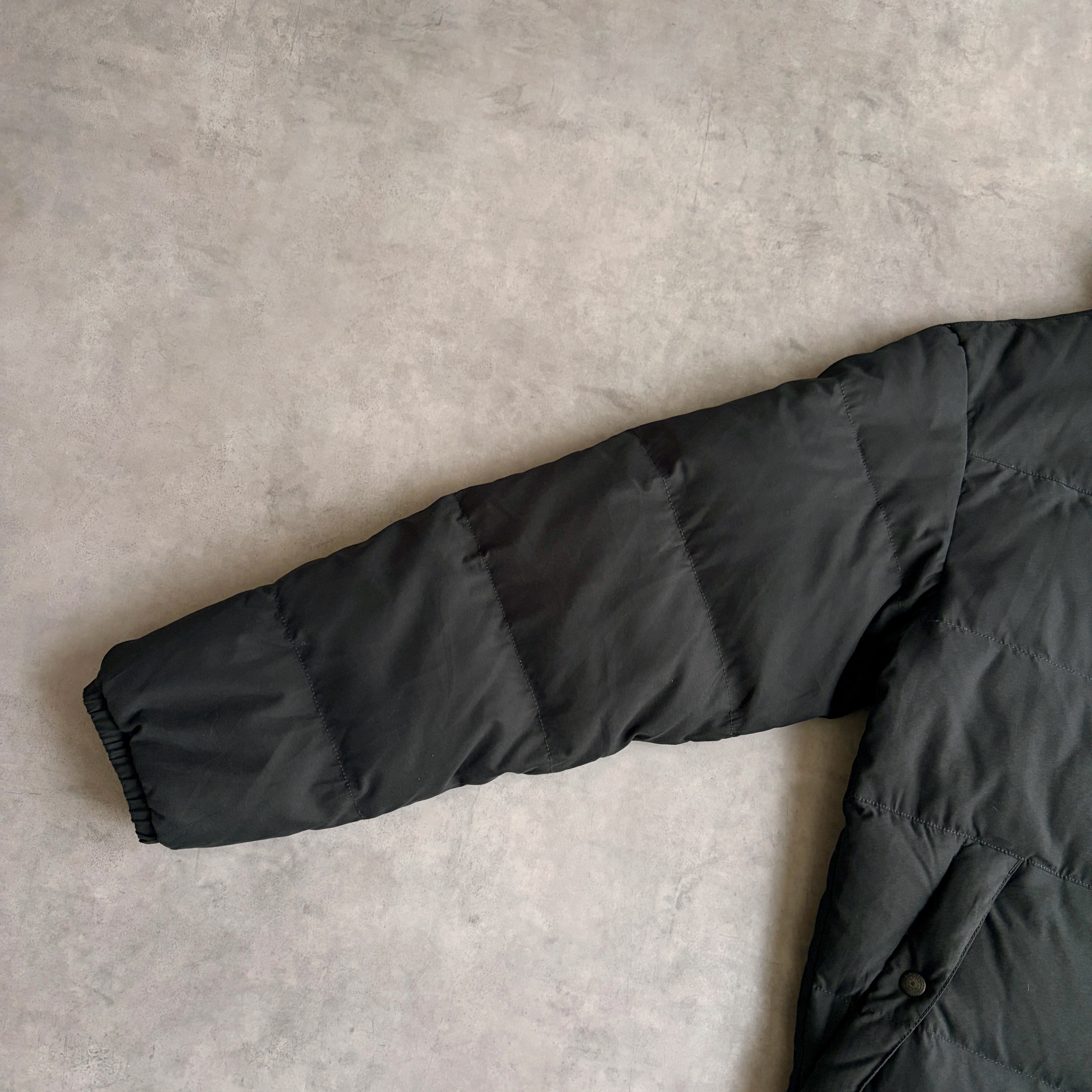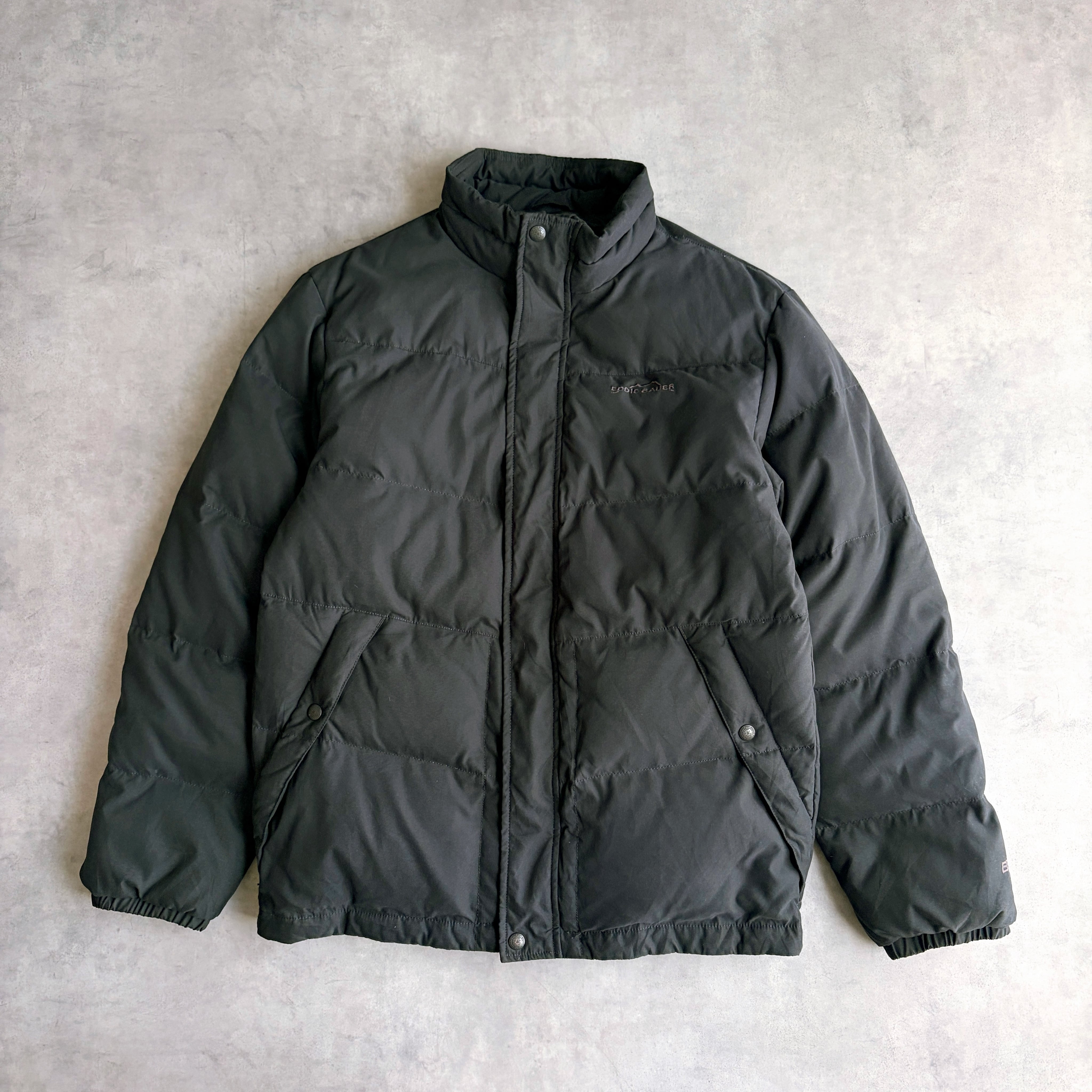 Eddie Bauer/エディーバウアー/グースダウンジャケット/フェザー入り/EB550/フィル550/スタンドカラー/立ち襟/比翼フロント/ブラック/黒/S