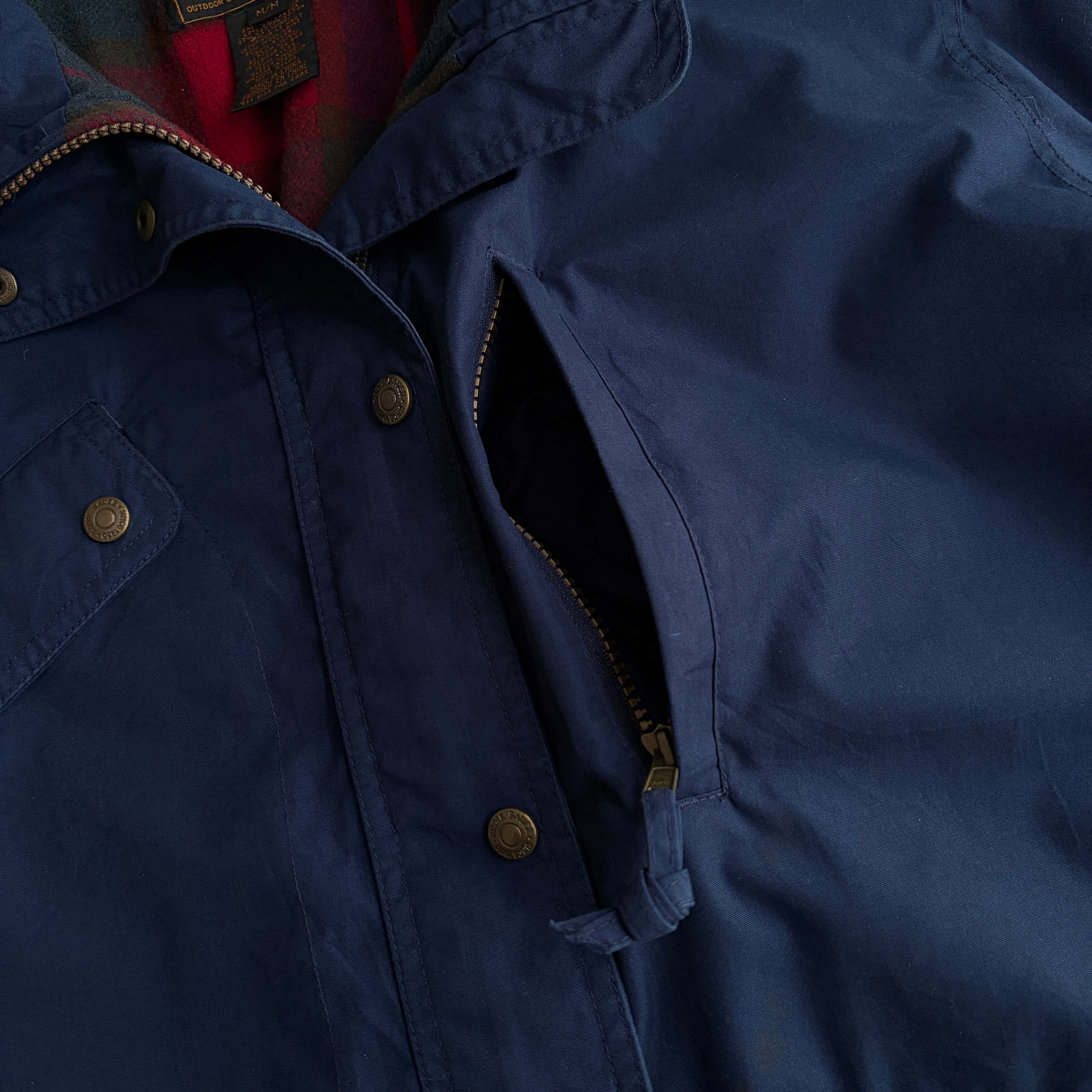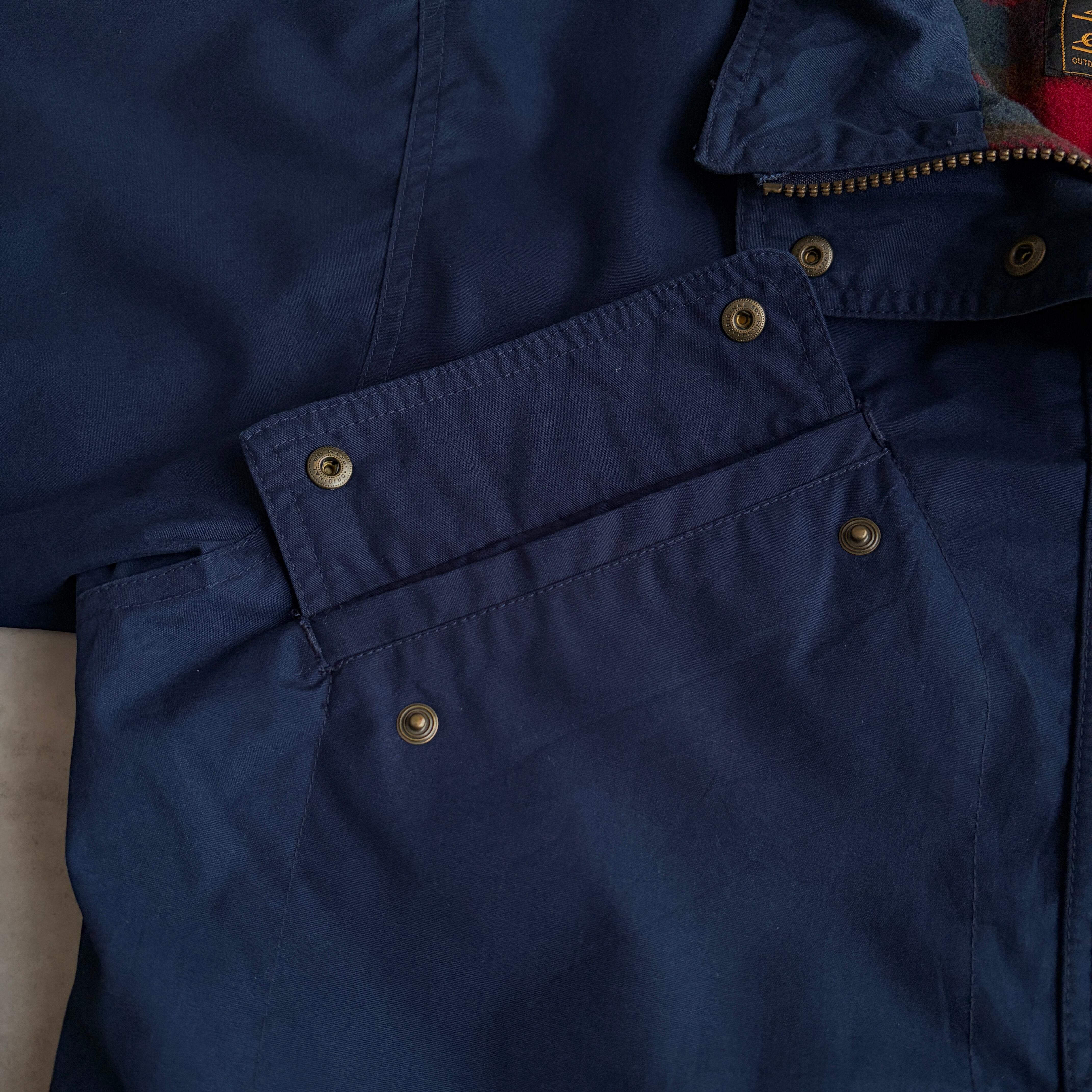 80s〜90s/Eddie Bauer/エディーバウアー/マウンテンパーカー/ウールライニング/黒タグ後期/Dリング/腰ドローコード/マルチポケット/スラッシュ/比翼フロント/スタンドカラー/立ち襟/チェック柄/ネイビー/紺/L