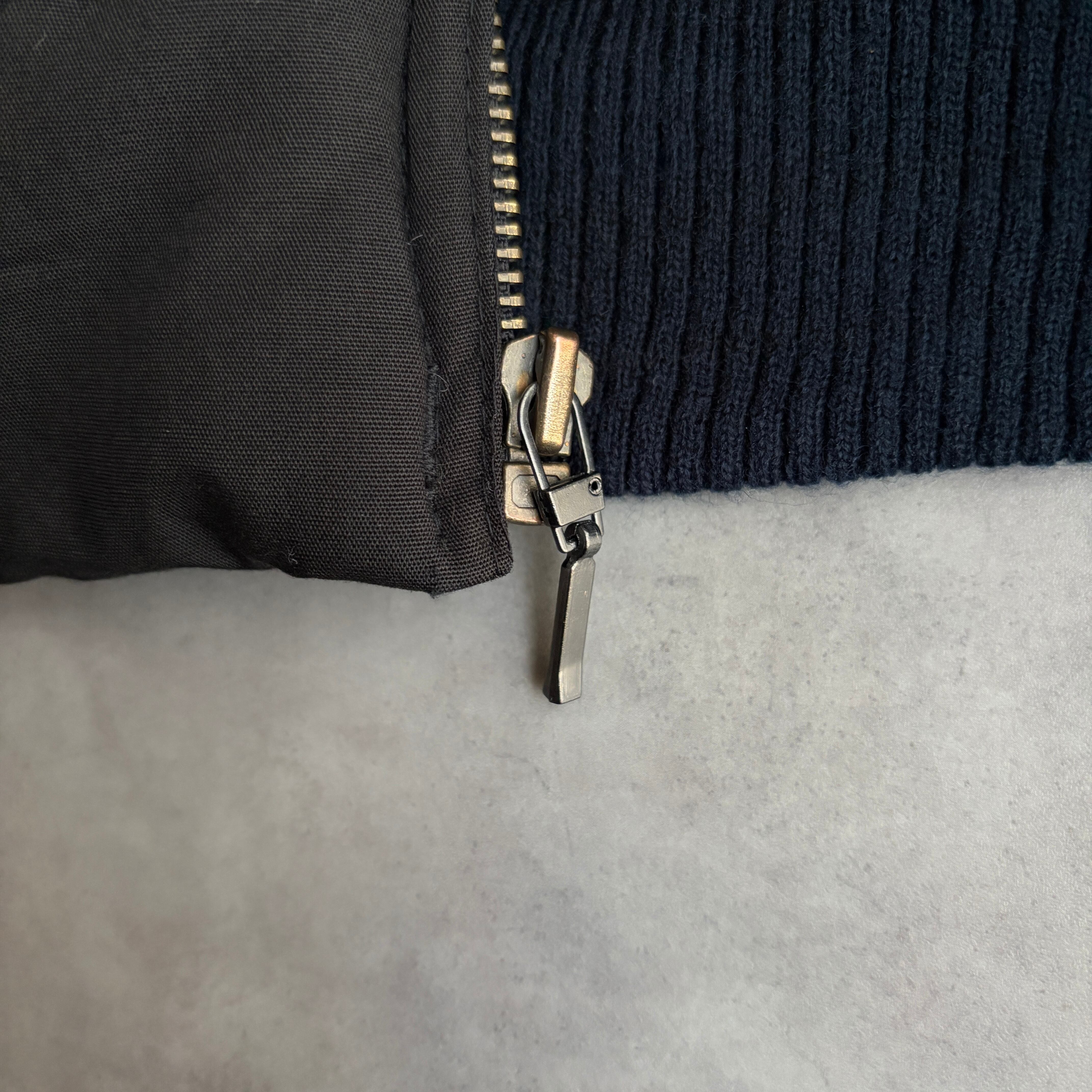 ボディはブラック、袖リブがネイビーカラーのツートーン仕様。