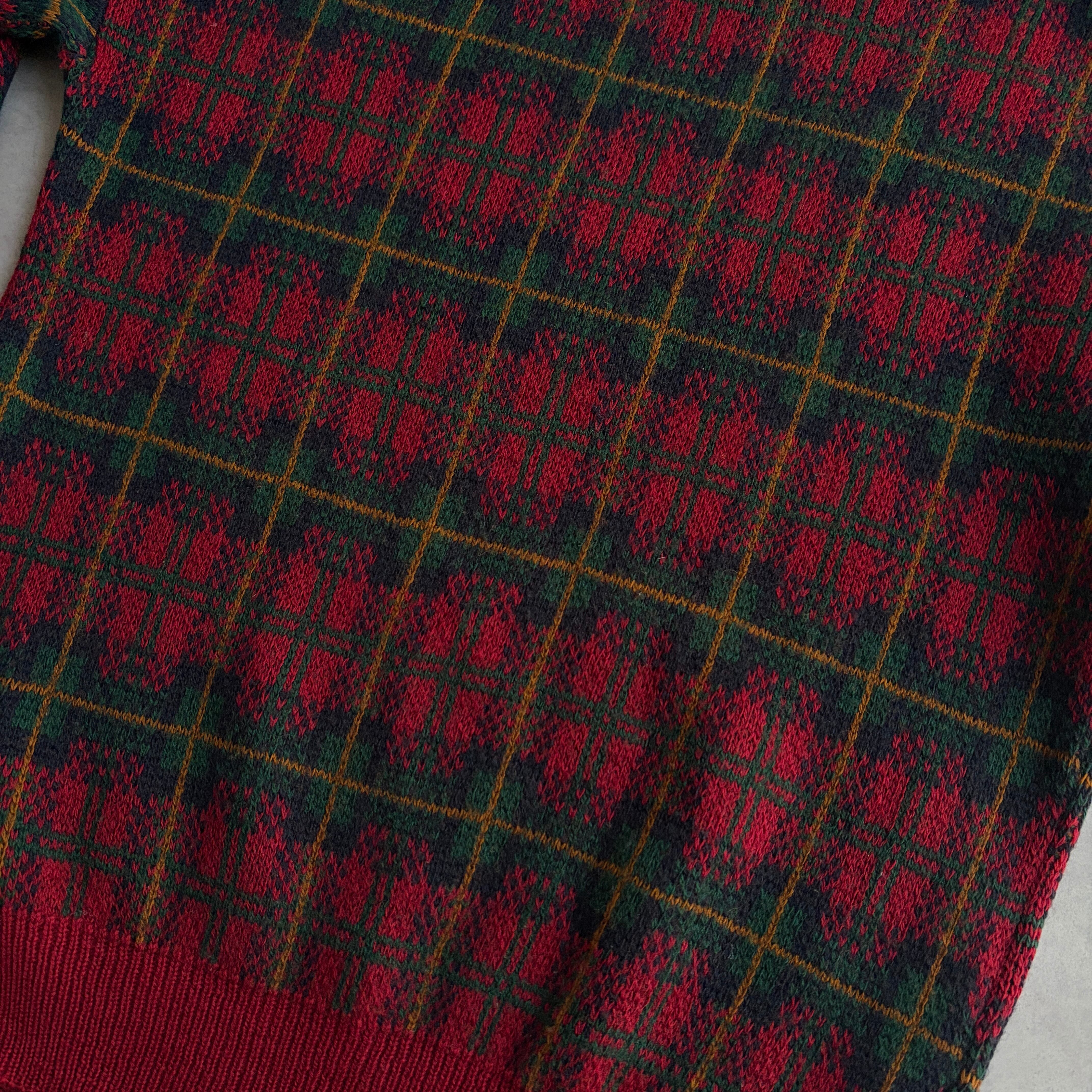クリスマスカラーのチェック柄で可愛らしいニット。