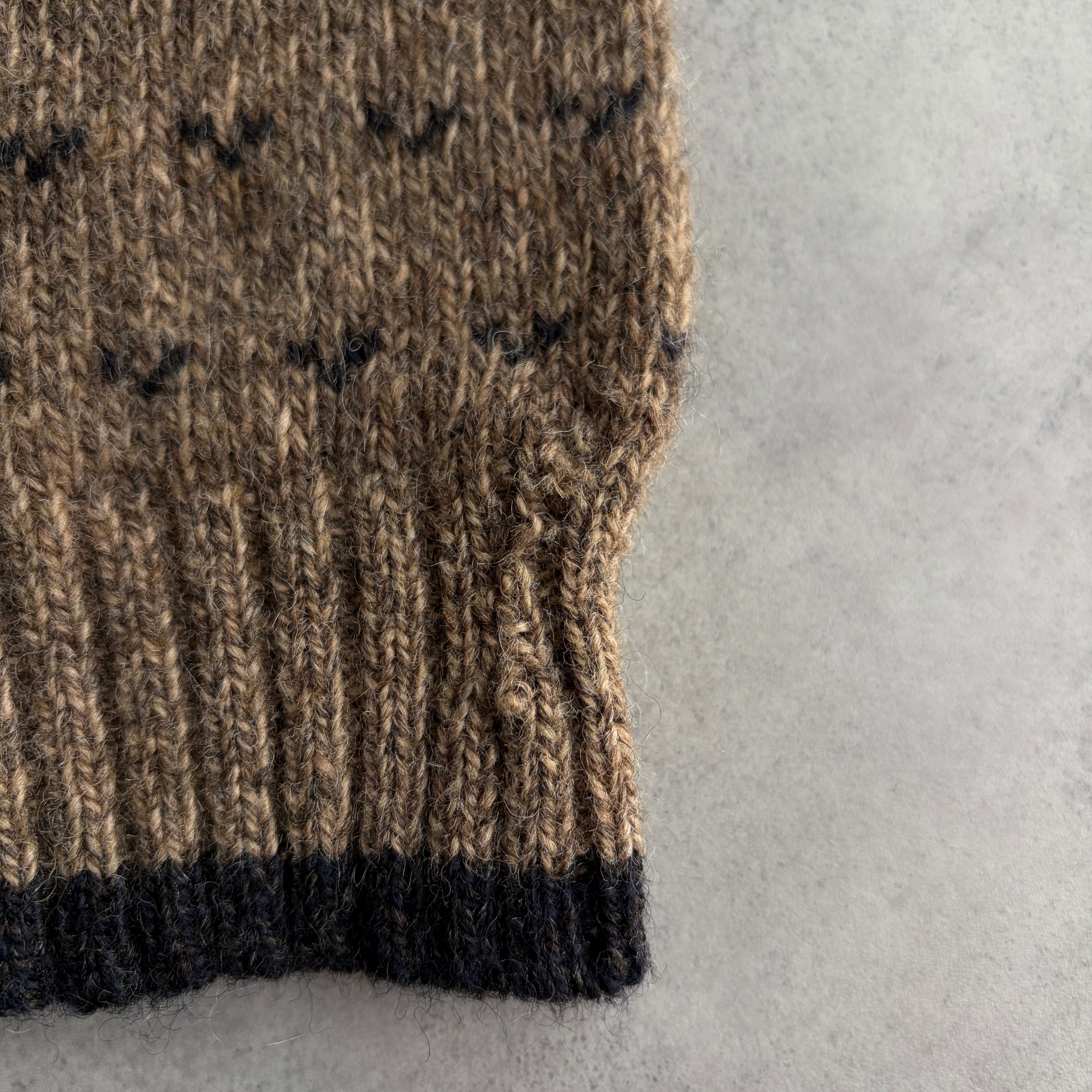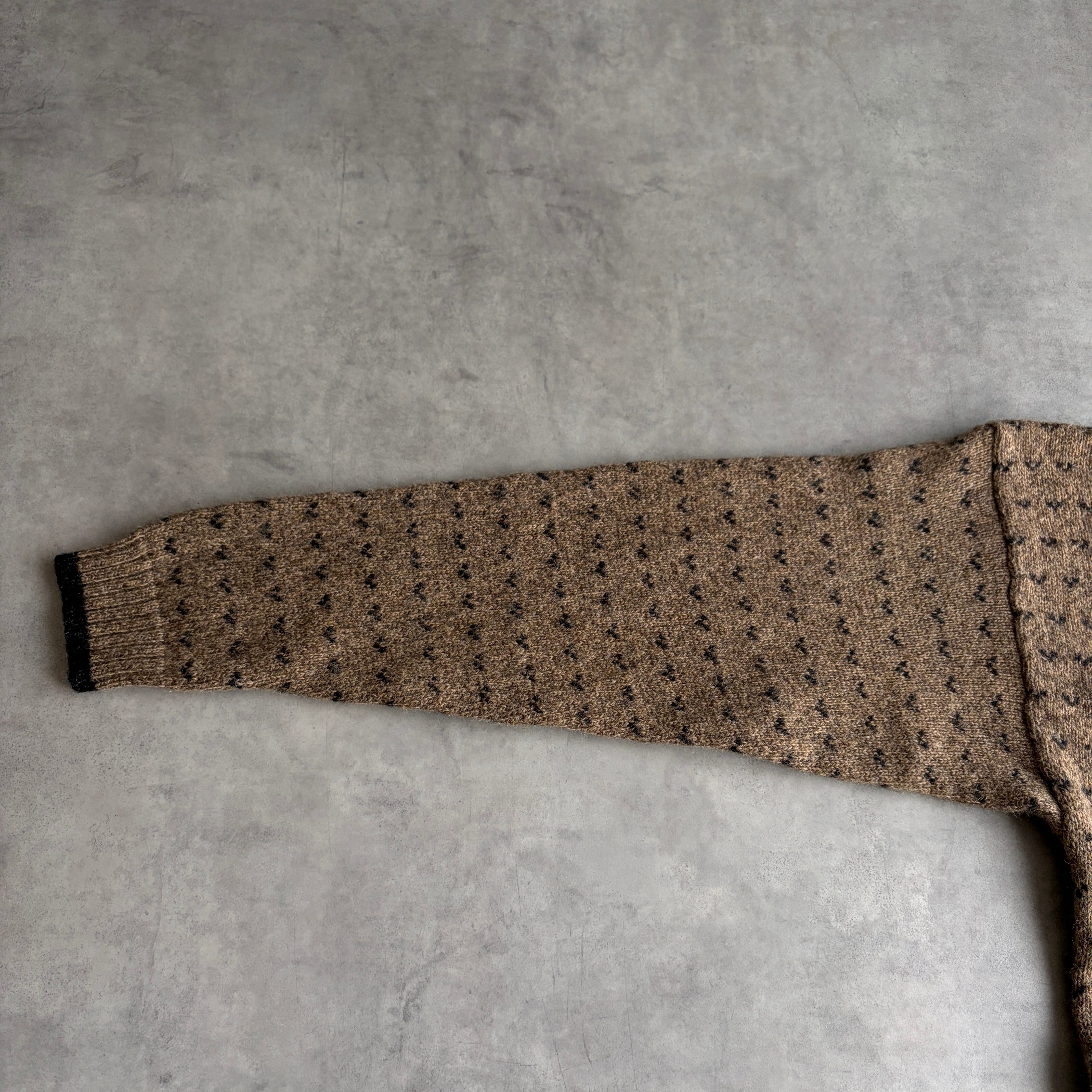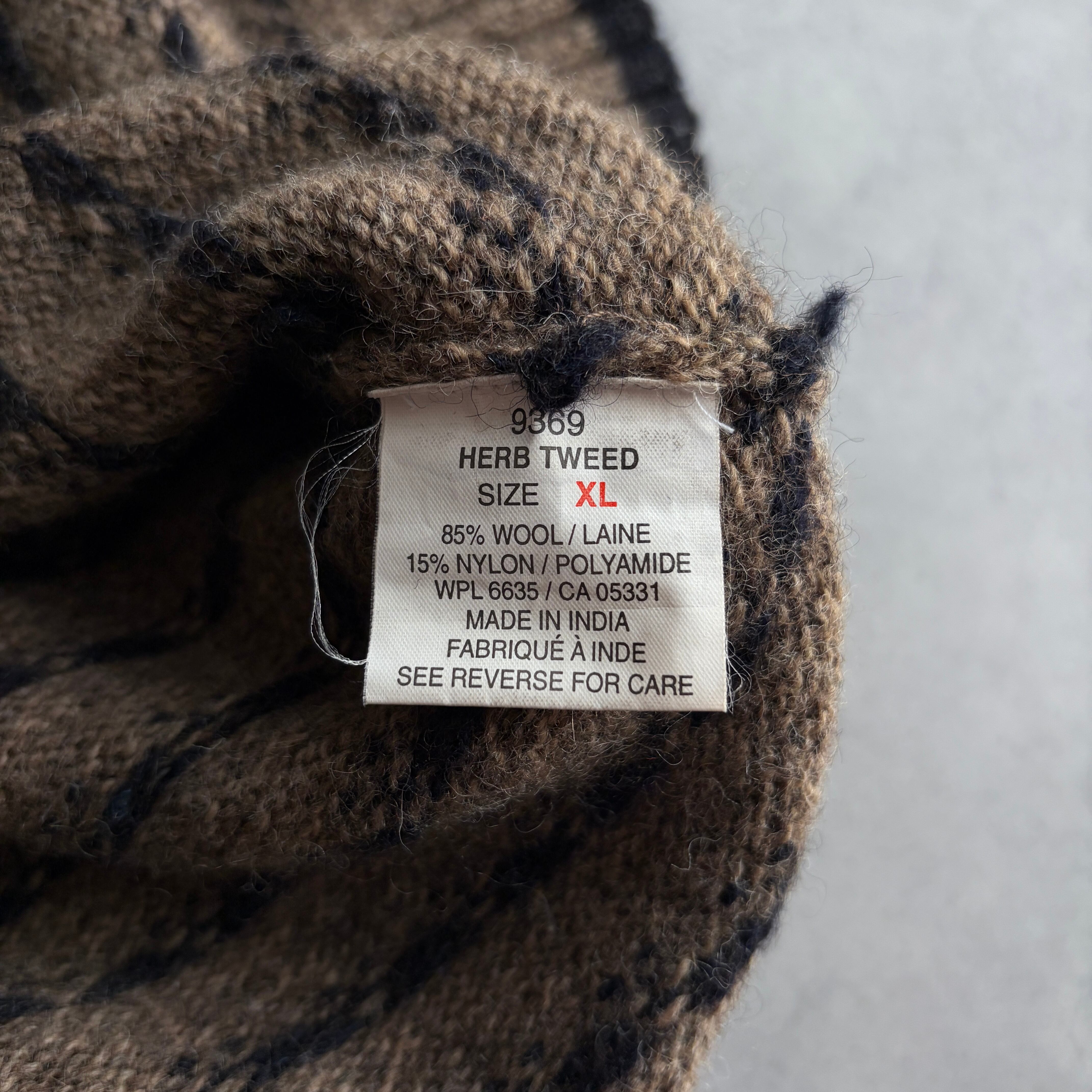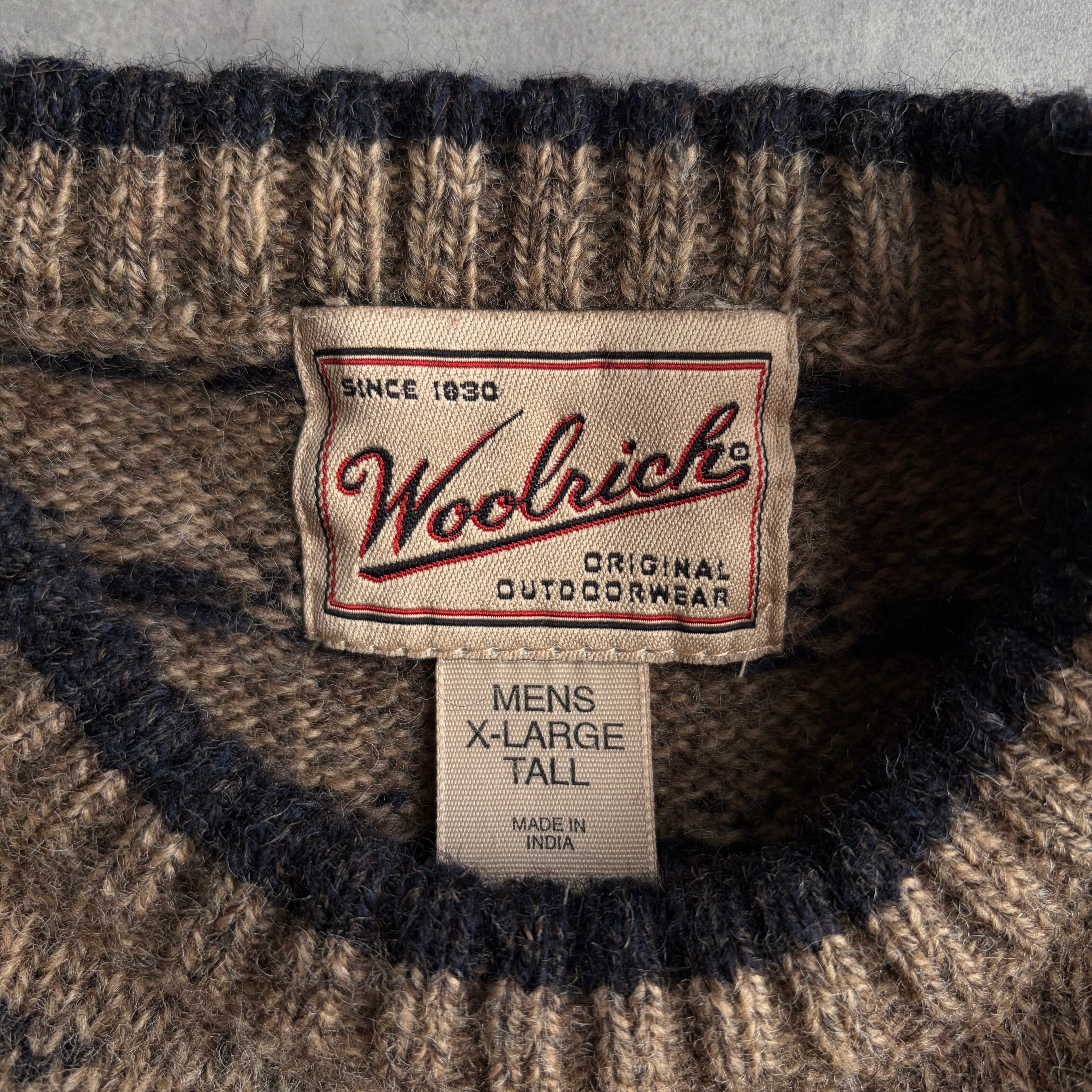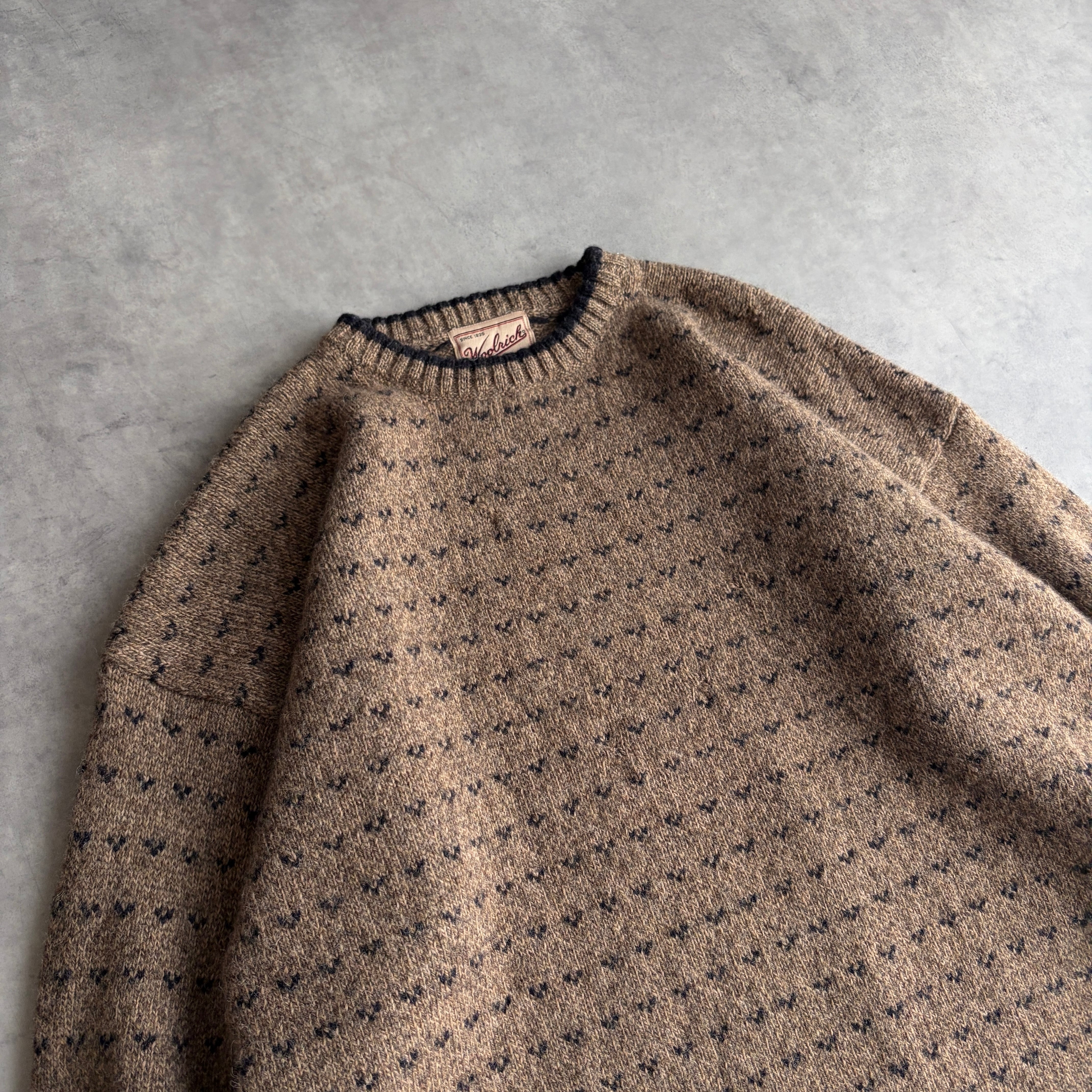 90s/woolrich/ウールリッチ/ウールニット/バーズアイ/メランジ/リブライン/クルーネック/プルオーバー/ブラウン/茶色/XL
