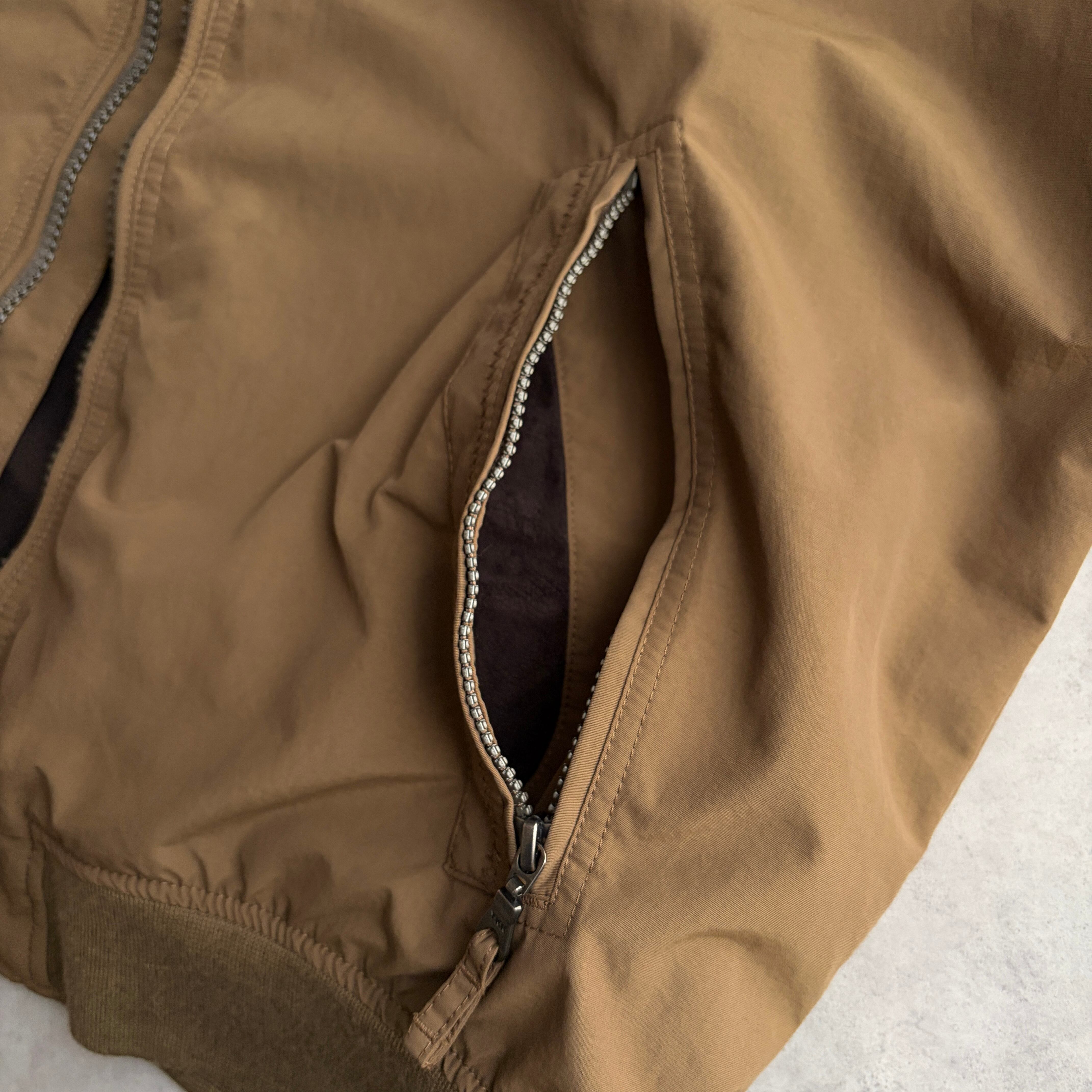 LANDS'END/ランズエンド/SQUALL-JACKET/シェルドジャケット/裏フリースブルゾン/ロゴラバー/スタンドカラー/立ち襟/ブラウンベージュ/茶色/XL
