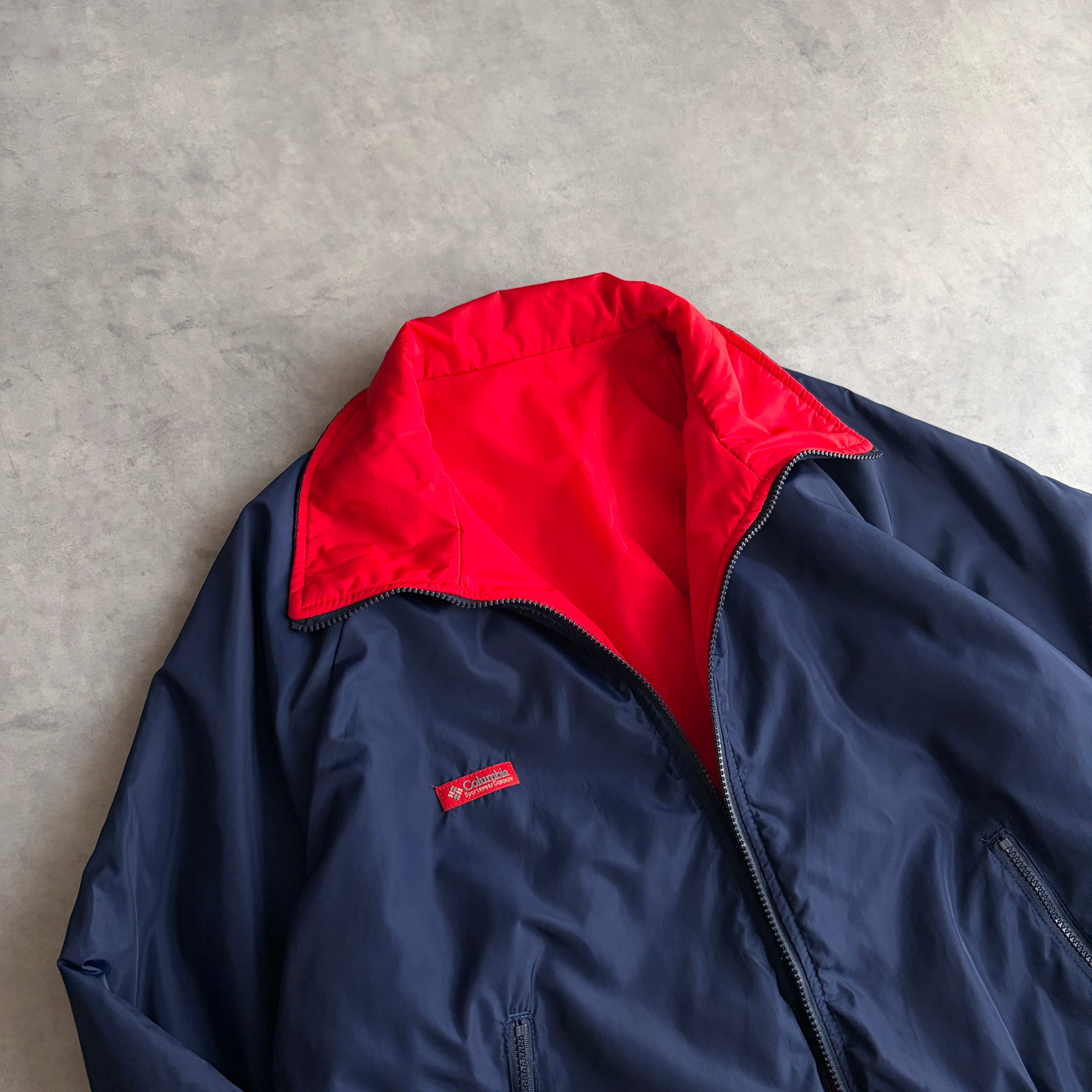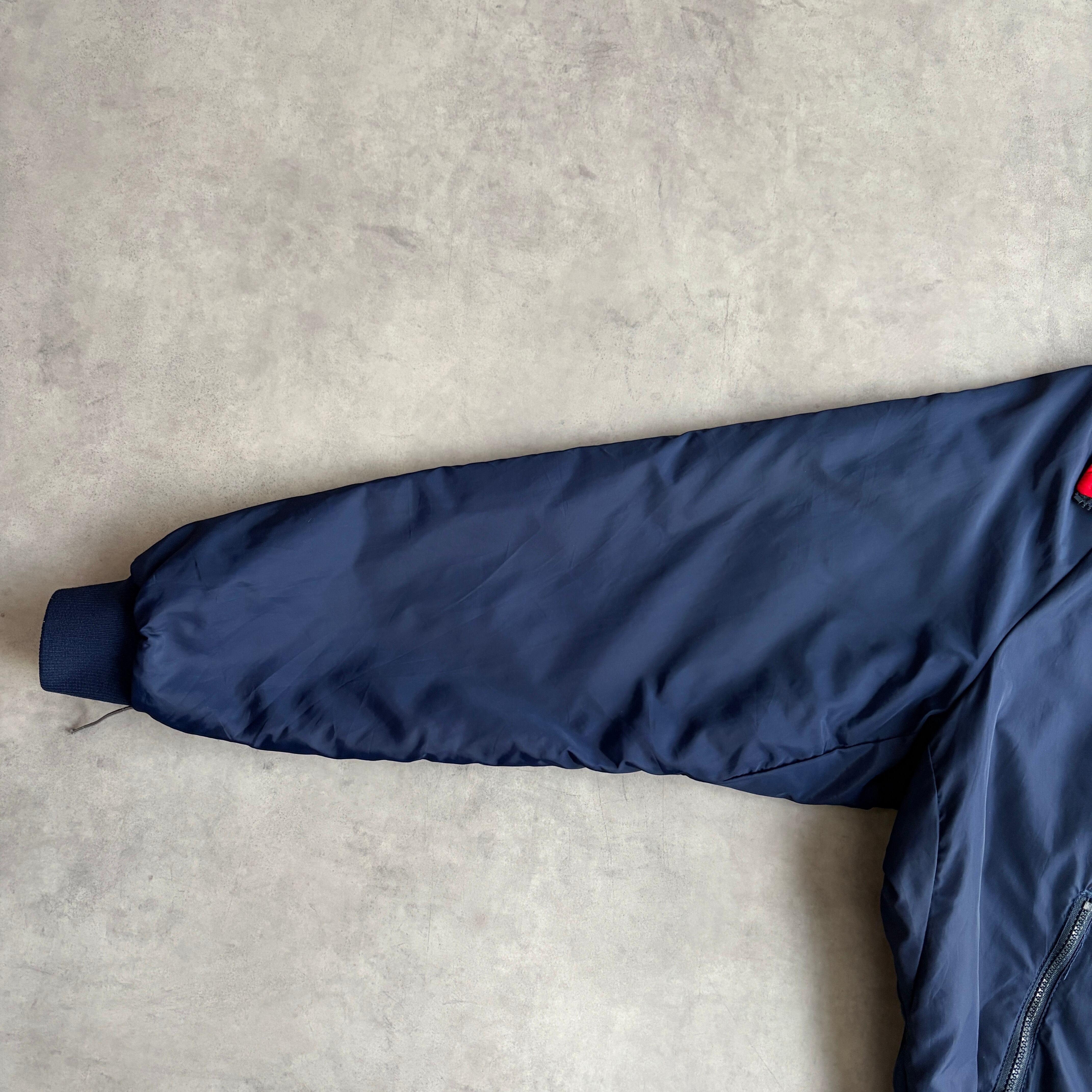 ネイビーとレッドのリバーシブル使用、シェルはナイロンで、中綿はThinsulate。