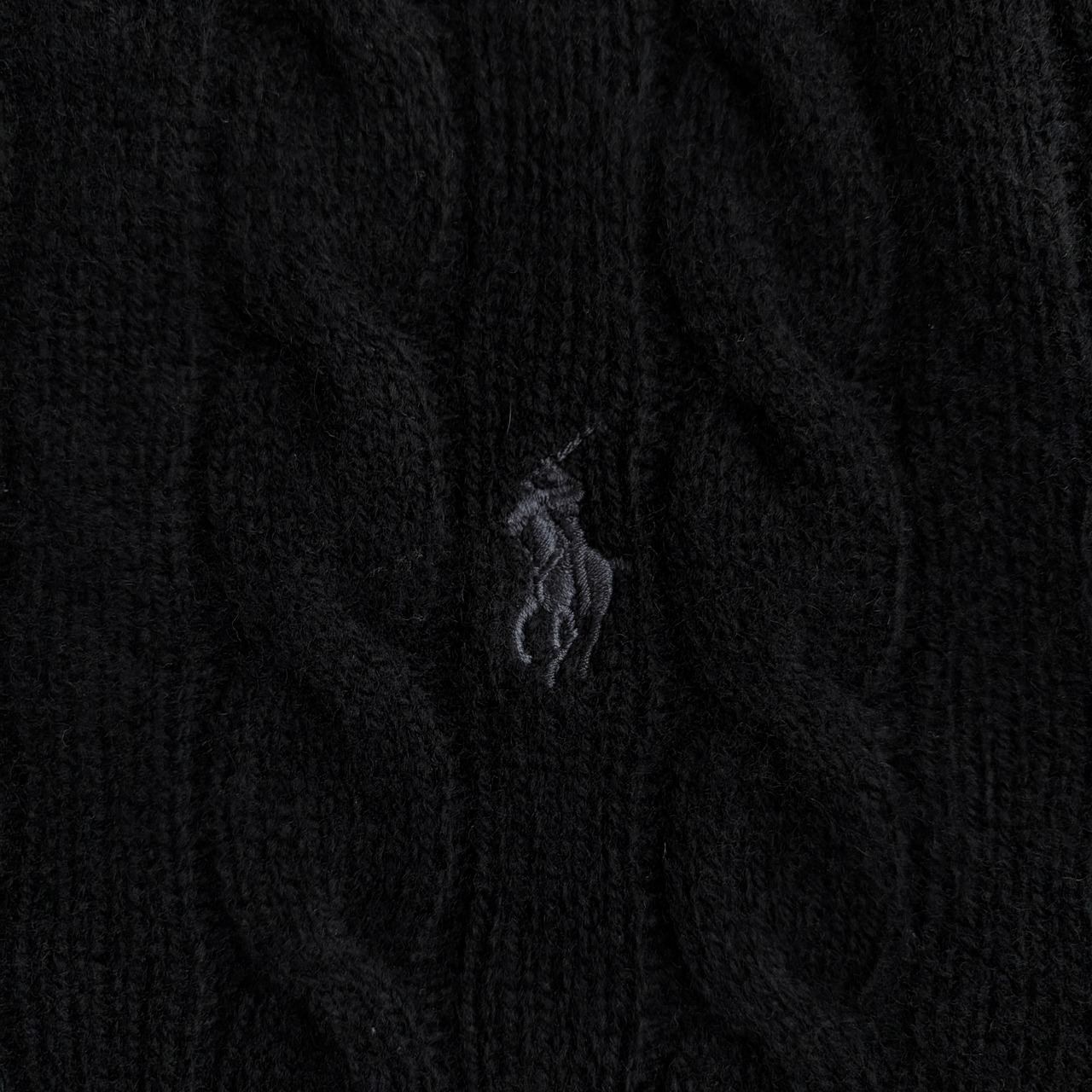 ブラックカラーのケーブル編みにグレーのポニー刺繍がワンポイントで良いですね。