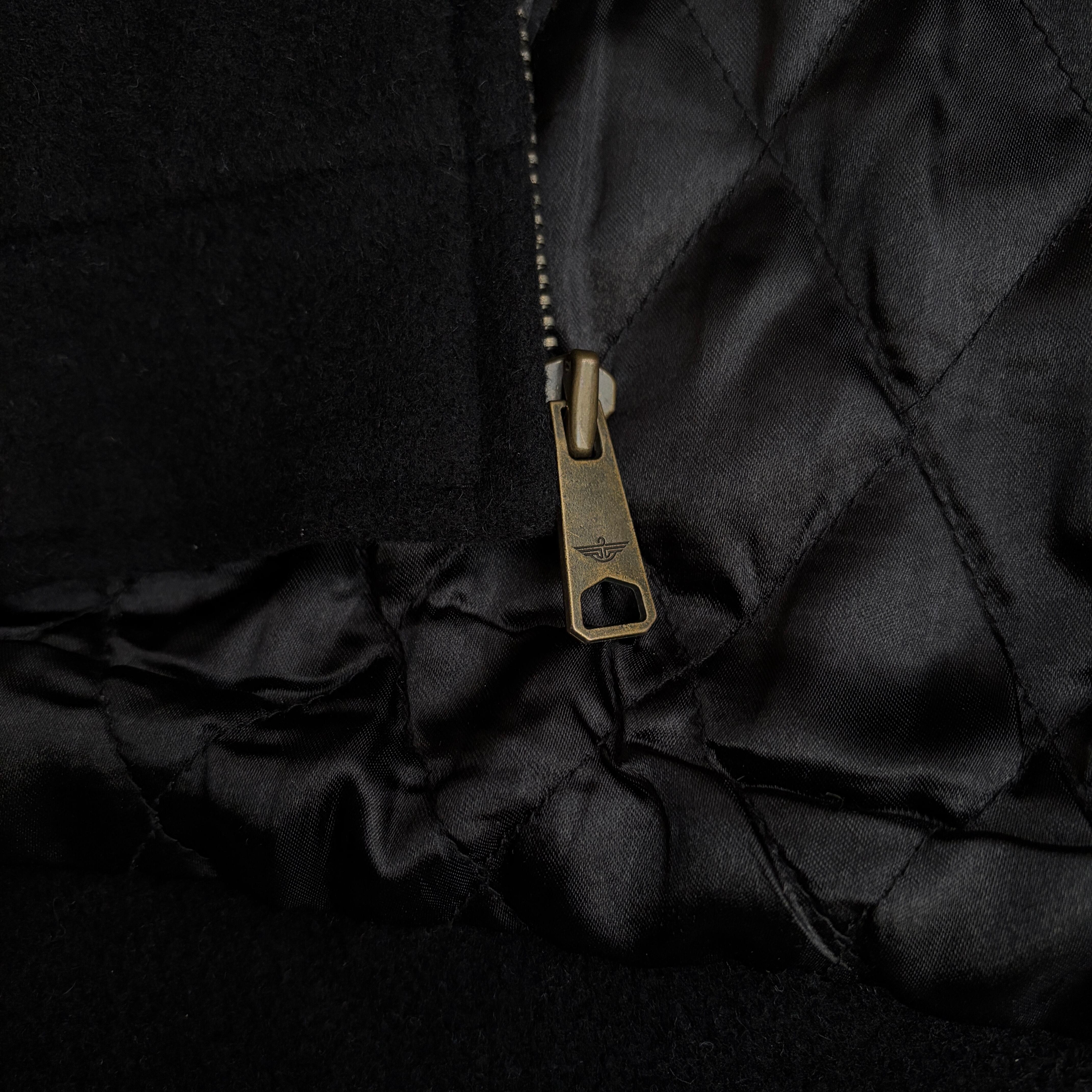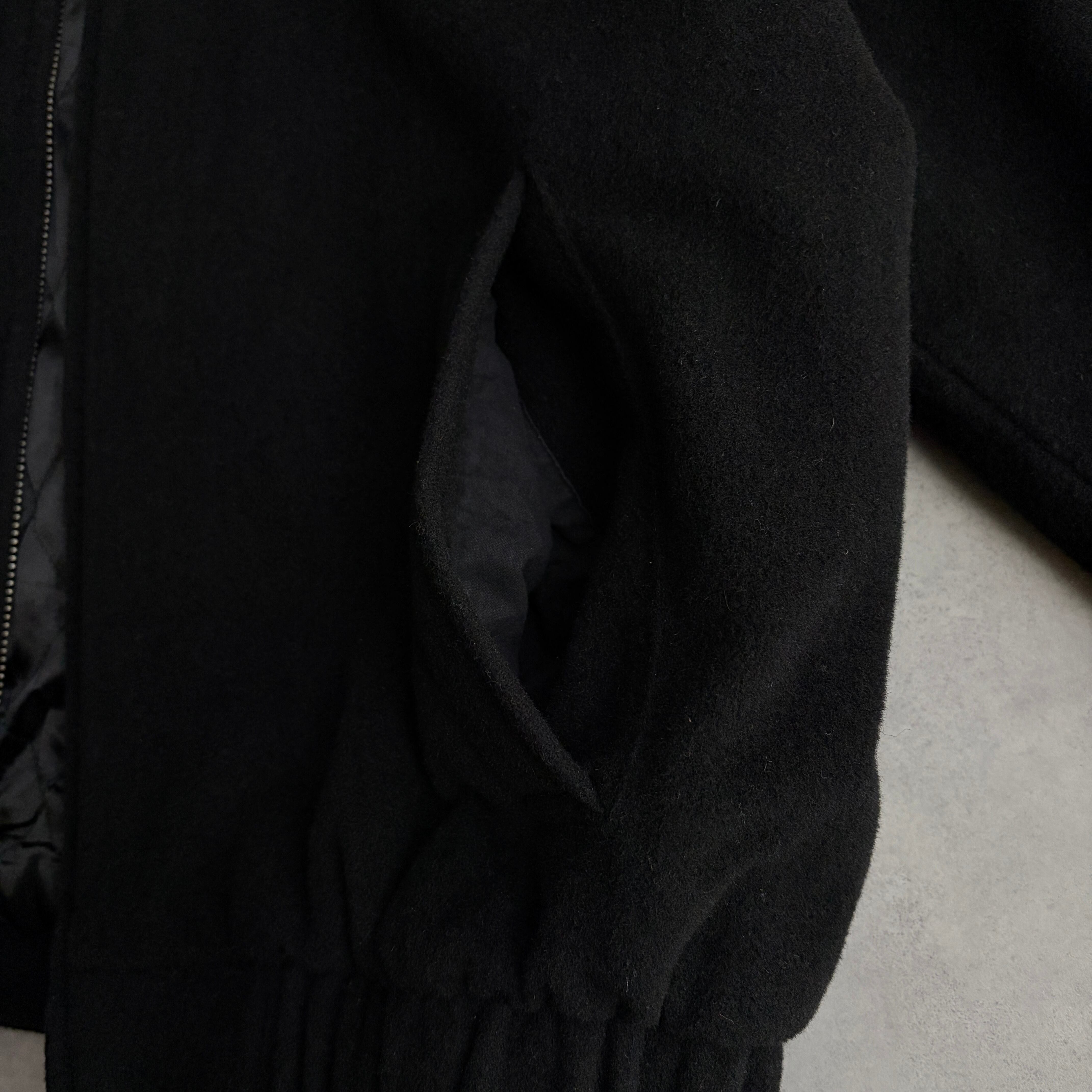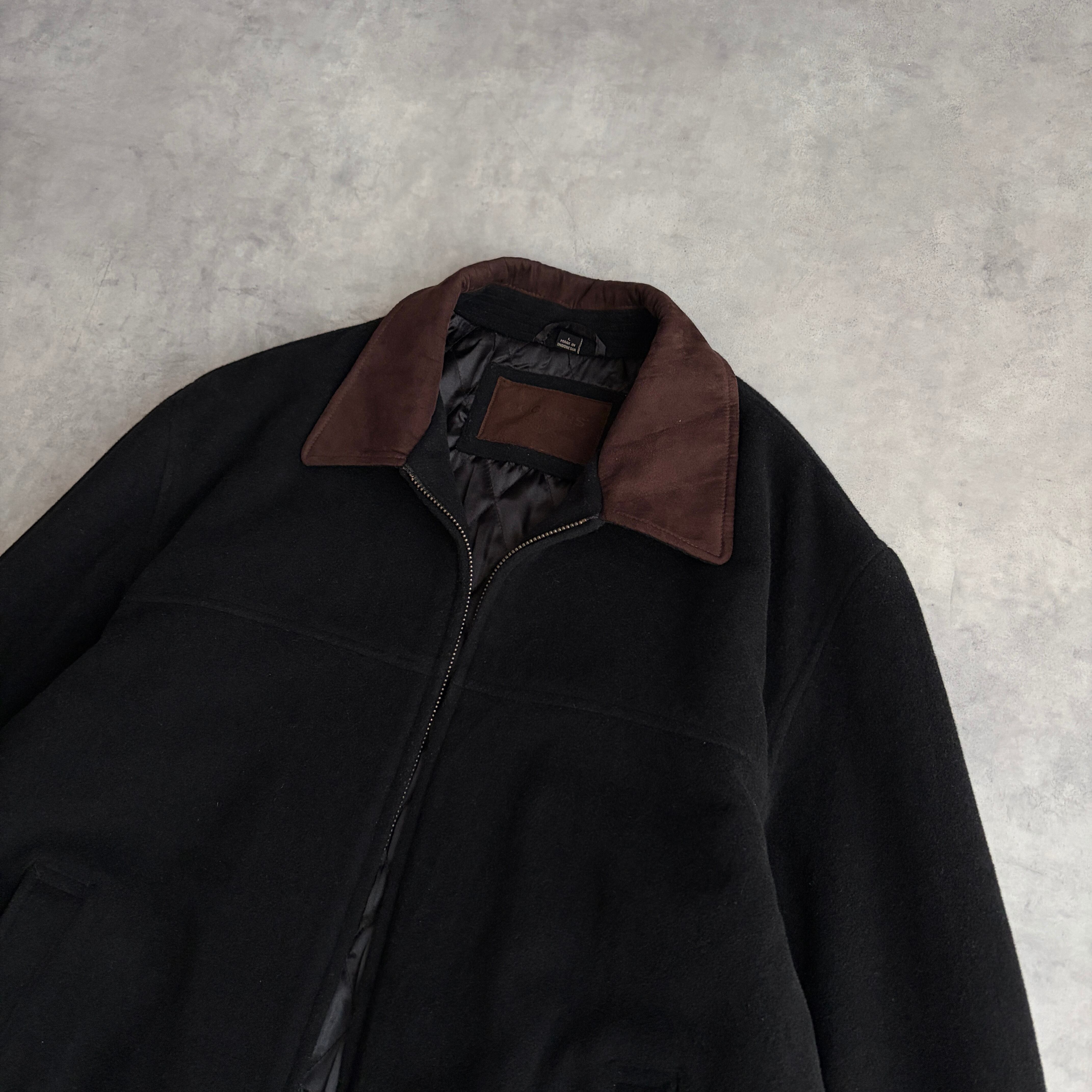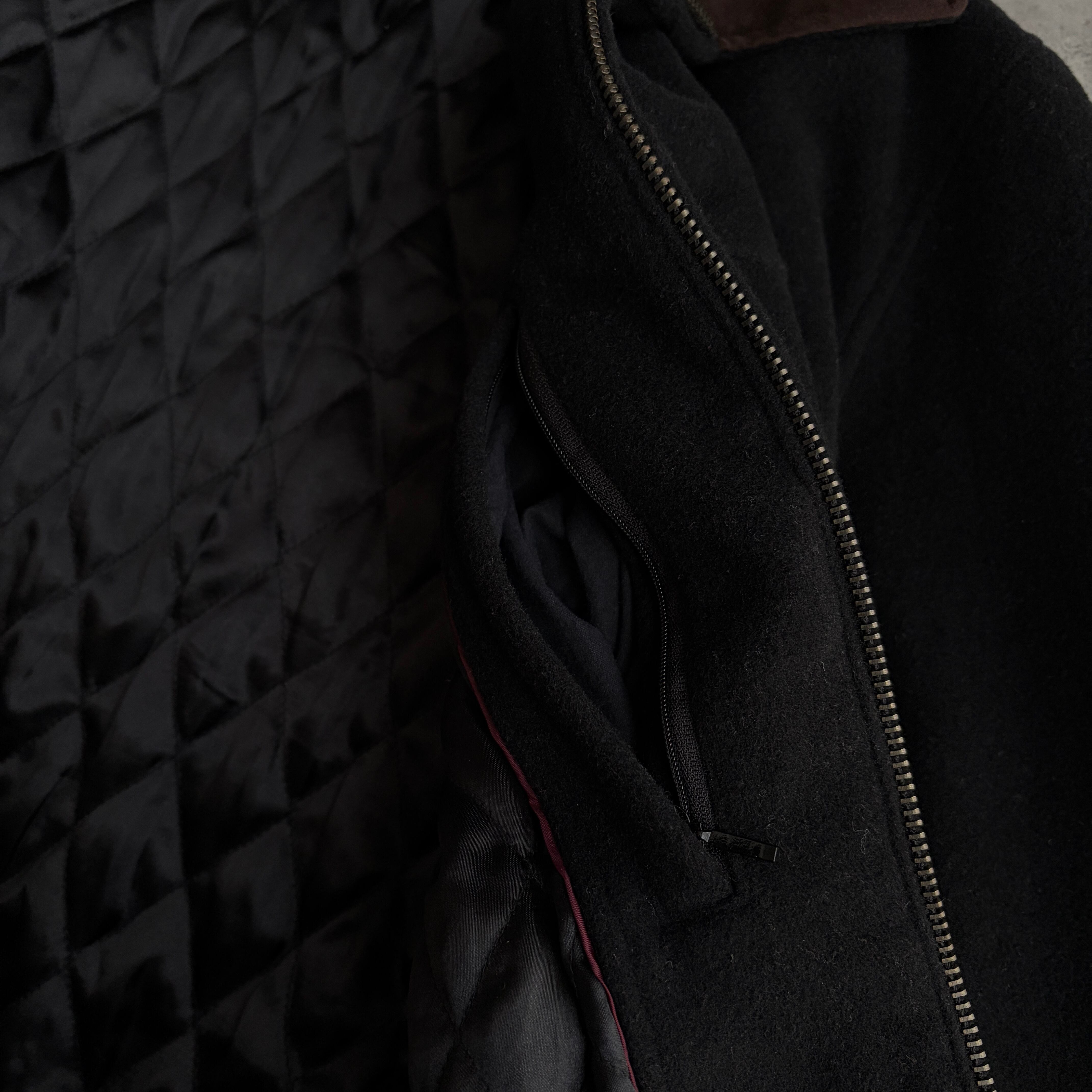起毛感と柔らかさのあるメルトンウールにブラウンの襟スエード、裏地は中綿キルティング。