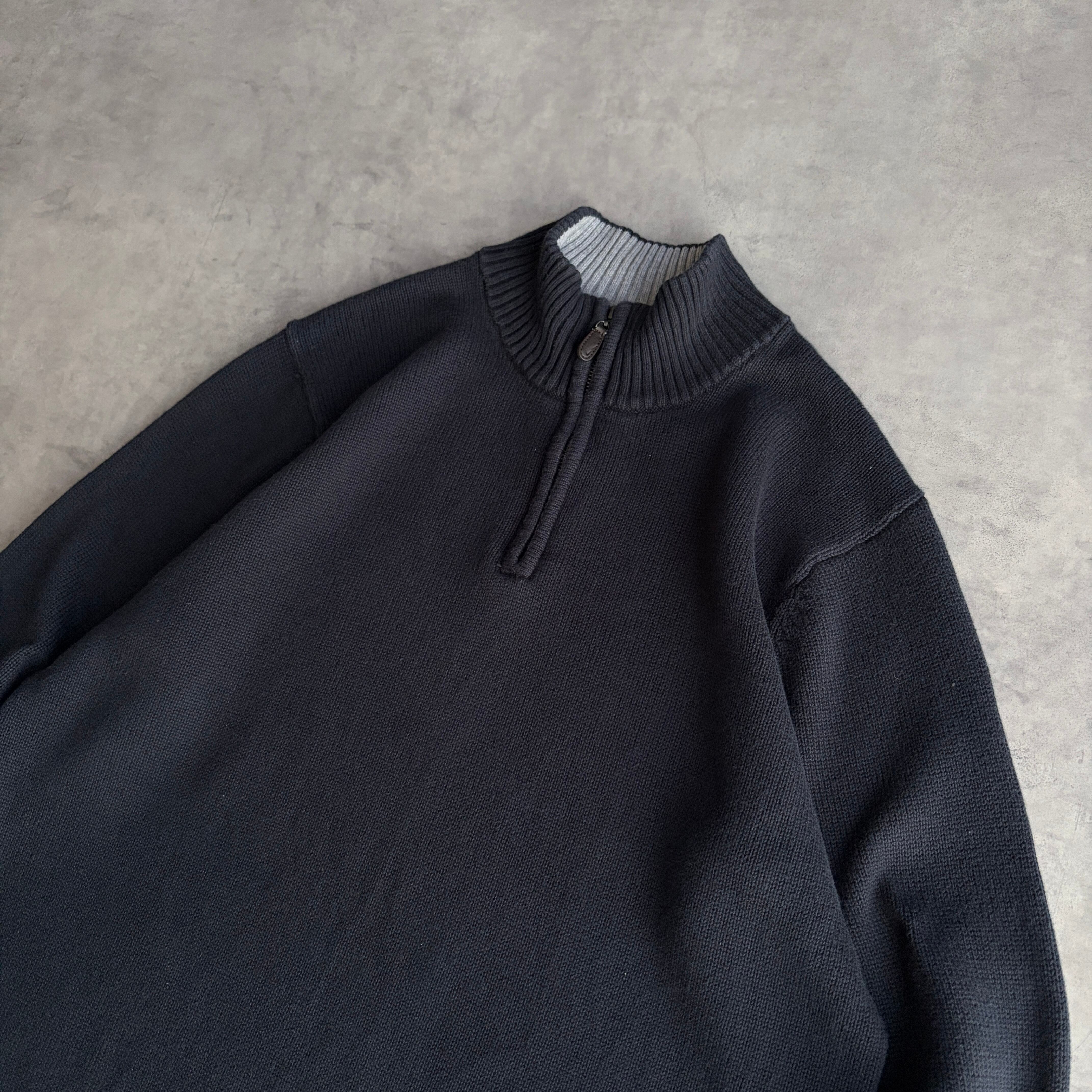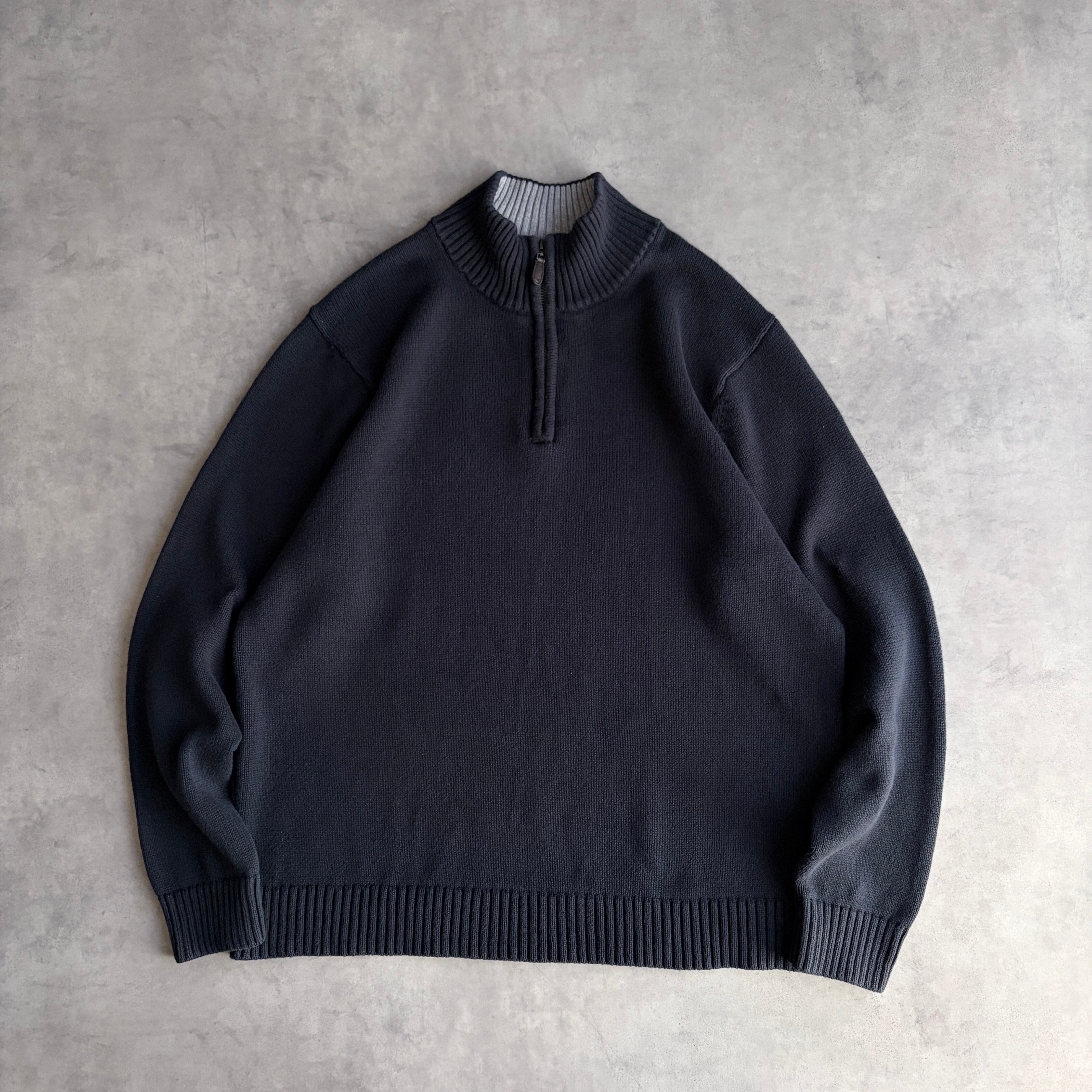L.L.Bean/エルエルビーン/コットンニット/ハーフジップ/プルオーバー/モックネック/ソリッド/ノームコア/グランパコア/無地/ネイビー/紺