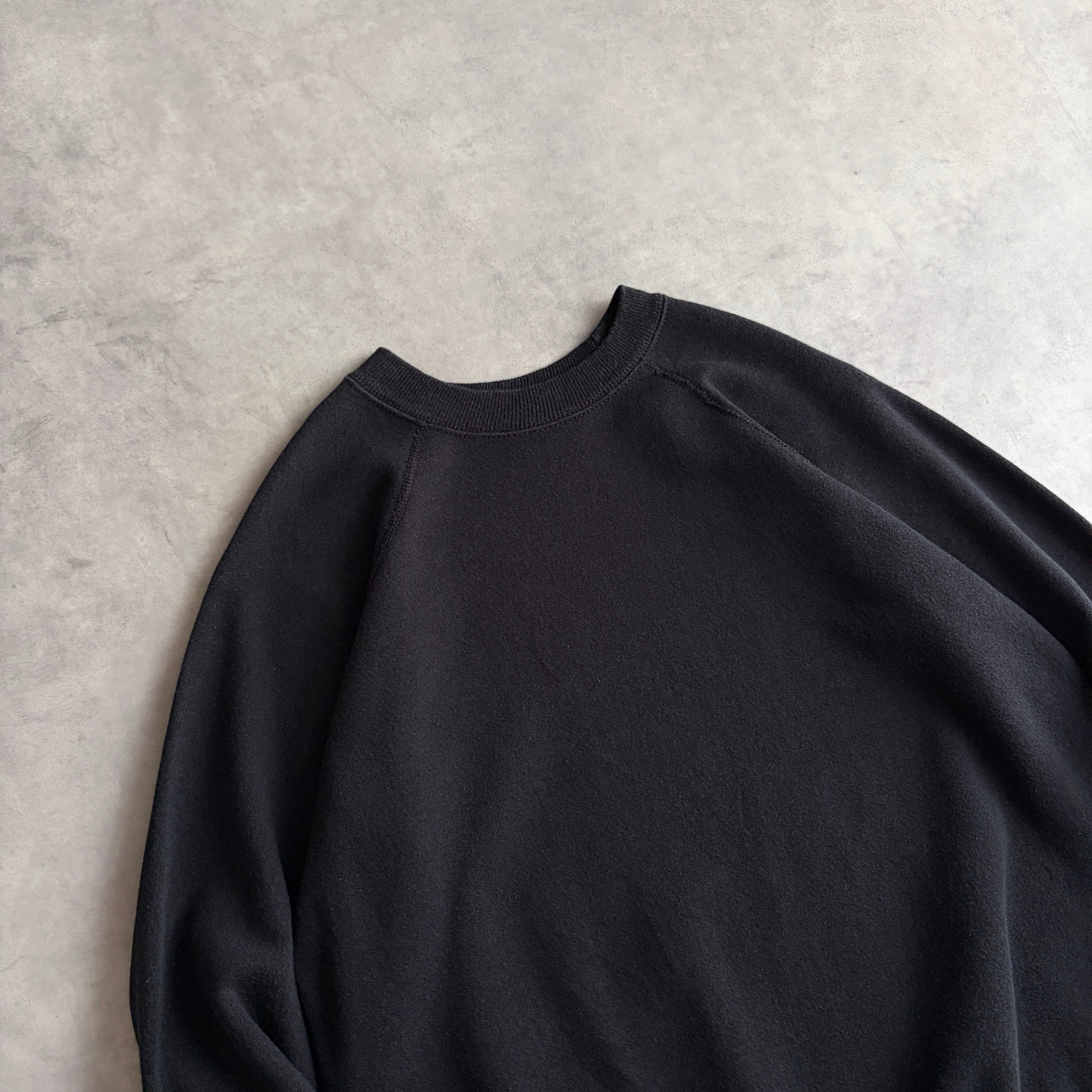 90s/Hanes/ヘインズ/無地スウェット/USA製/アメリカ製/ラグランスリーブ/プレーン/ブランク/ソリッド/ノームコア/ブラック/黒/M