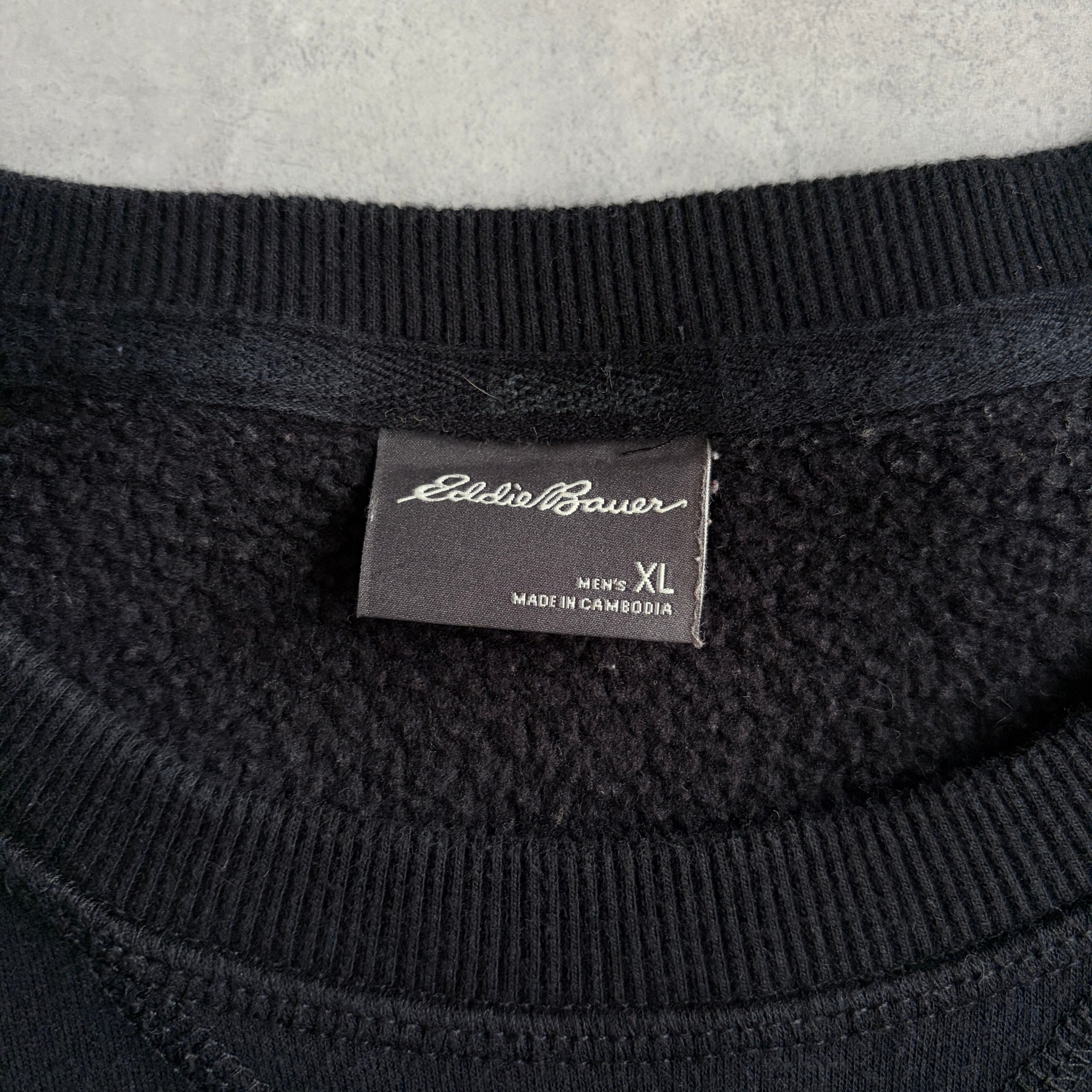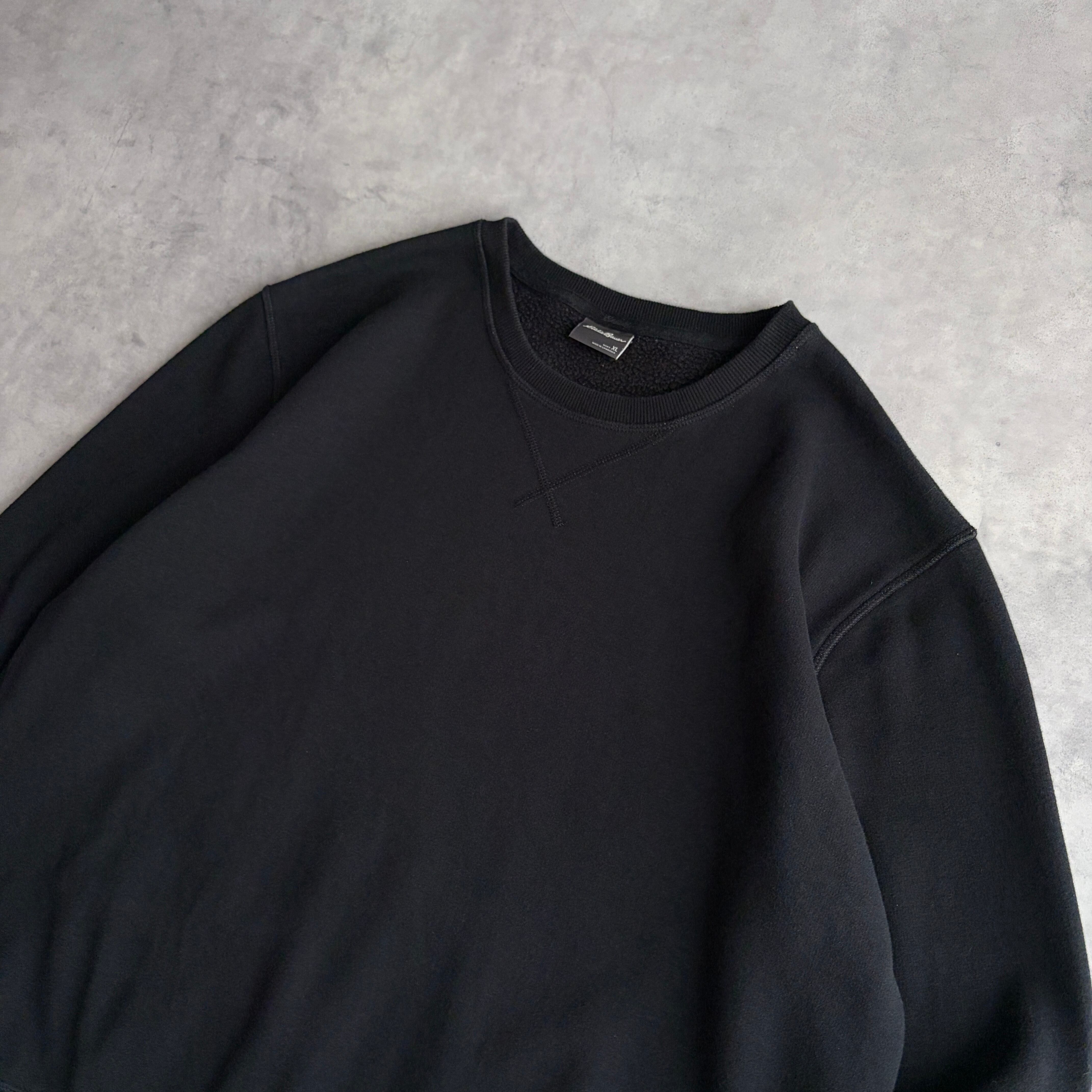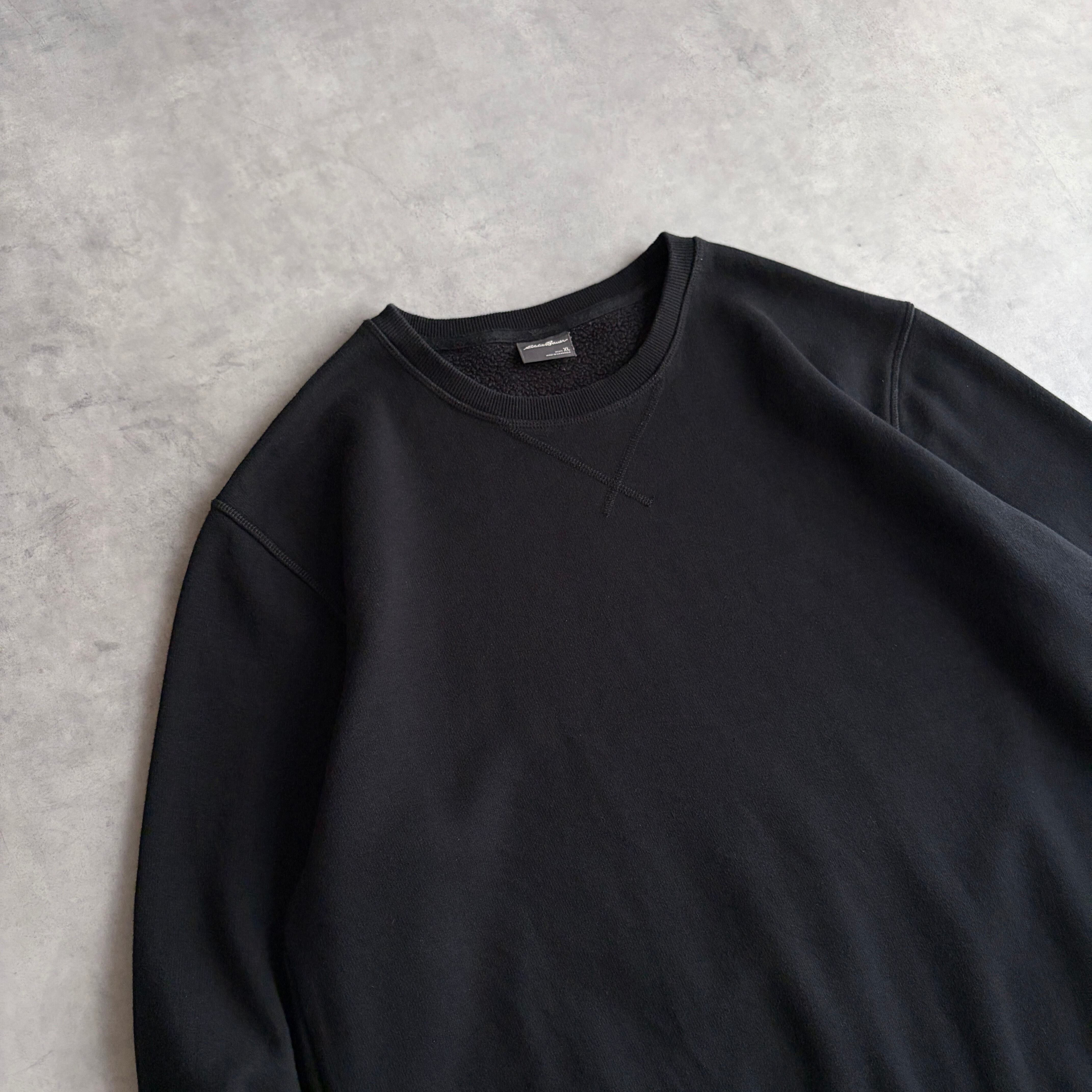 Eddie Bauer/エディーバウアー/無地スウェット/裏起毛/裏フリース/ロゴタブ/前Vガゼット/ソリッド/プレーン/ブランク/ノームコア/ブラック/黒/XL