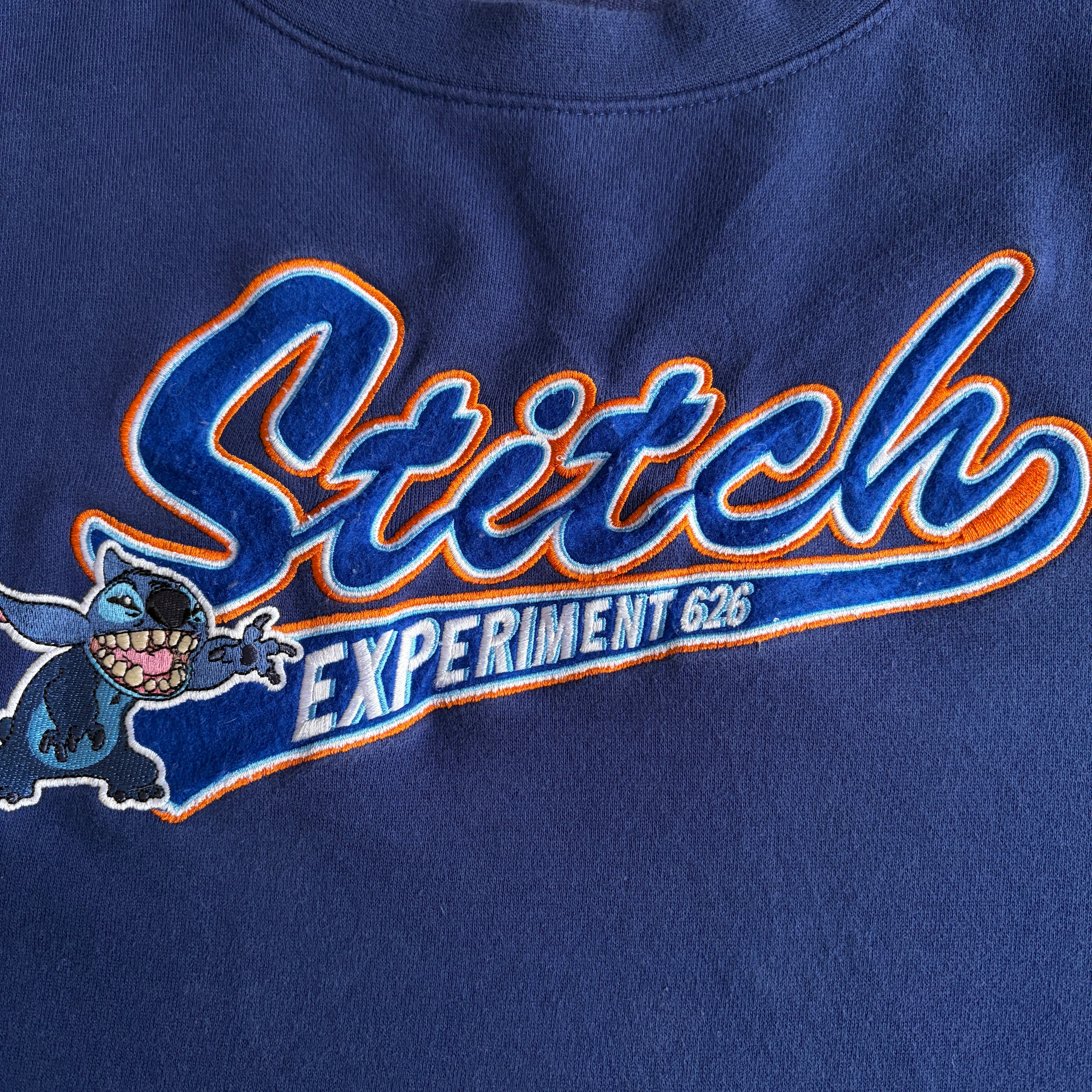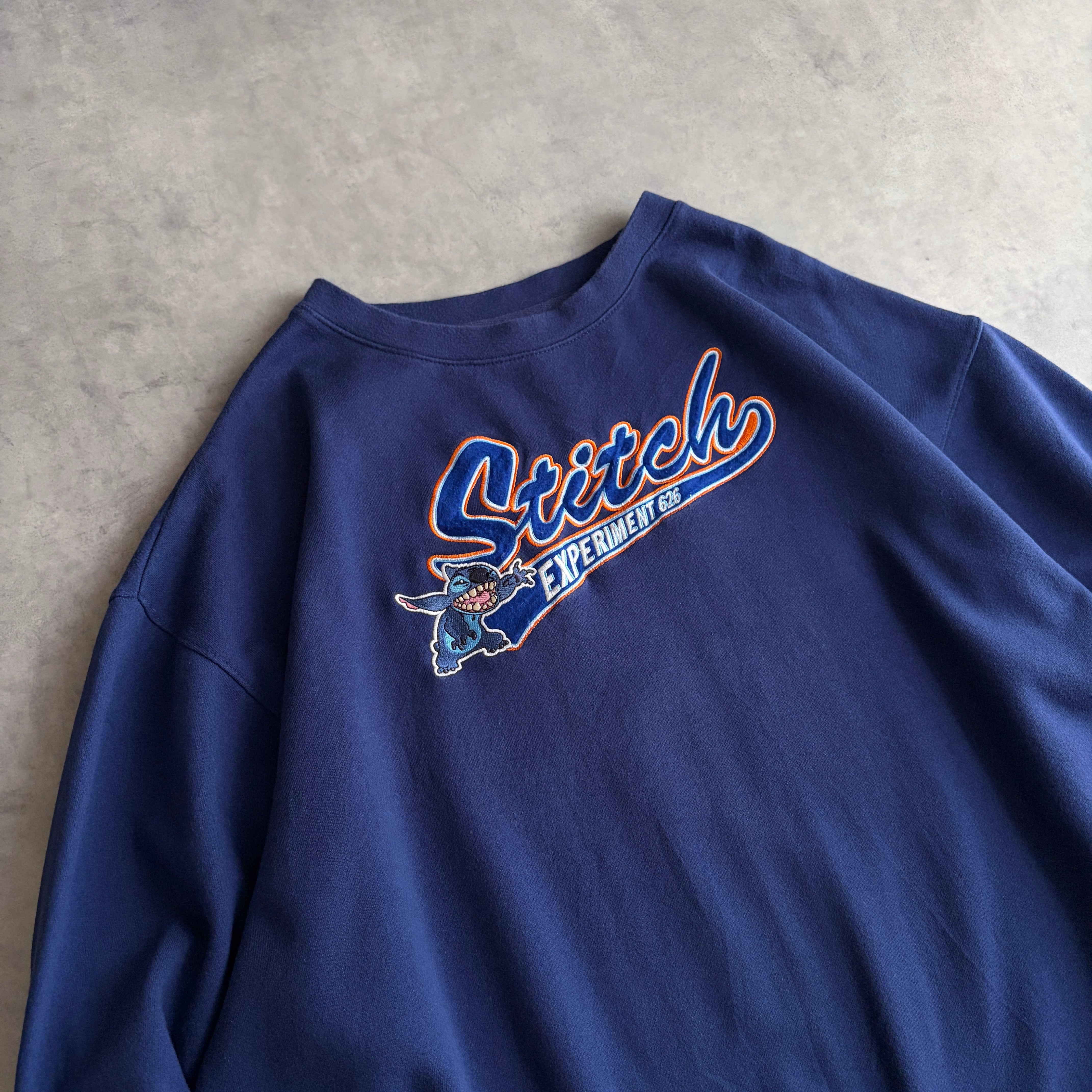 00s〜/Disney/ディズニー/スウェット/スティッチ/キャラクター/ ベースボールロゴ/ワッペン/刺繍/アニメ/ムービー/映画/2XL/ネイビー/紺