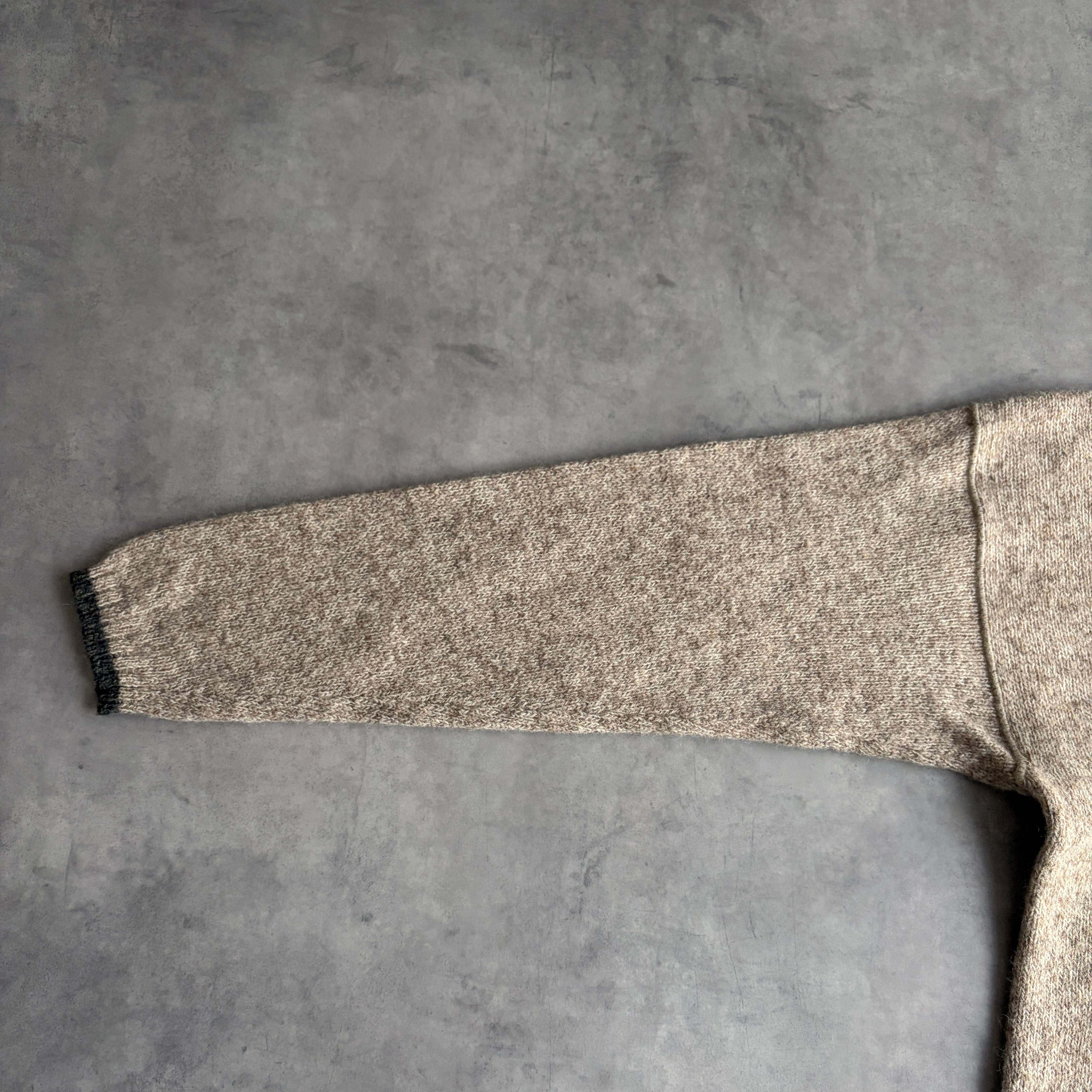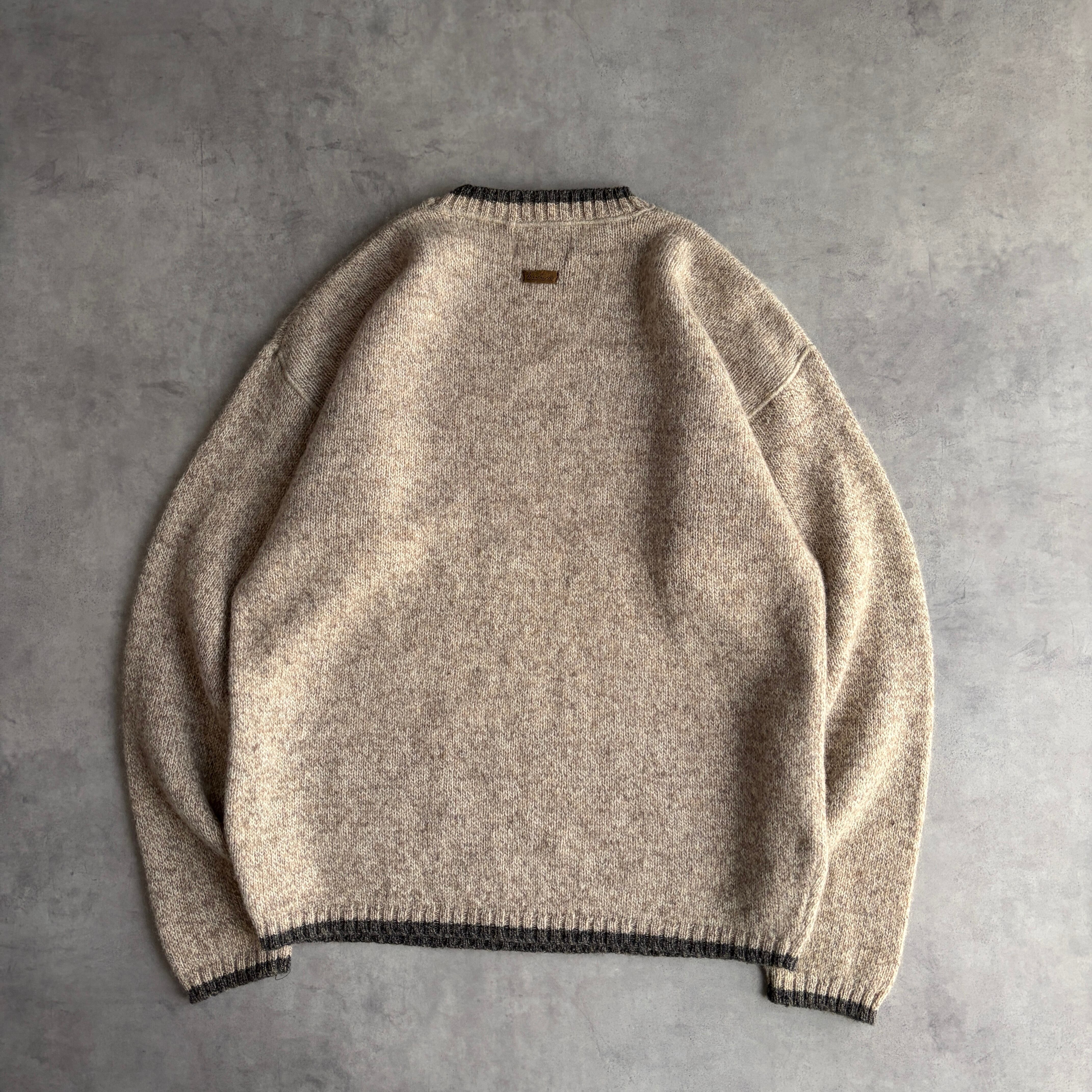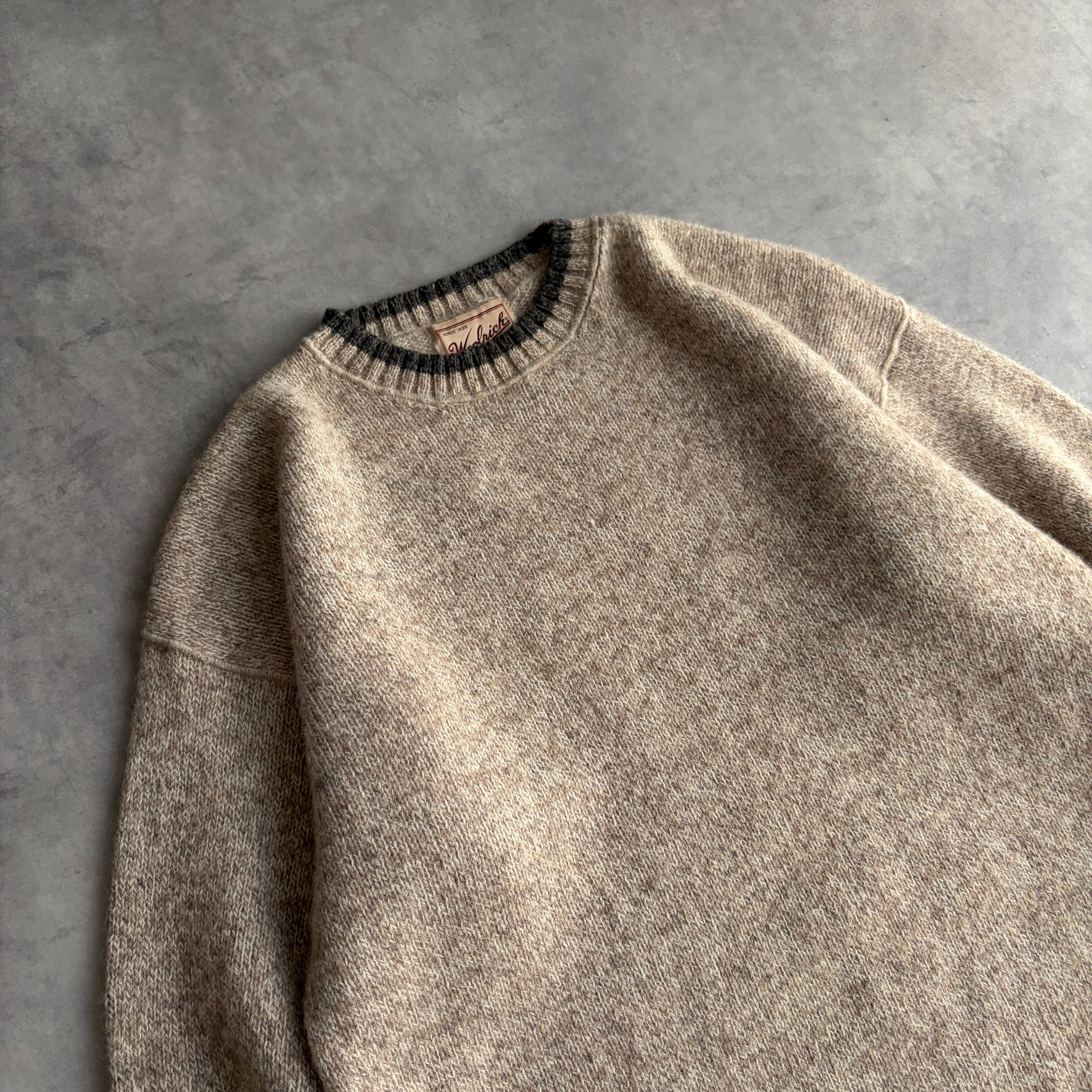 90s/woolrich/ウールリッチ/ウールニット/メランジ/杢/クルーネック/プルオーバー/リブライン/手編み機/ベージュ/L