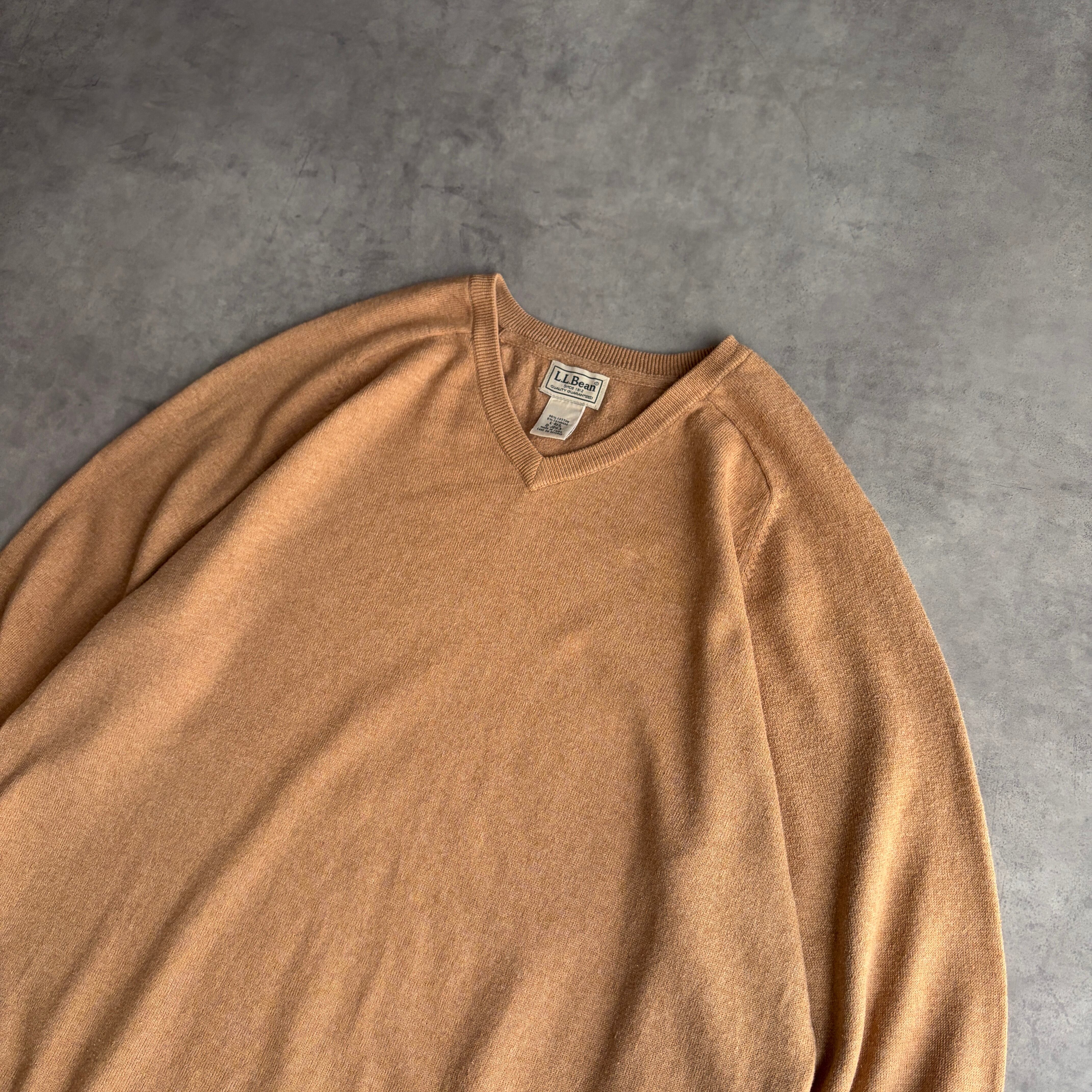 L.L.Bean/エルエルビーン/コットンニット/カシミヤ混/プルオーバー/Vネック/フリーダムスリーブ/ソリッド/無地/ノームコア/ベージュ/L