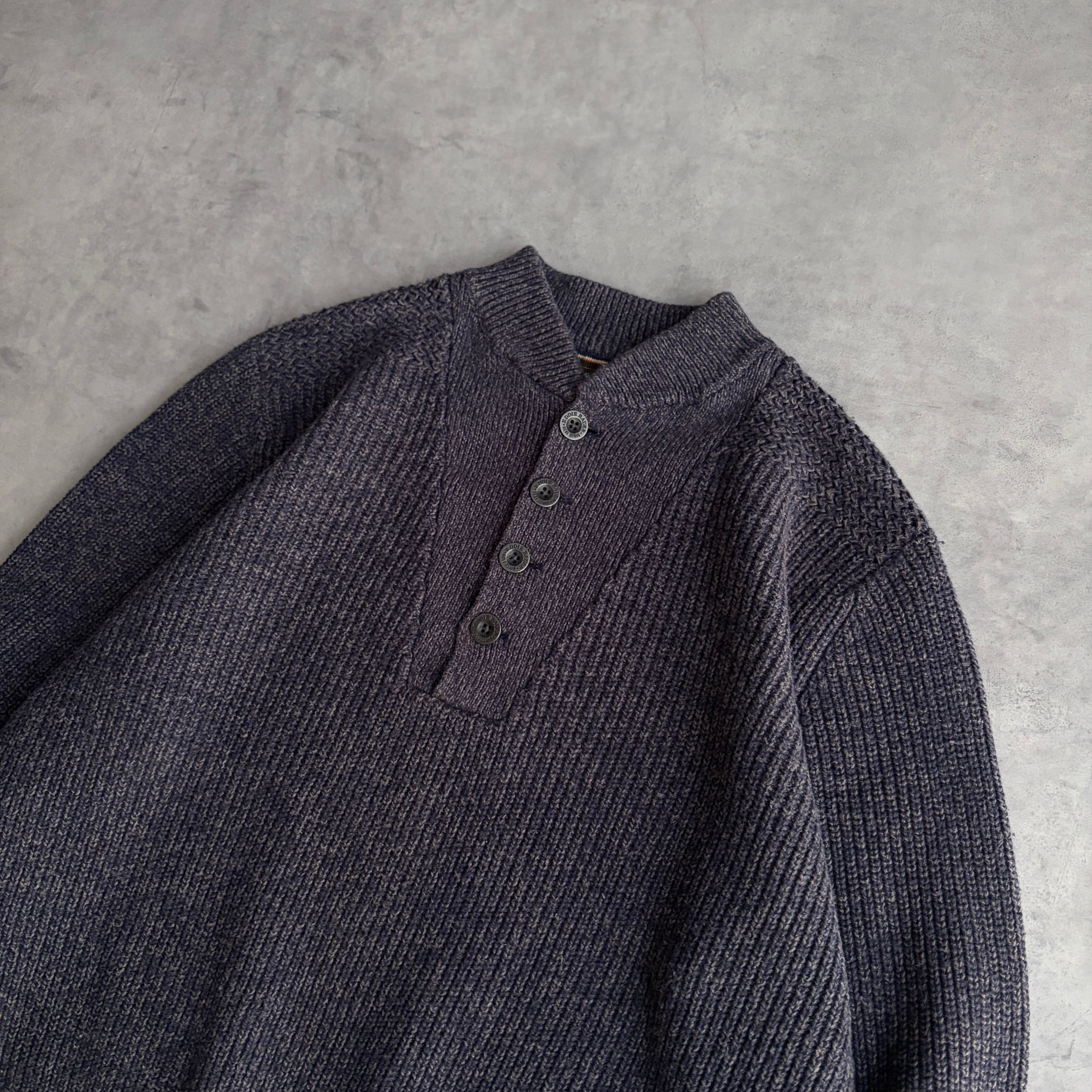 00s/Eddie Bauer/エディーバウアー/コットンニット/ヘンリーネック/メランジ/杢/ミリタリーニット/プルオーバー/メタルボタン/刻印/ハーフボタン/ネイビー/紺