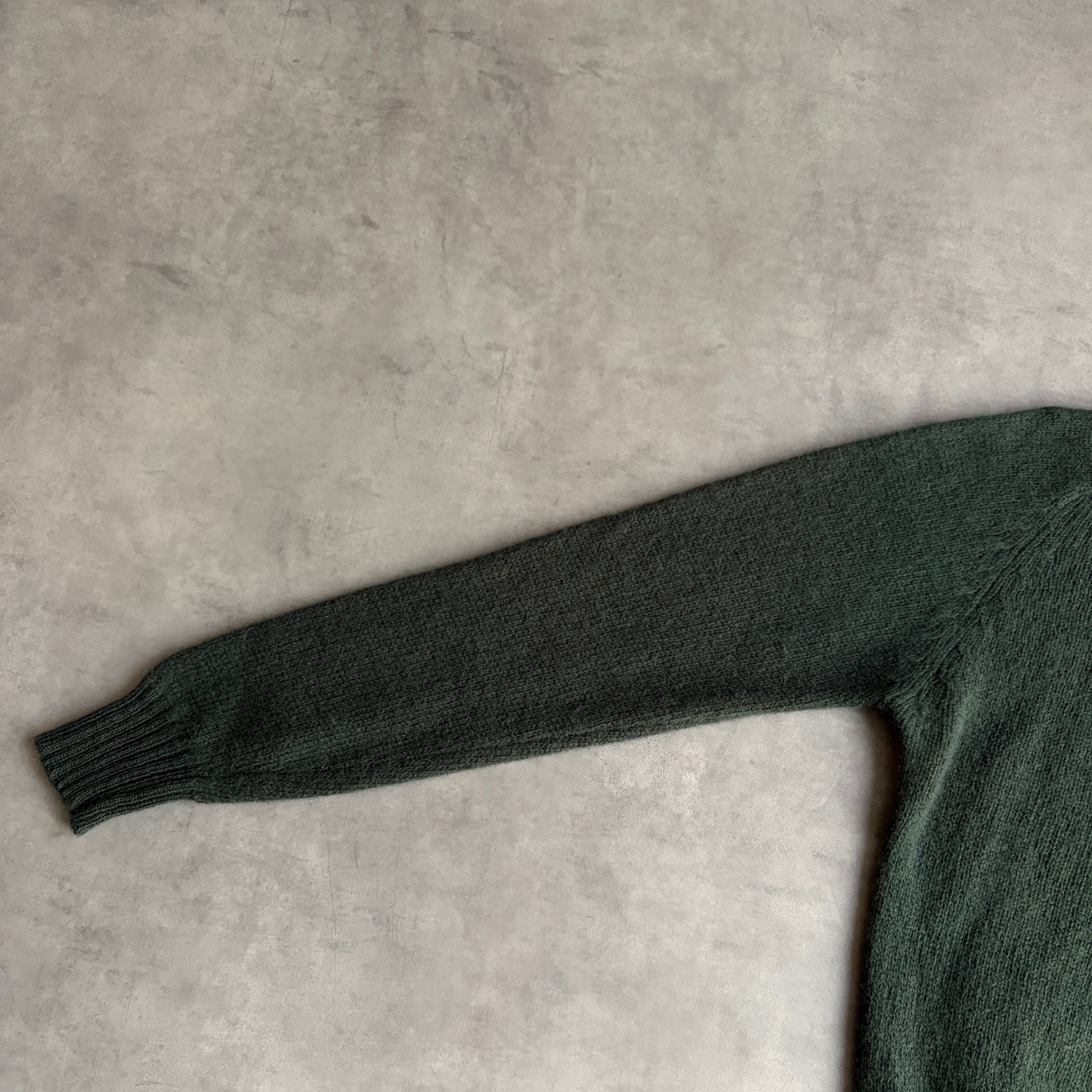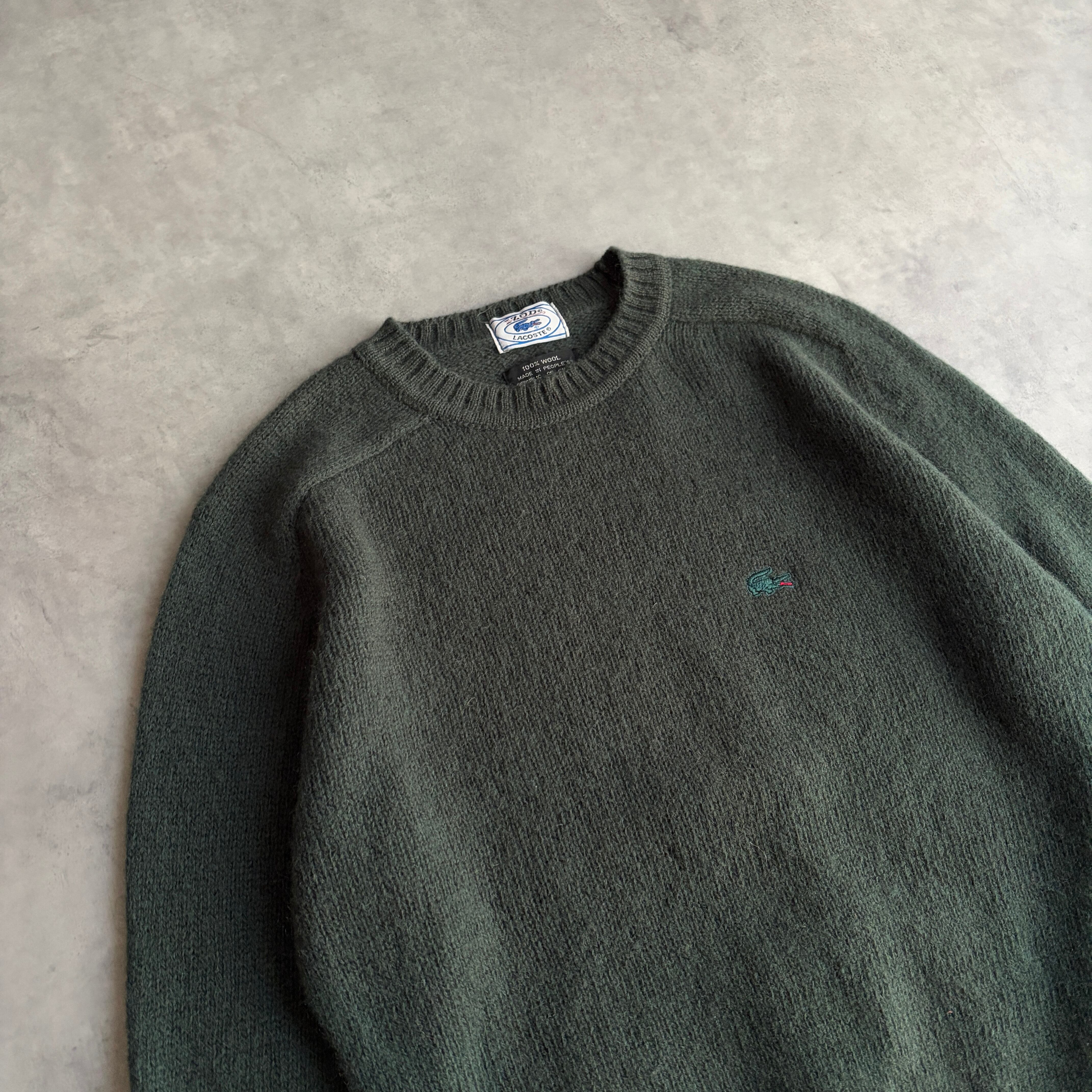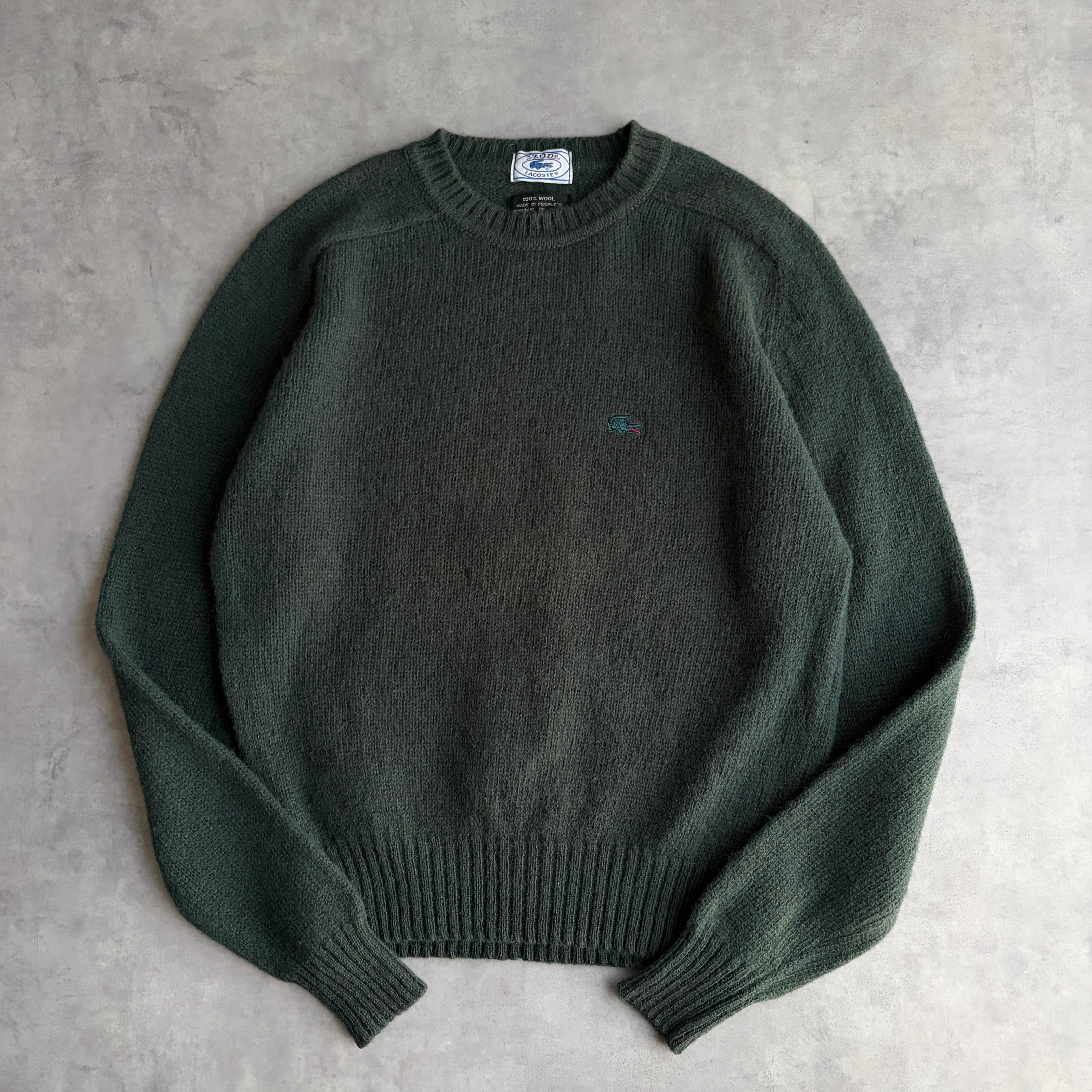 90s/IZOD LACOSTE/アイゾッド ラコステ/ウールニット/フリーダムスリーブ/プルオーバー/クルーネック/糸巻きタグ/ワニ刺繍/ダークグリーン
