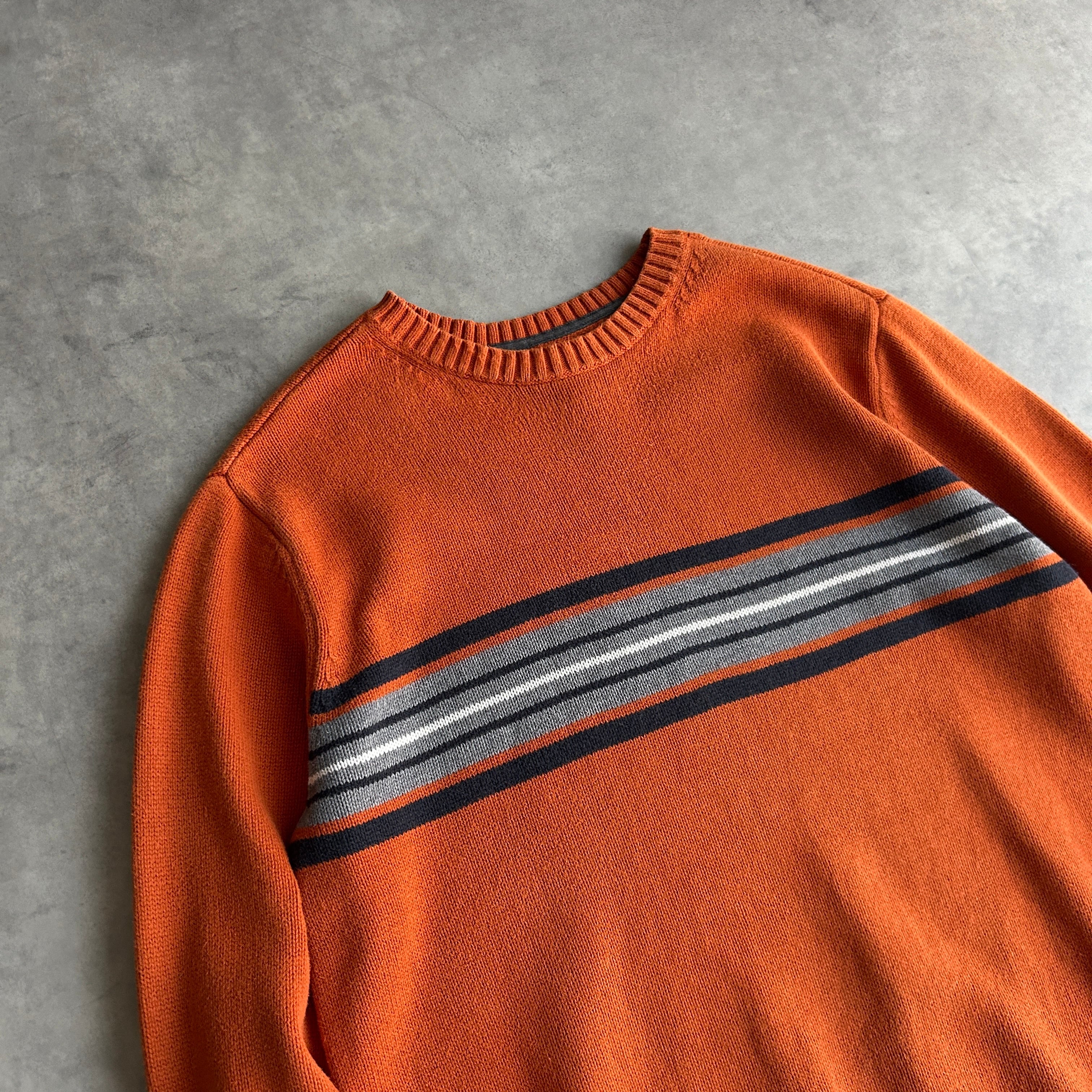 ST JOHN'S BAY/セントジョンズベイ/コットンニット/ボーダー/オレンジ/プルオーバー/クルーネック/シンプルデザイン
