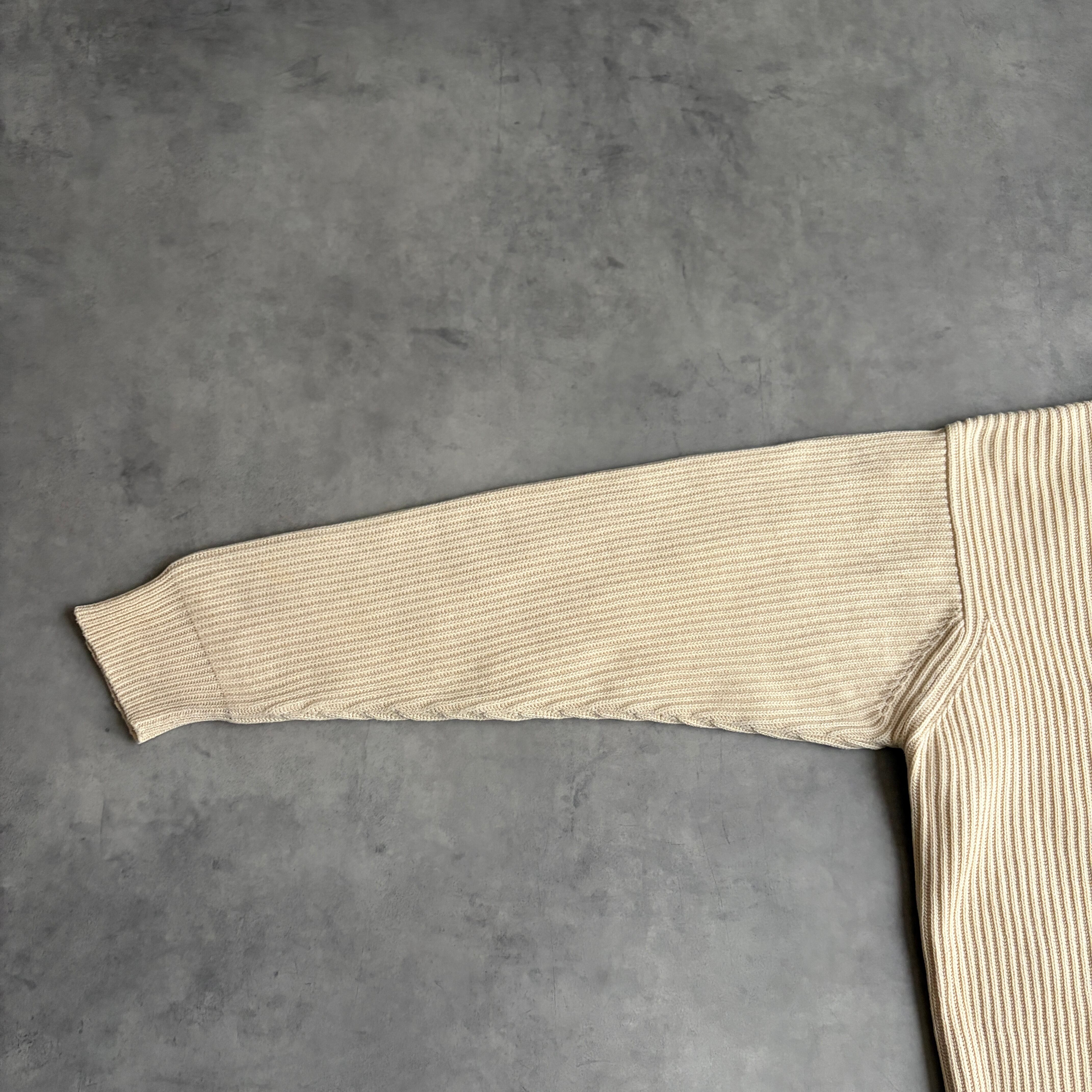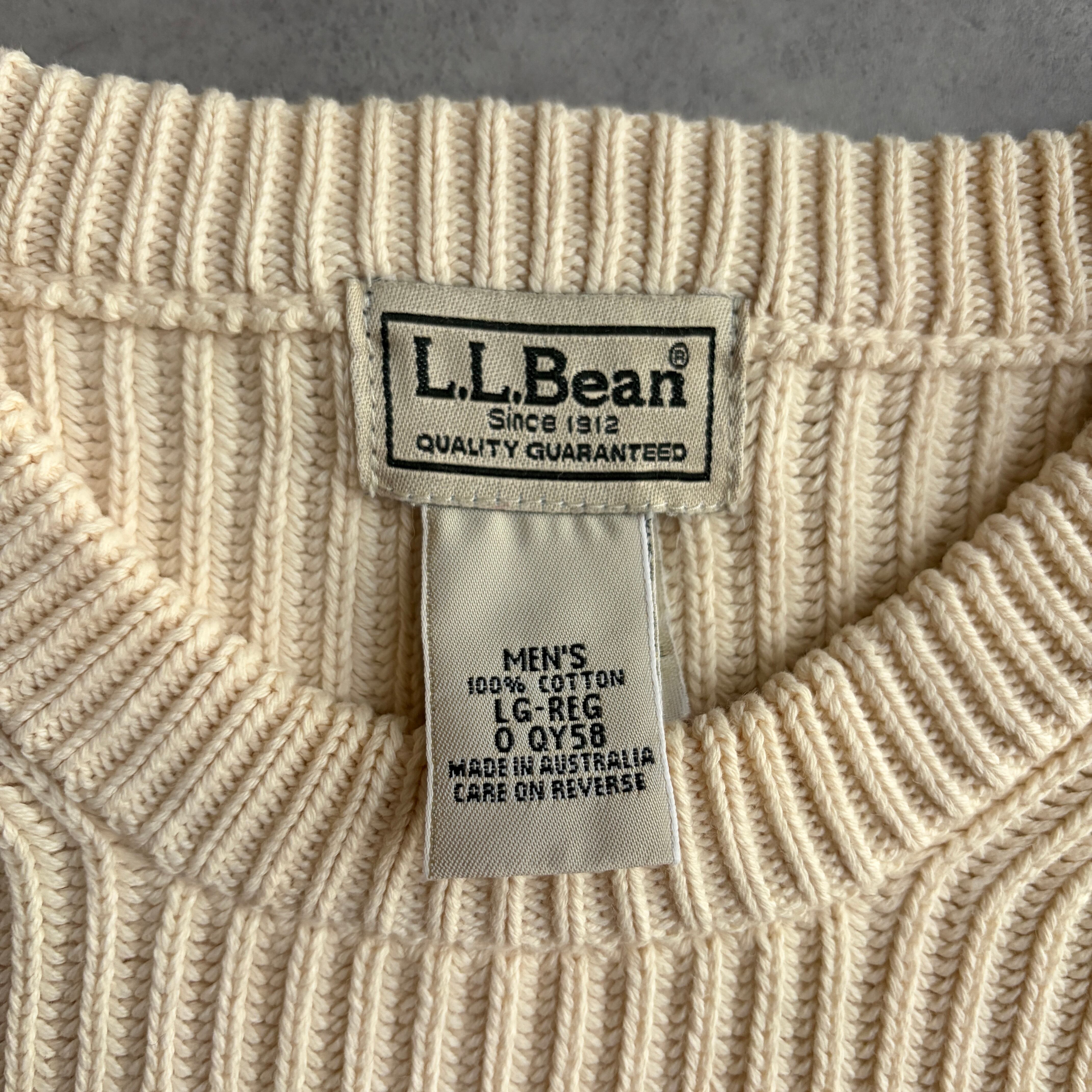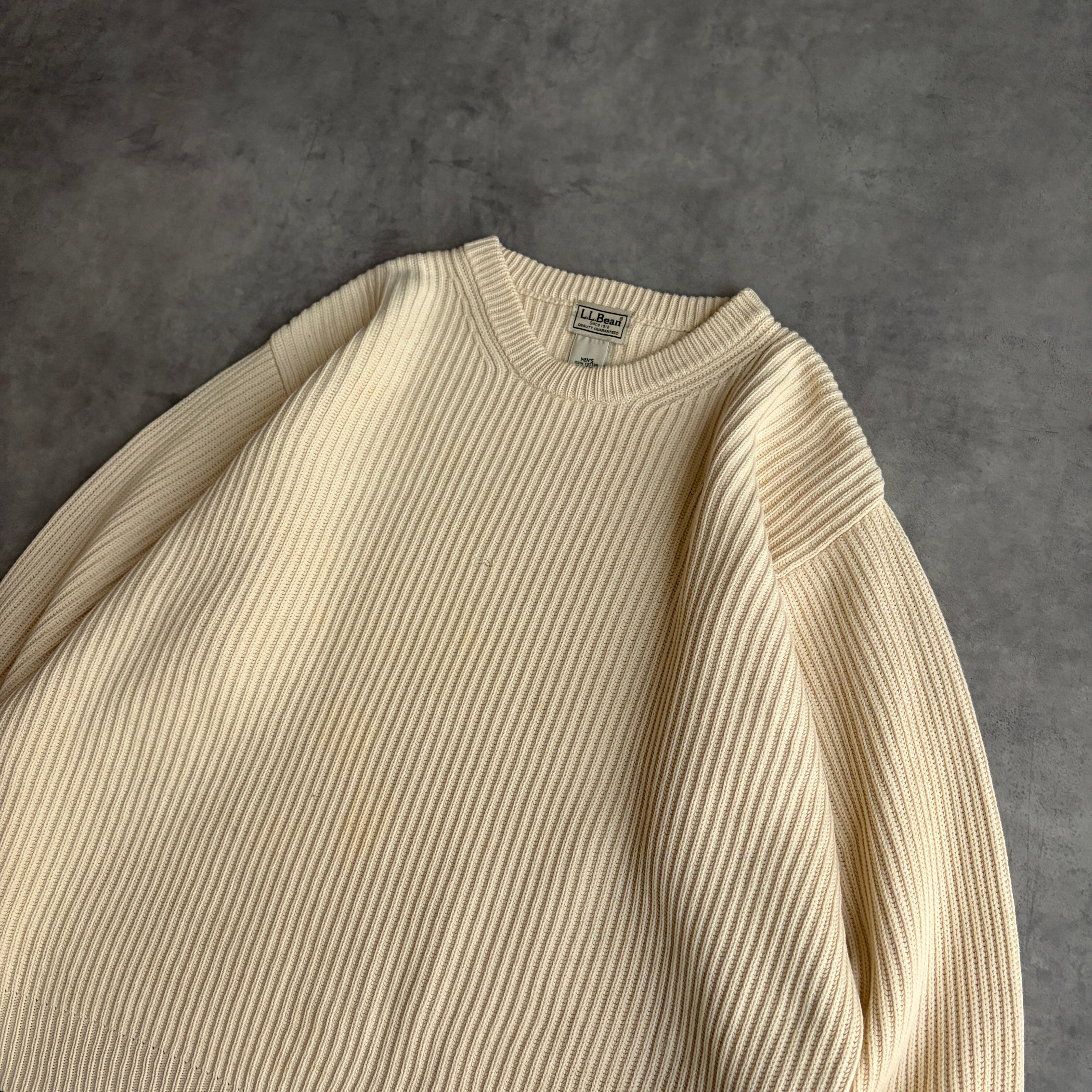 L.L.Bean/エルエルビーン/コットンニット/畔編み/リブ編み/立体/プルオーバー/クルーネック/ソリッド/ノームコア/オフホワイト