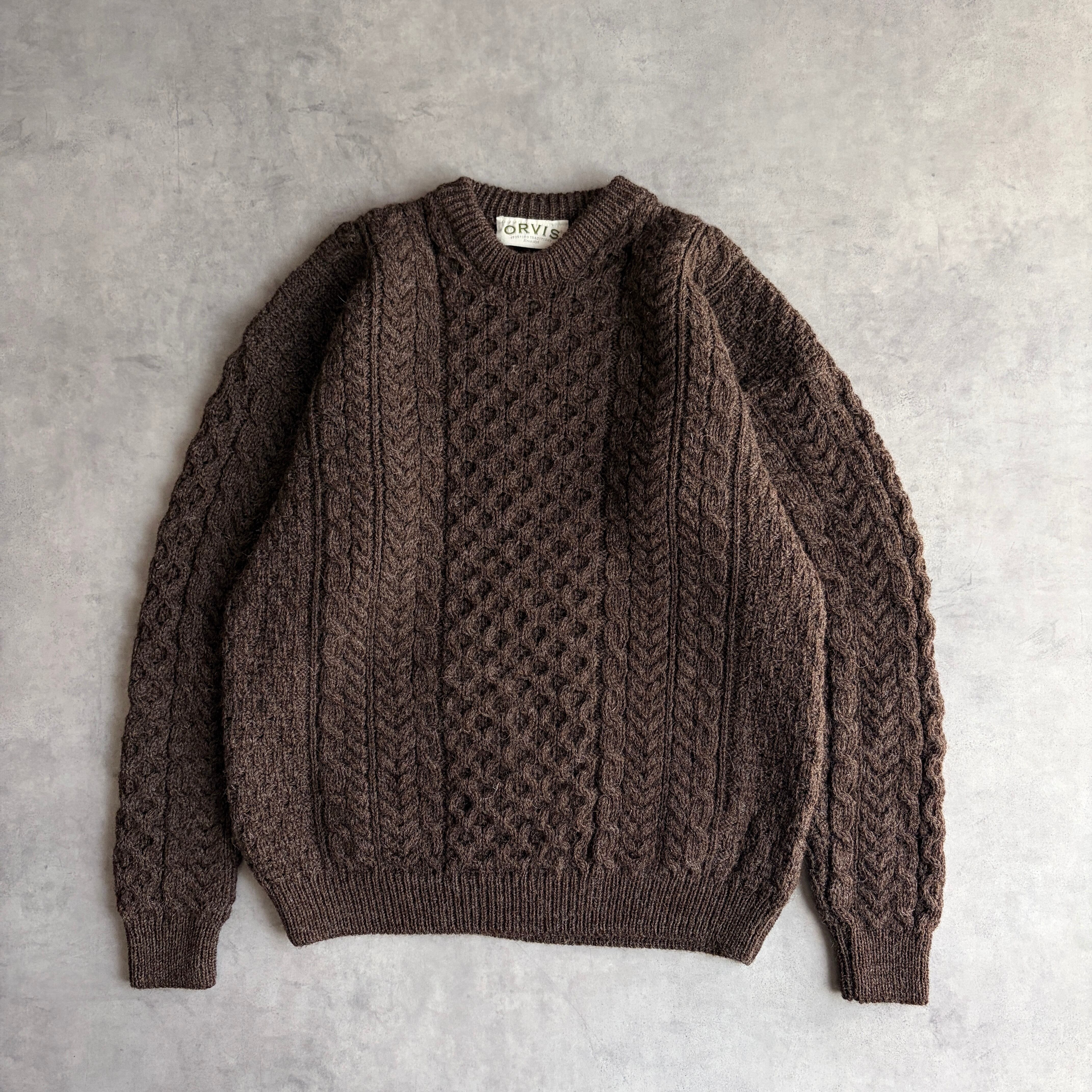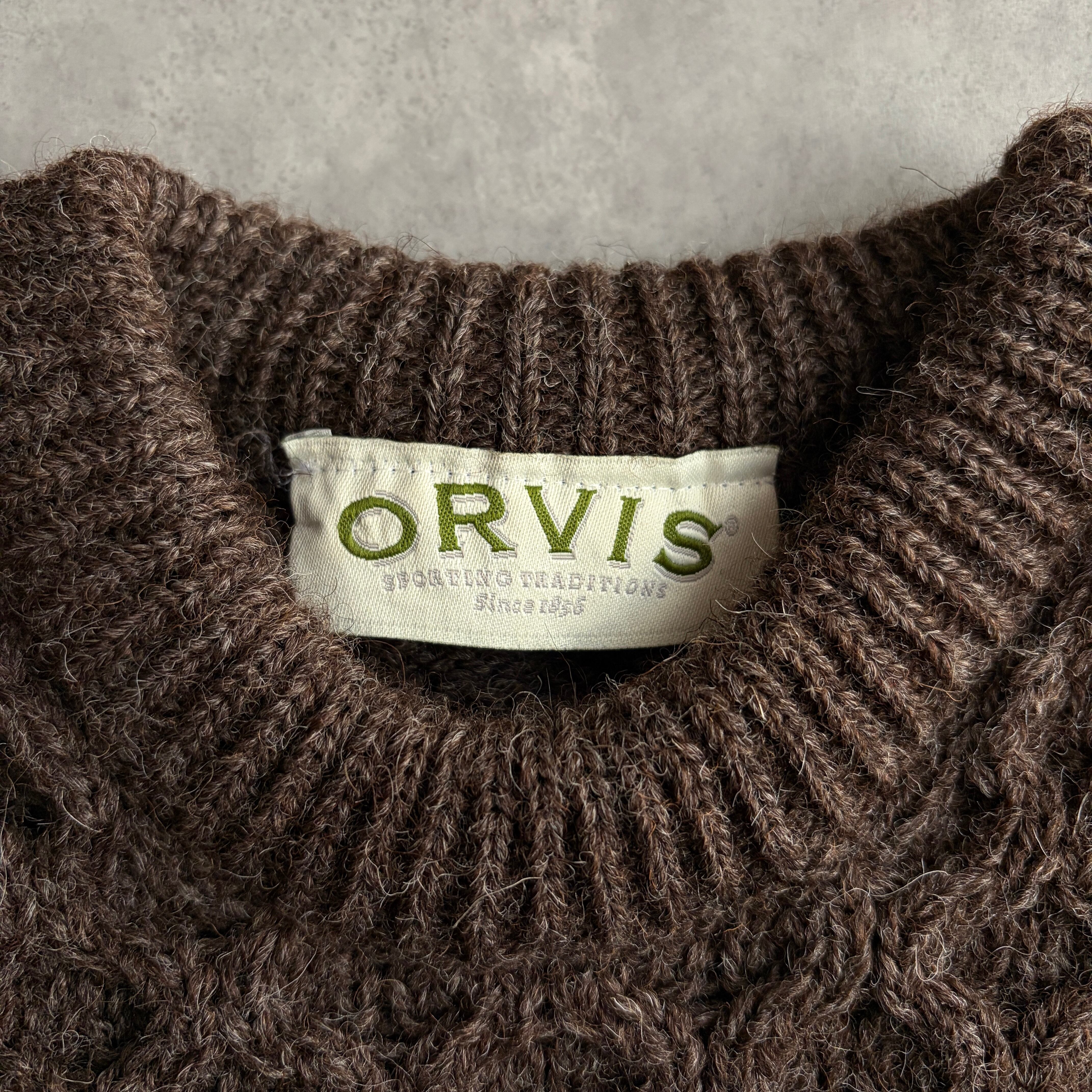 00s〜/ORVIS/オービス/アランニット/フィッシャーマンセーター/ケーブル編み/立体/プルオーバー/クルーネック/ブラウン
