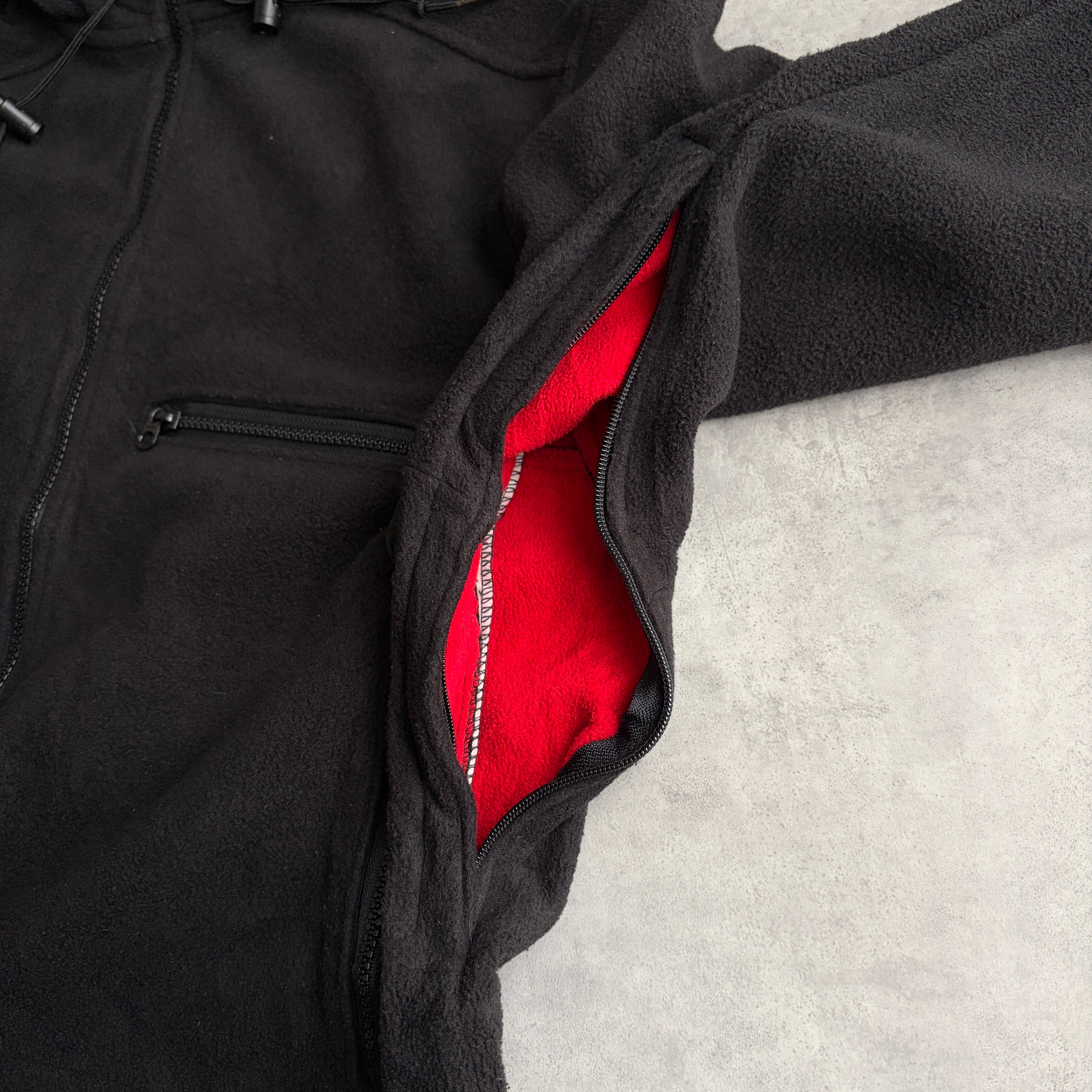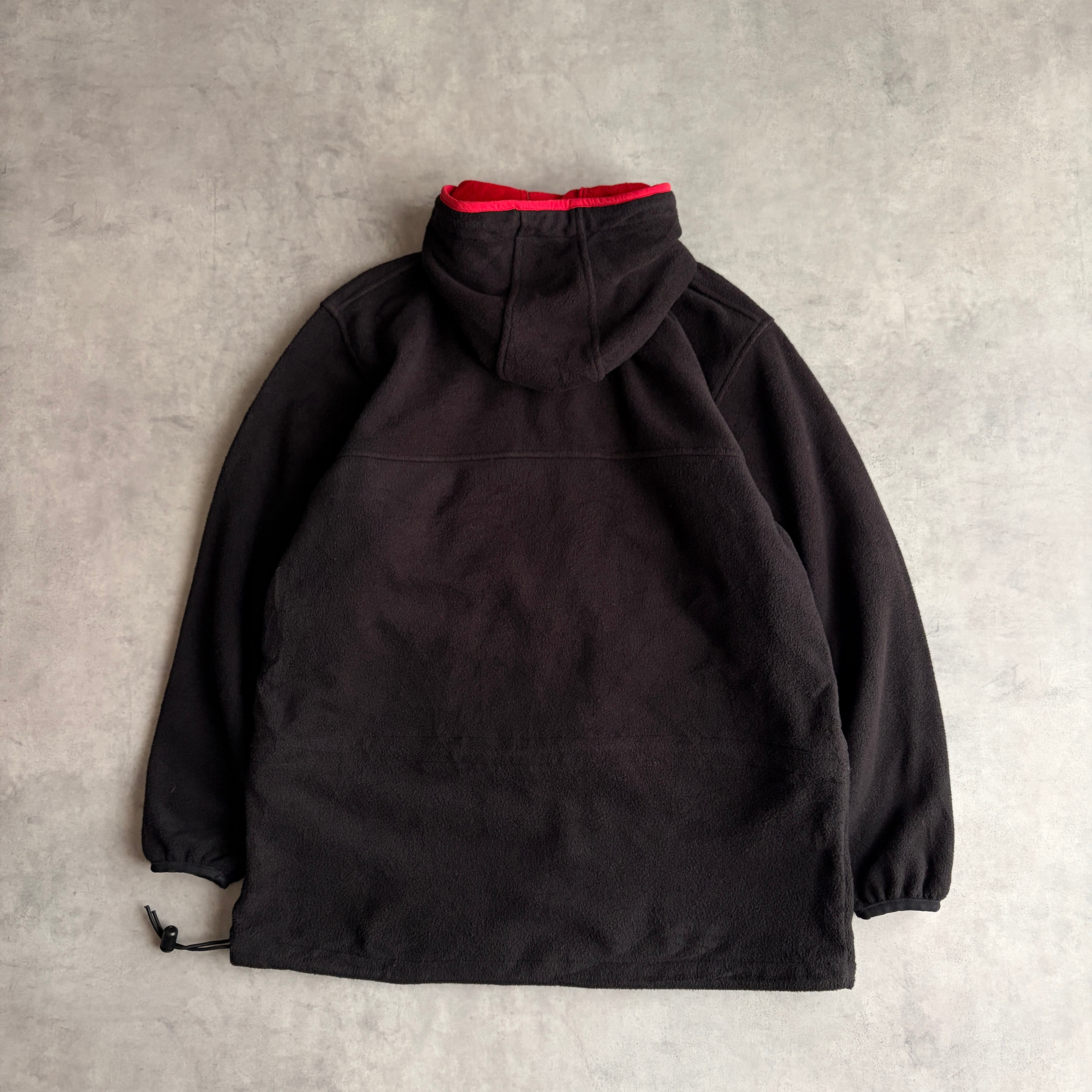 ハーフジップや裾ドローコード、ロゴ入りジッパープル、90sらしいブラック×レッドのカラーリングでデザイン製もあります。