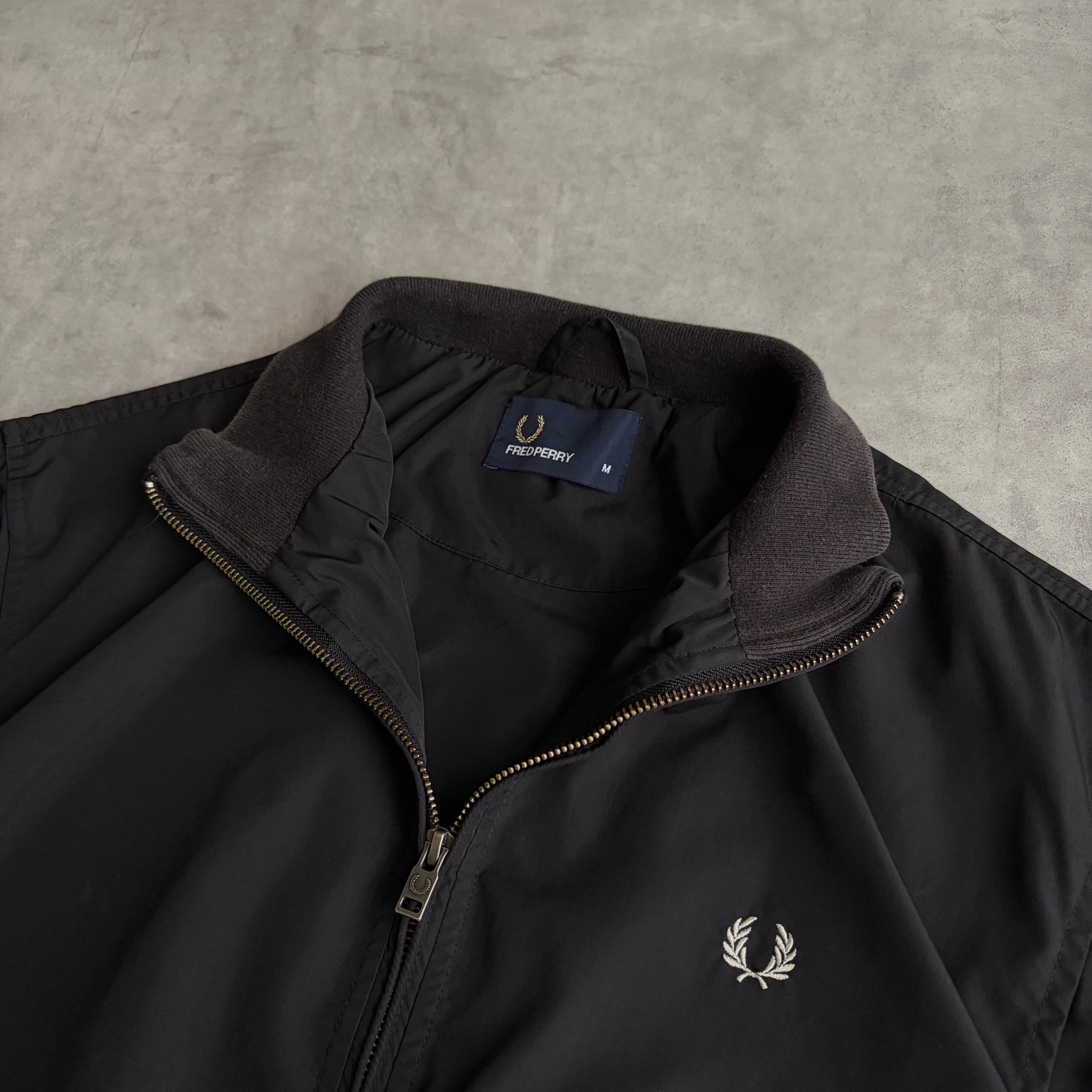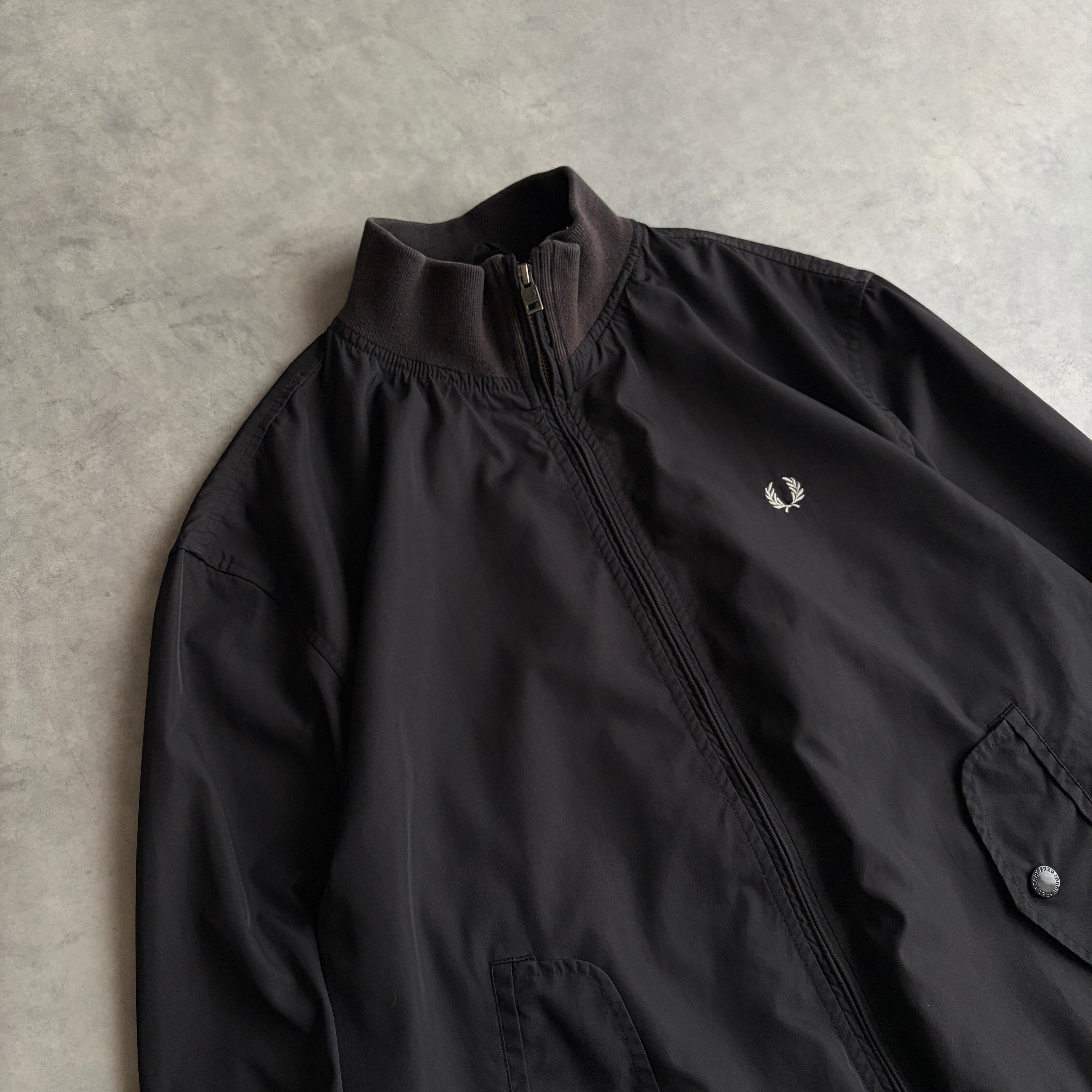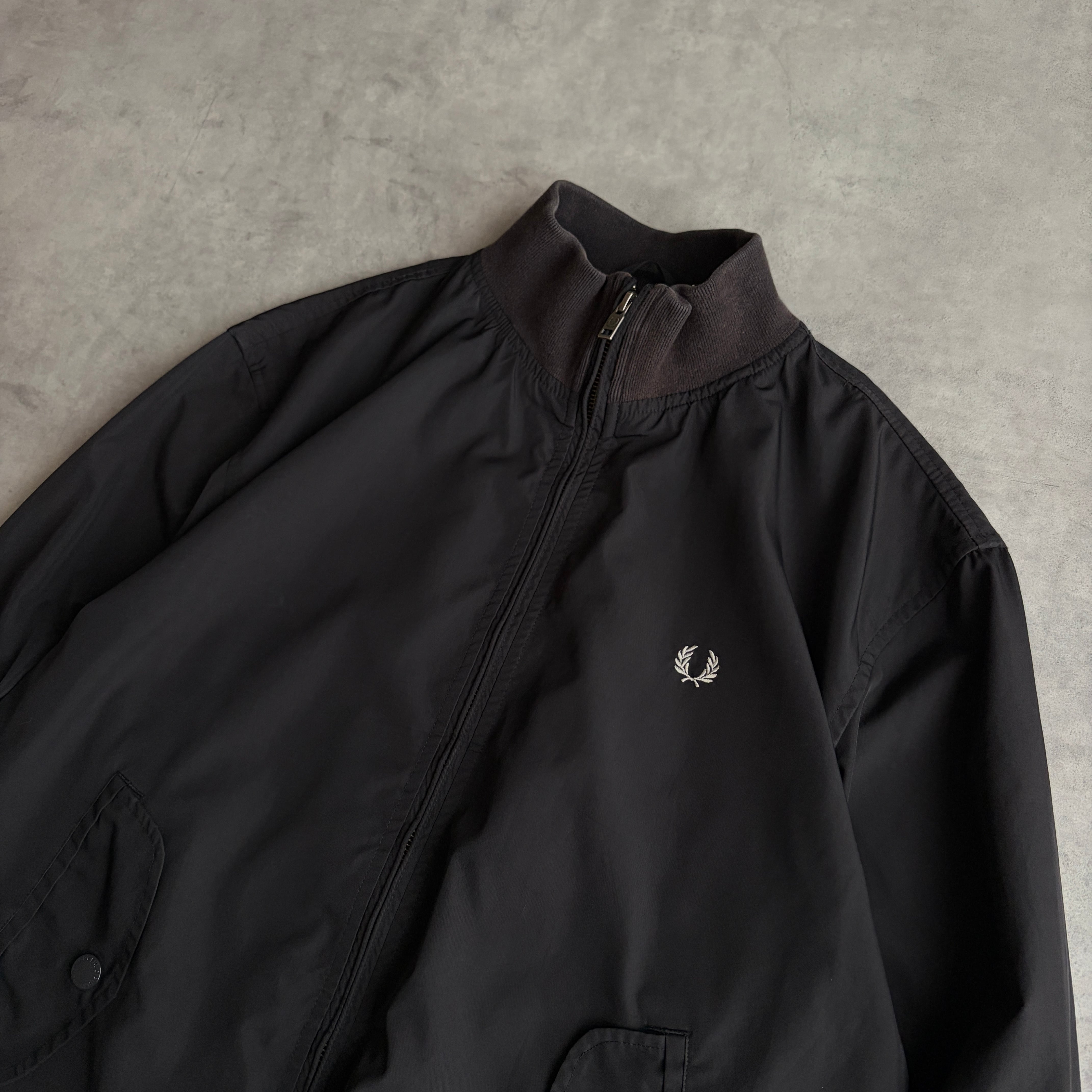 FRED PERRYらしい月桂樹のロゴ刺繍やリブライン。
