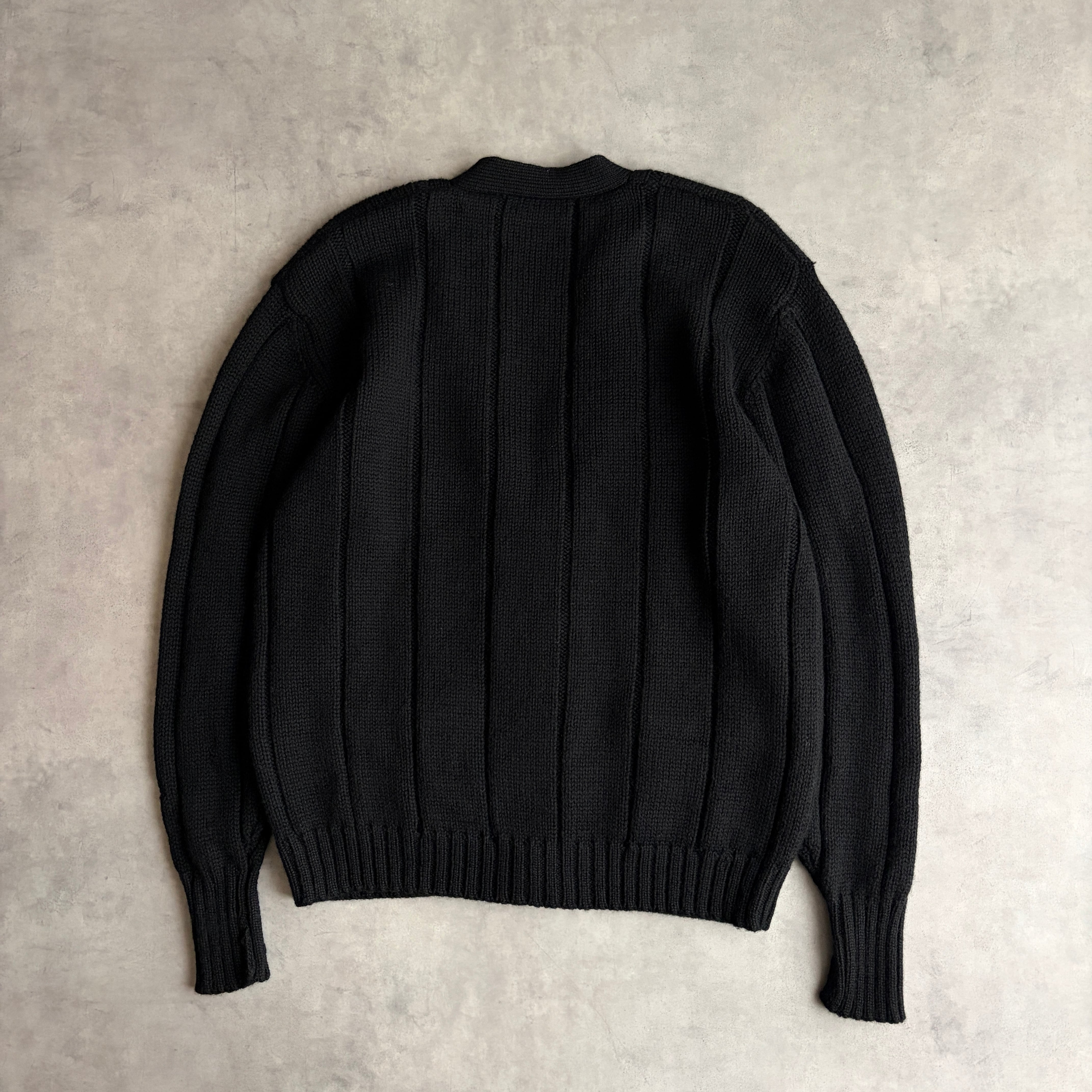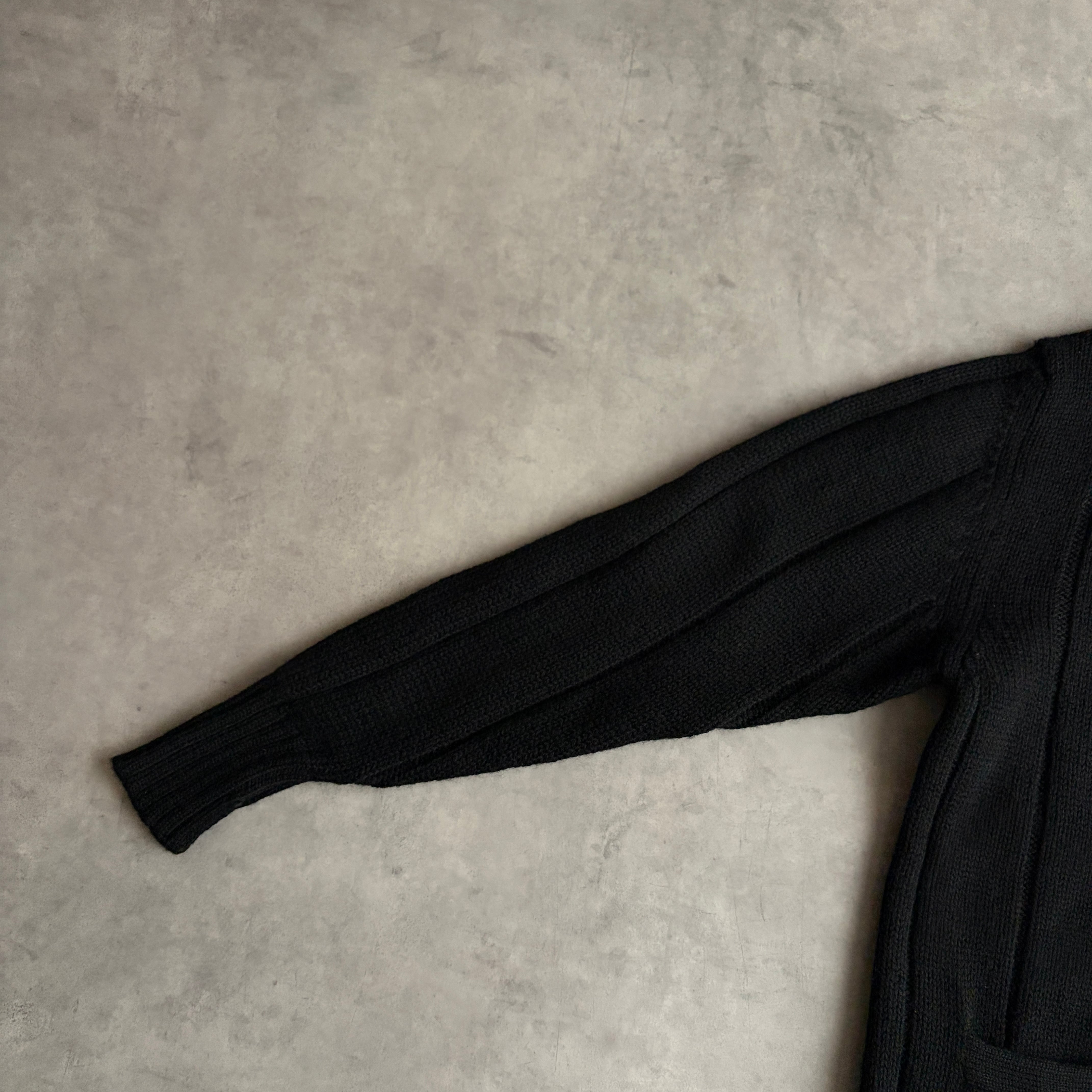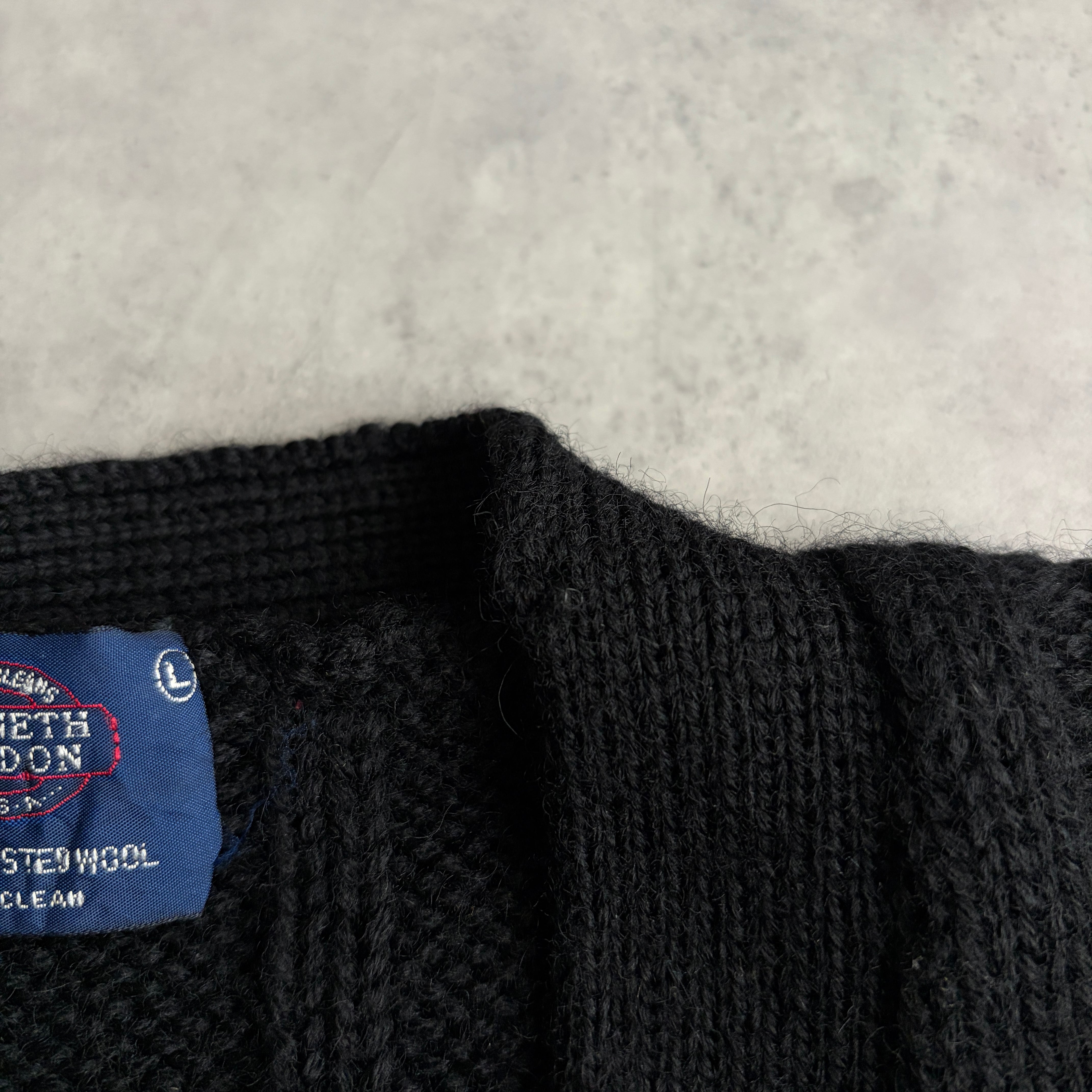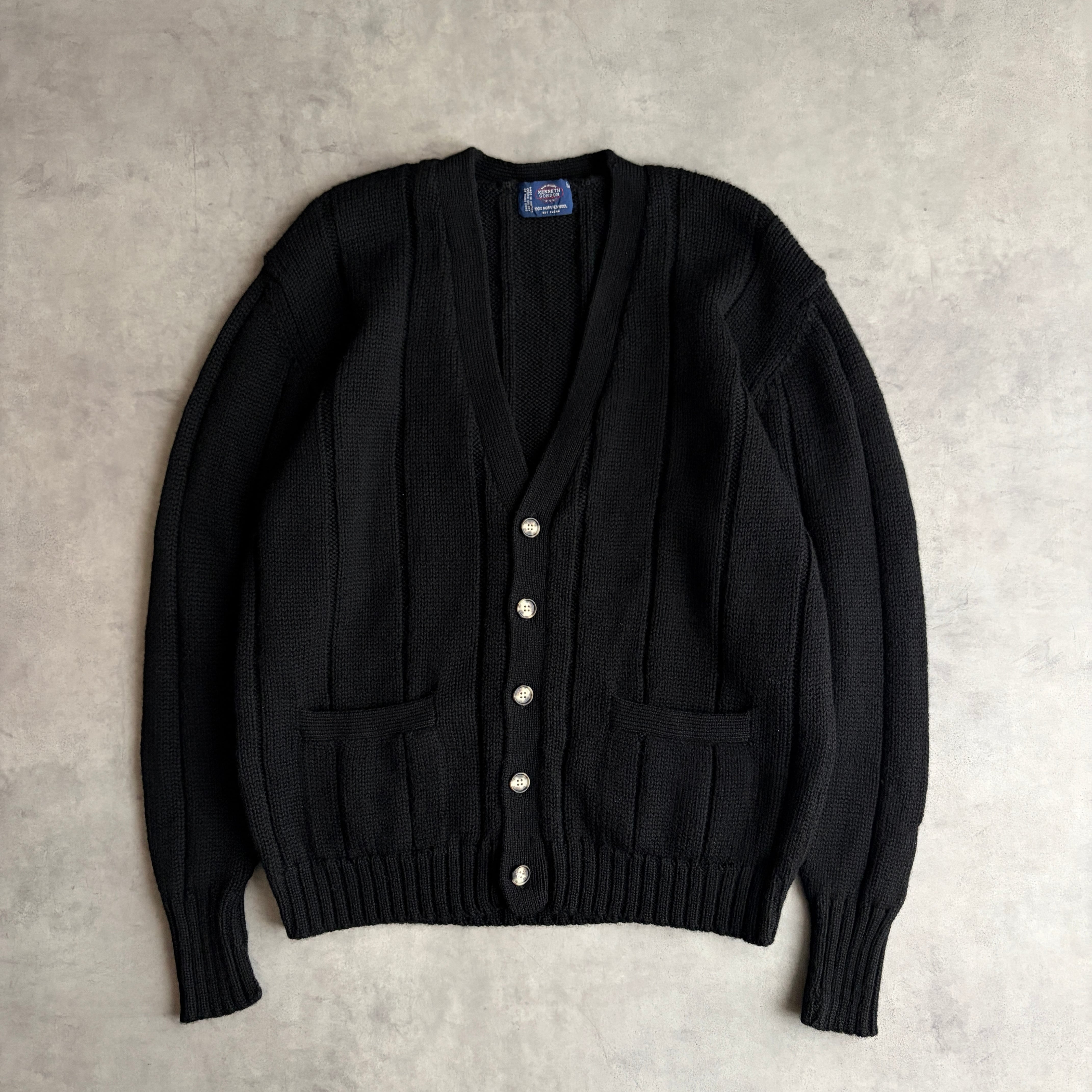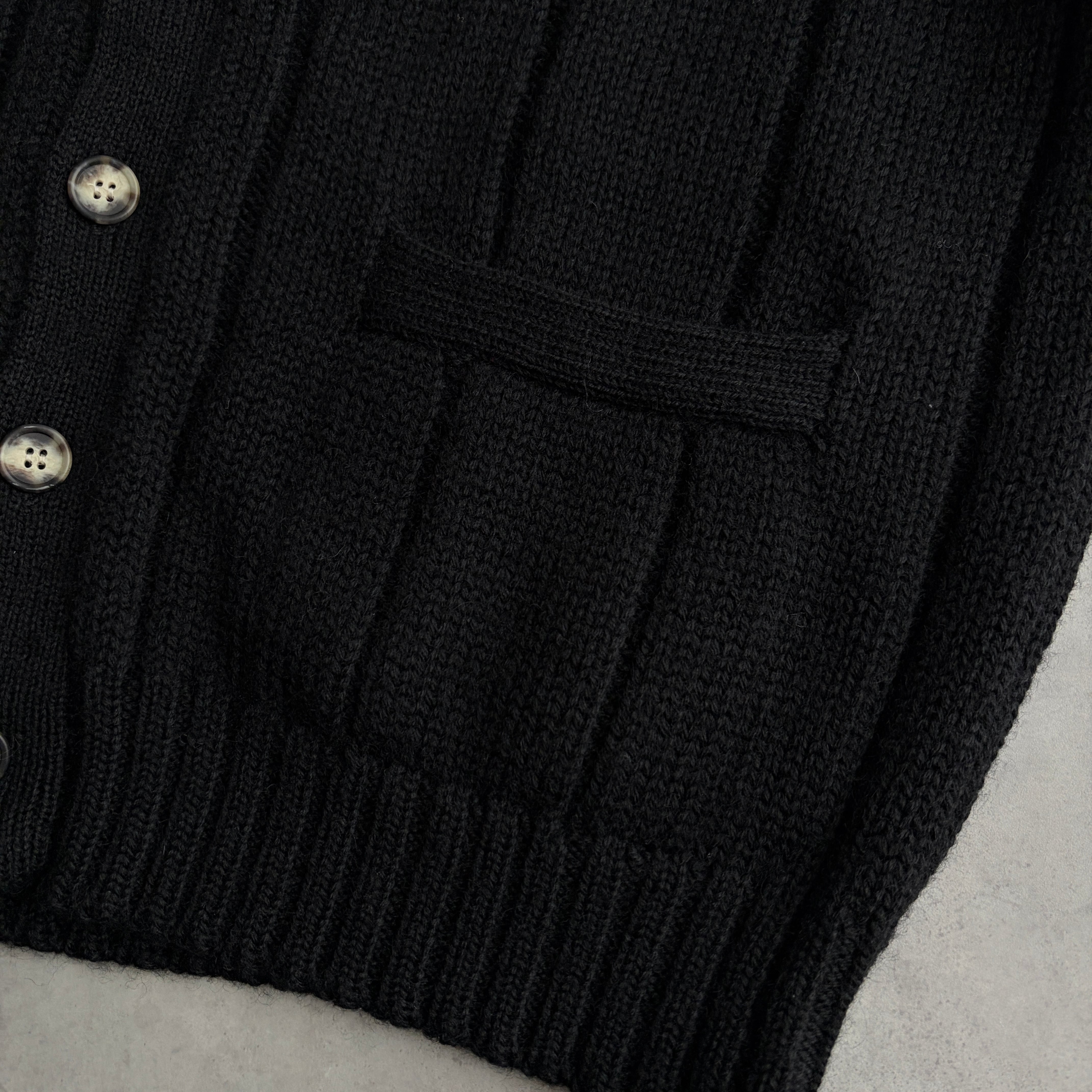 80s〜90s/KENNETH GORDON/ケネスゴードン/ウールカーディガン/畔編み/ポケット/英国領香港製/ブラック/ソリッド/ノームコア