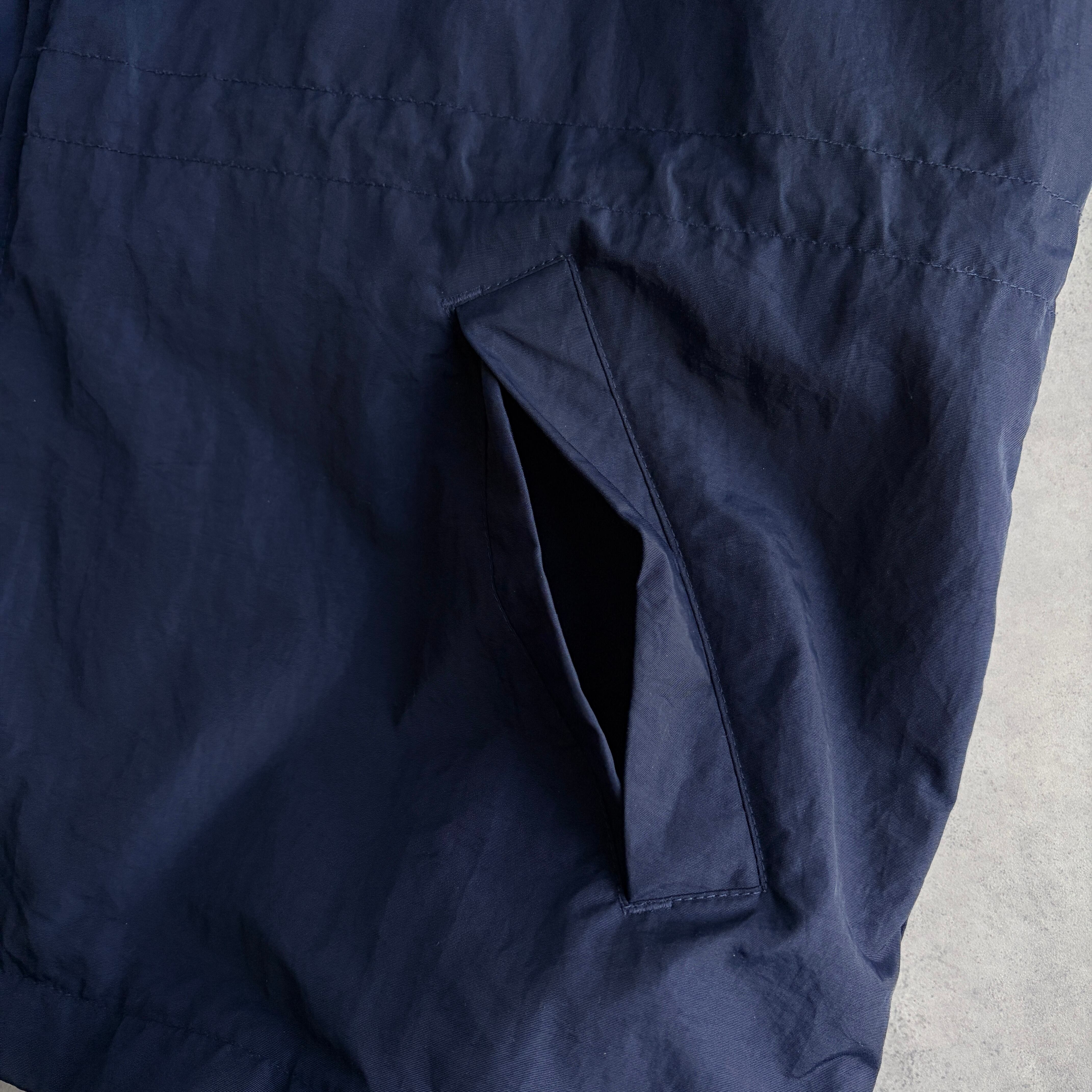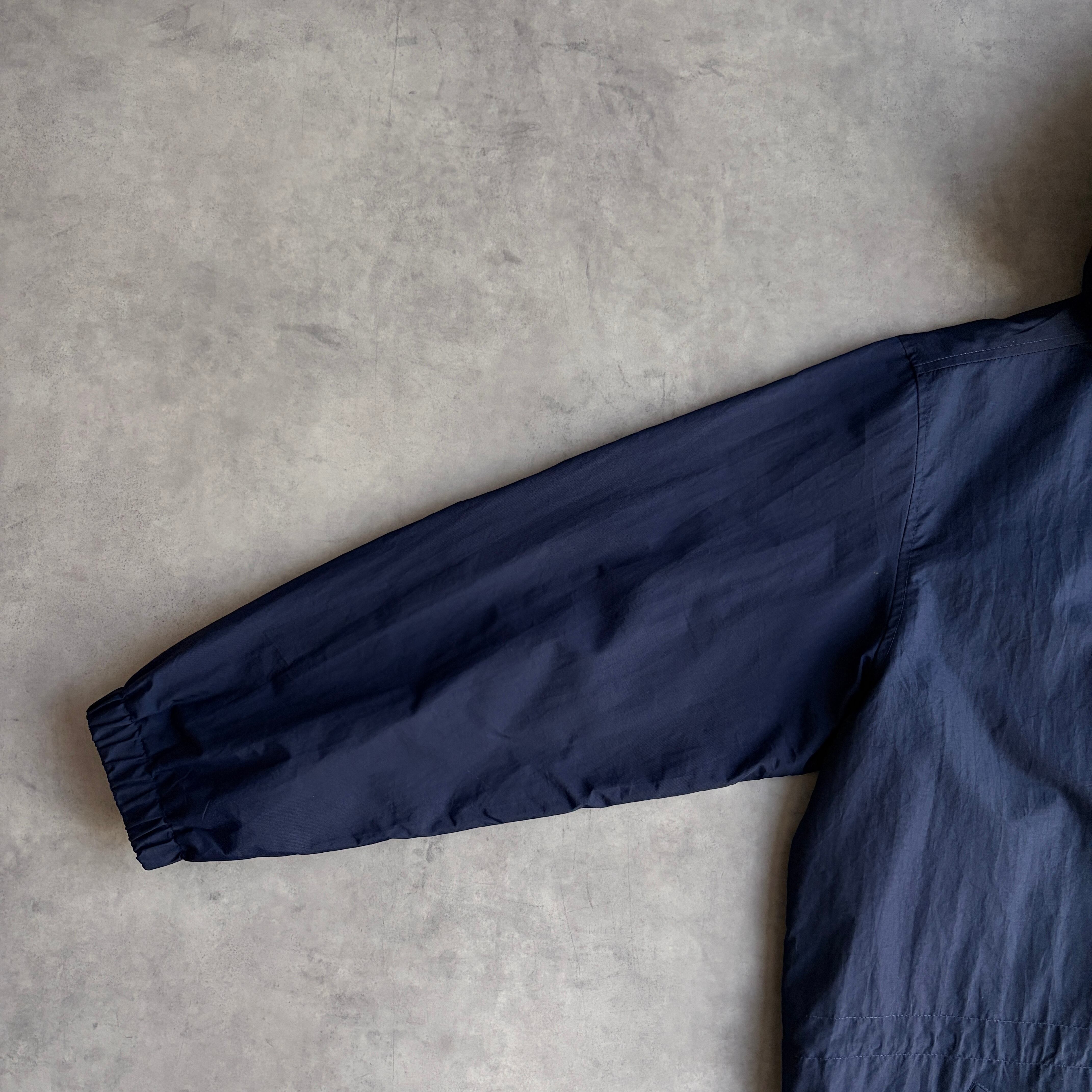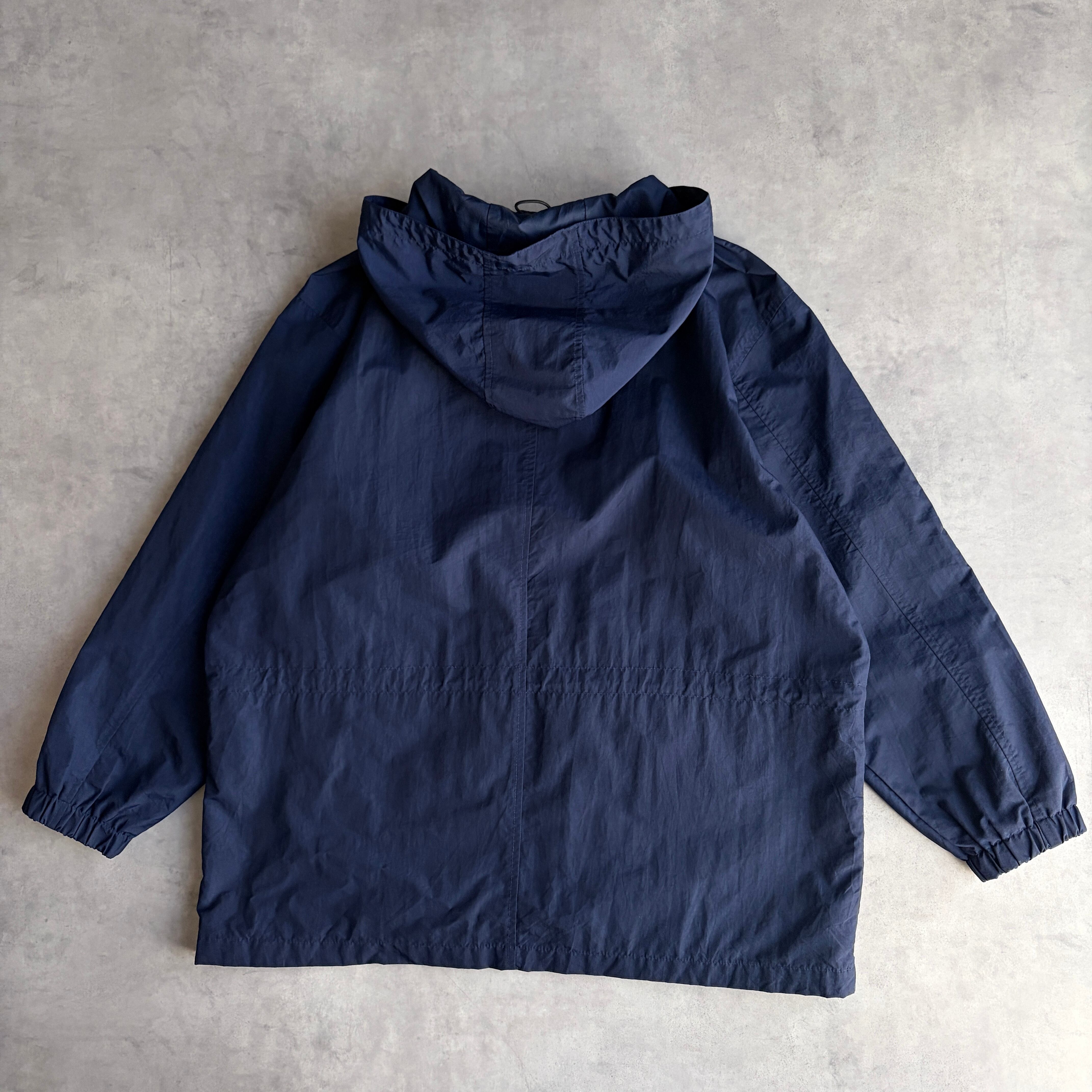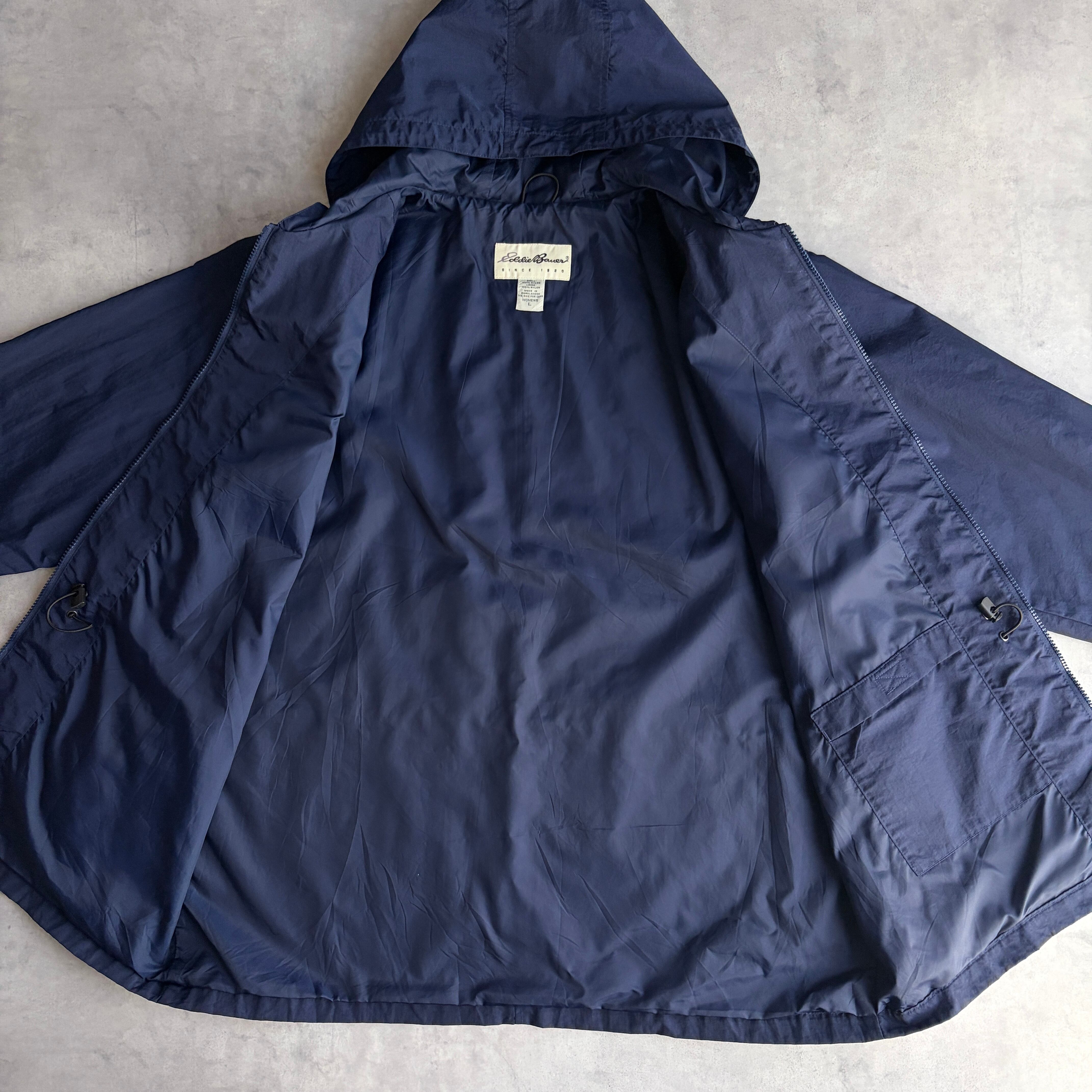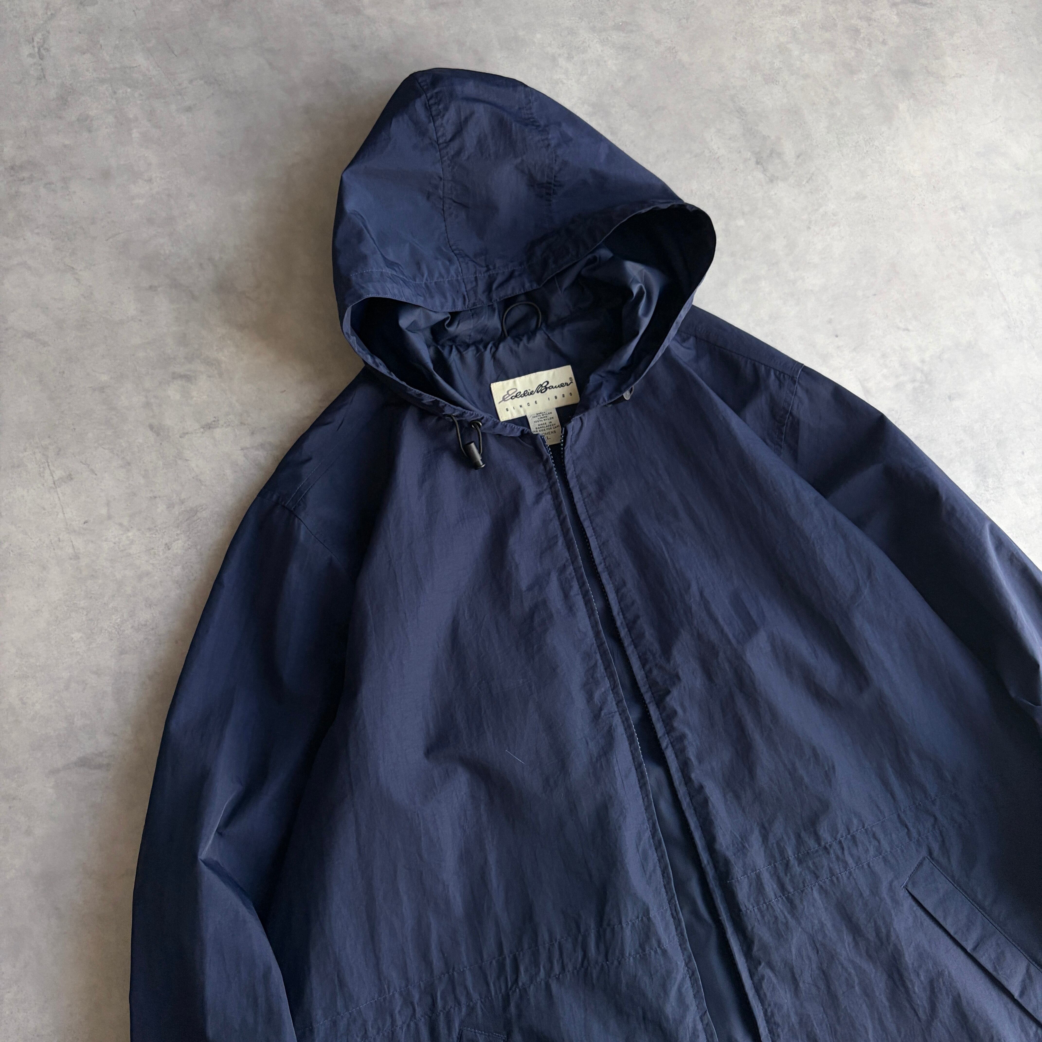 90s/Eddie Bauer/エディーバウアー/ナイロンジャケット/マウンテンパーカー/ダブルジップ/腰ドローコード/ソリッド/ノームコア/ミドル丈/ネイビー/紺