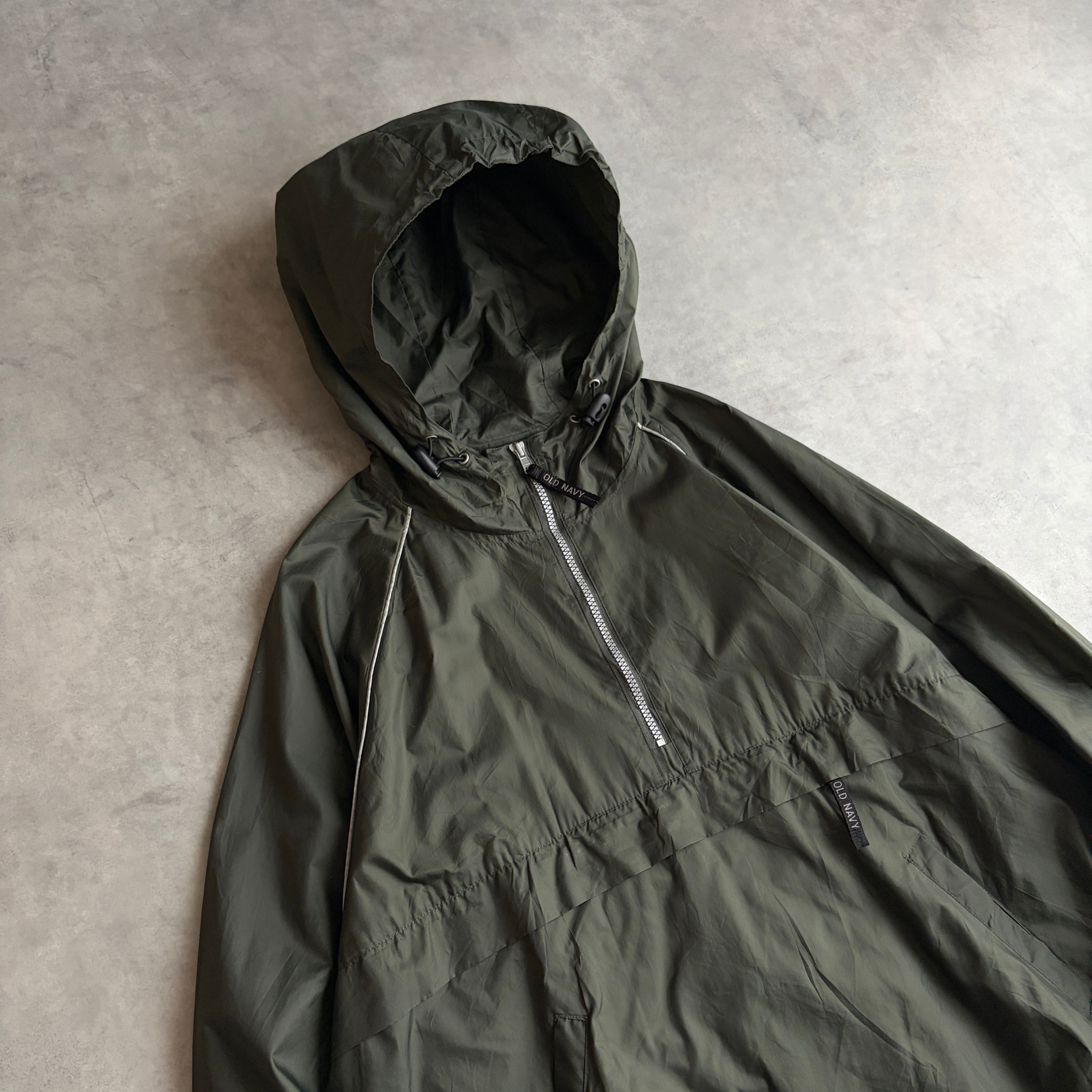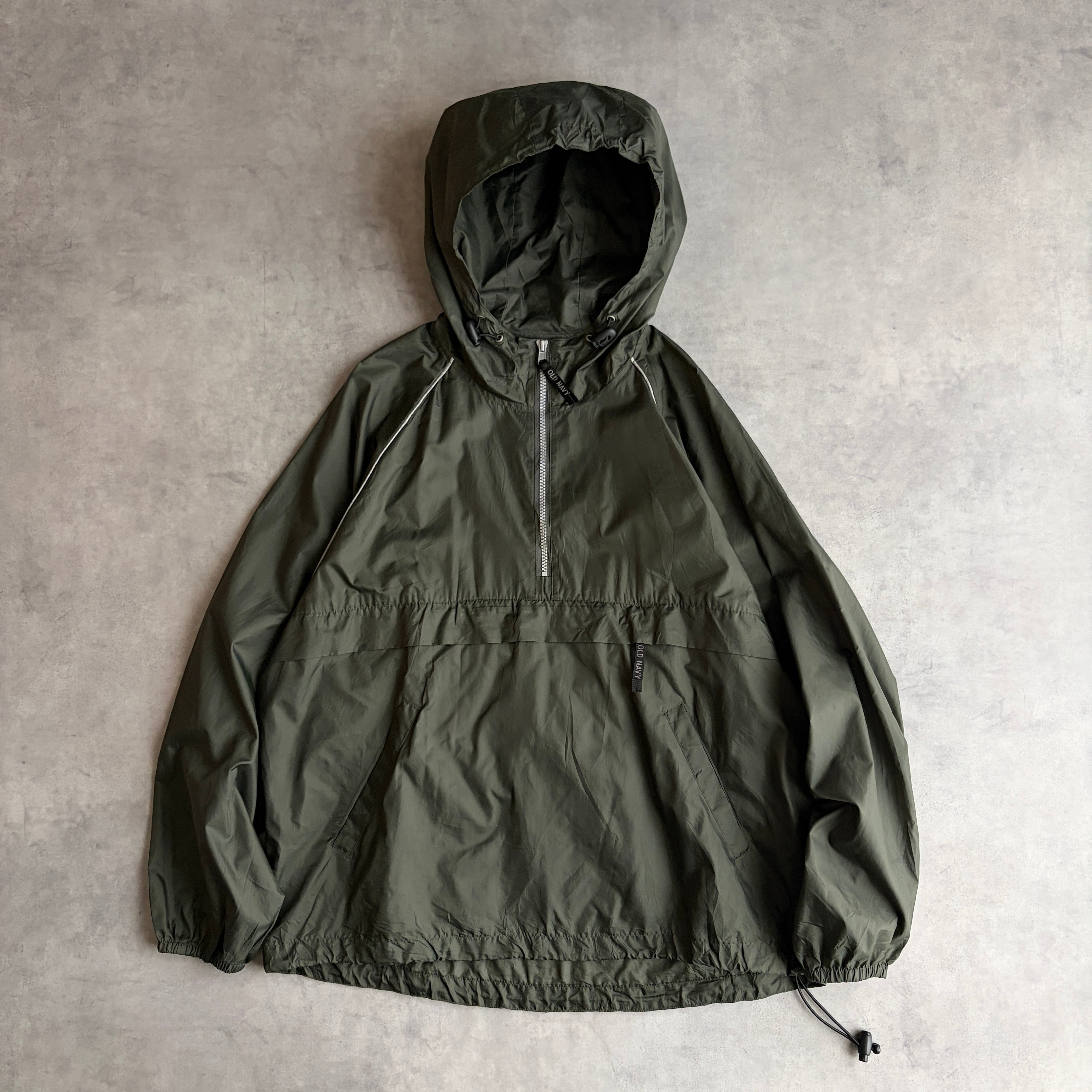90s〜00s/OLD NAVY/アノラックパーカー/パッカブル/プルオーバー/ハーフジップ/カンガルーポケット/収納/グリーン