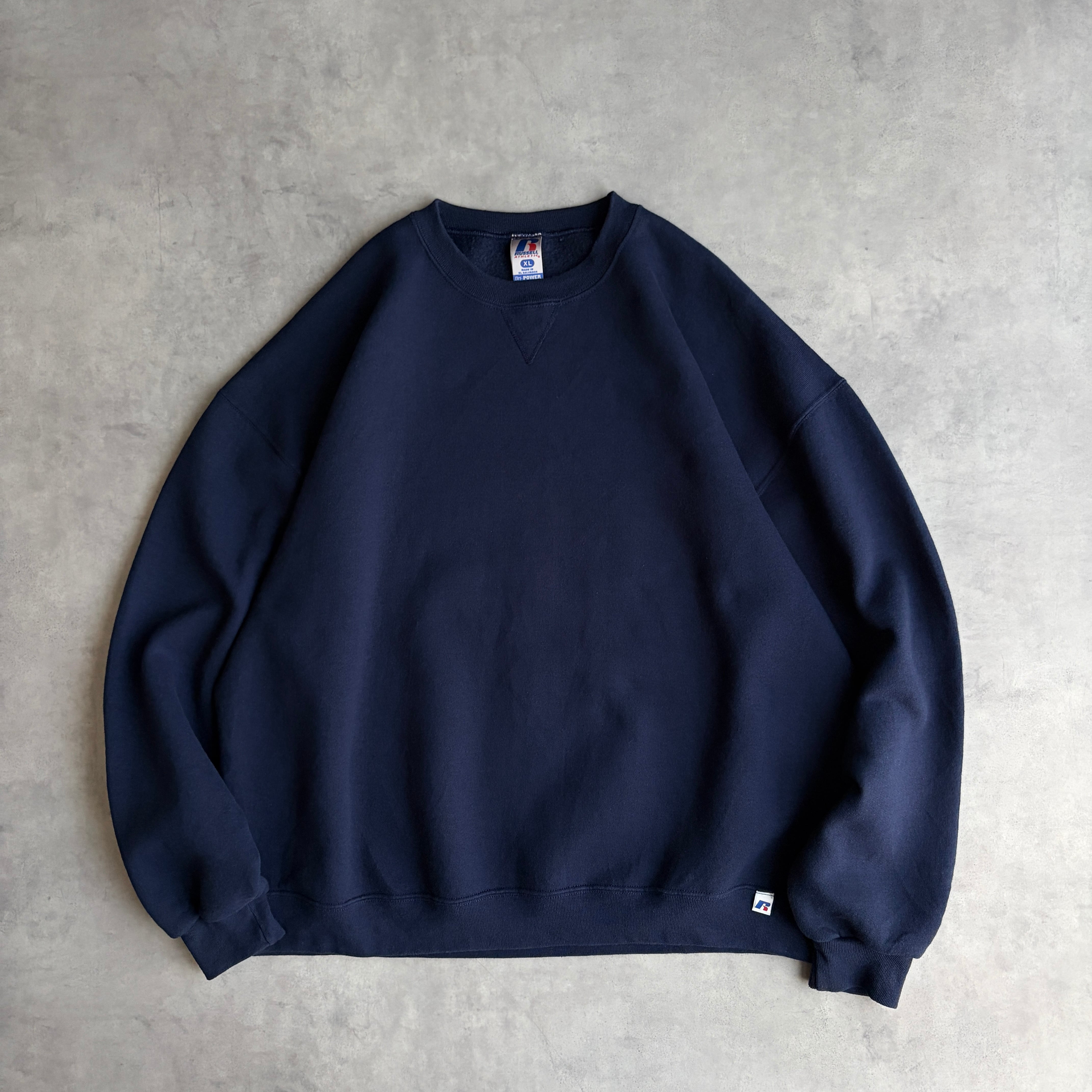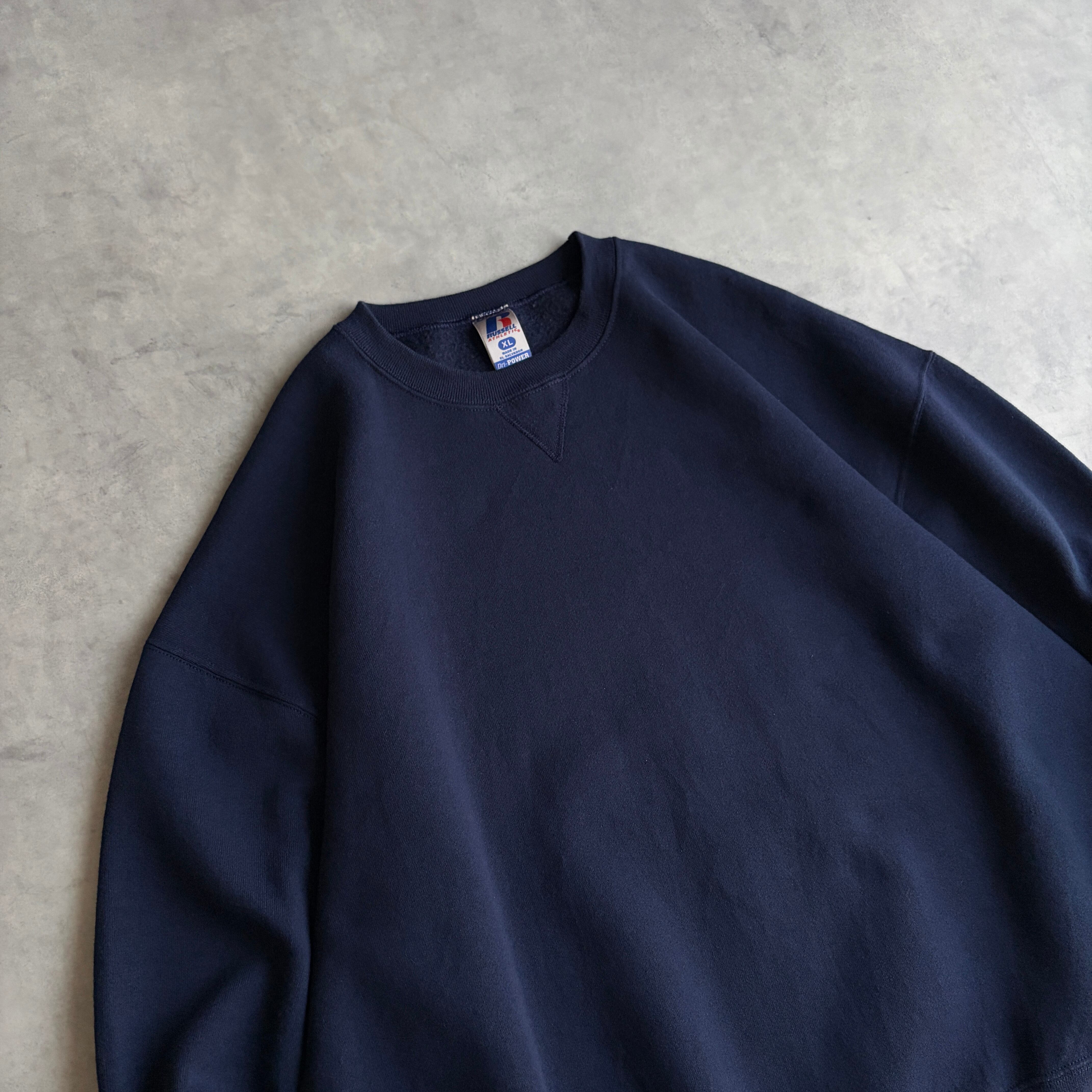 00s/RUSSELL ATHLETIC/ラッセルアスレチック/無地スウェット/前Vガゼット/ロゴタブ/ノームコア/ソリッド/プレーン/ブランク/ネイビー