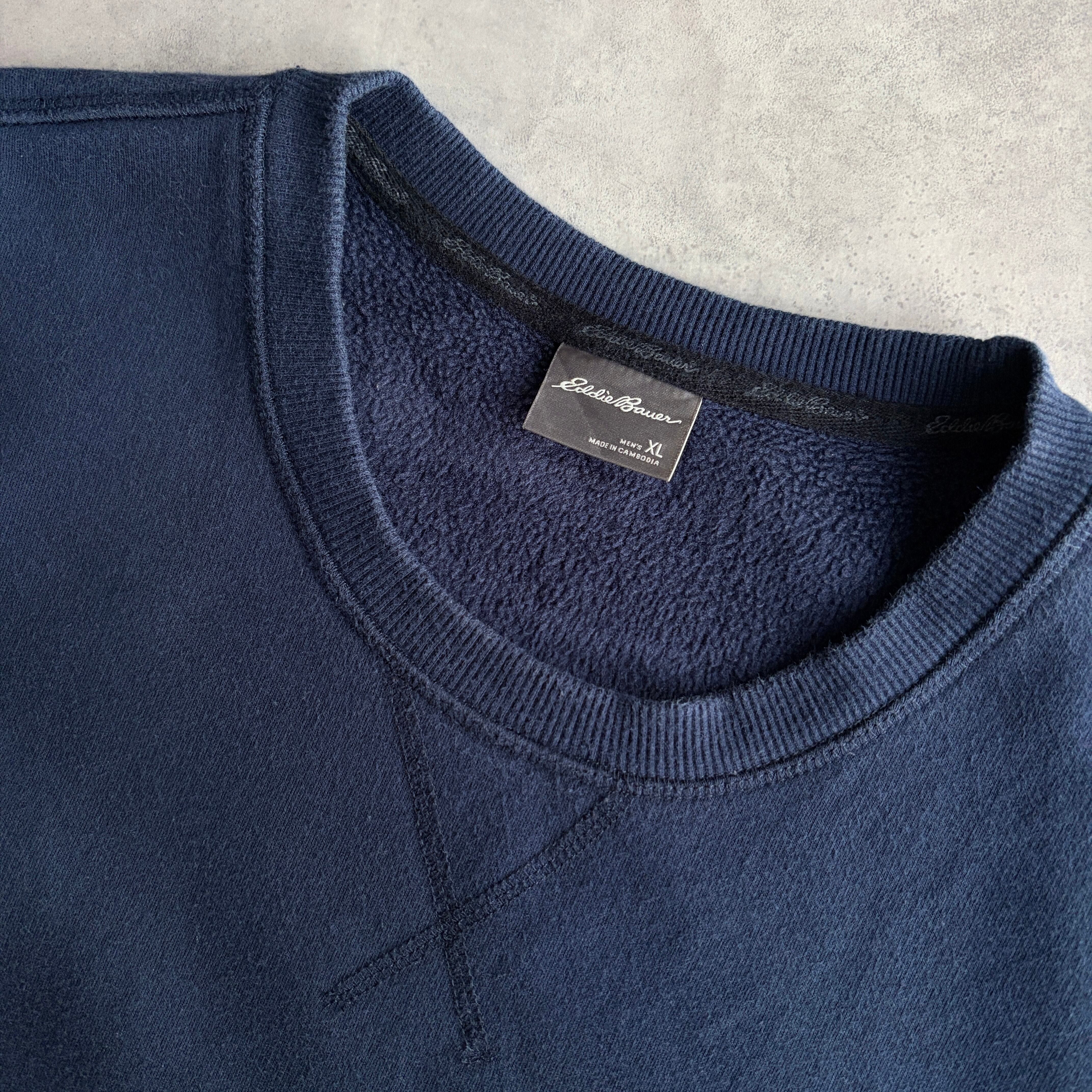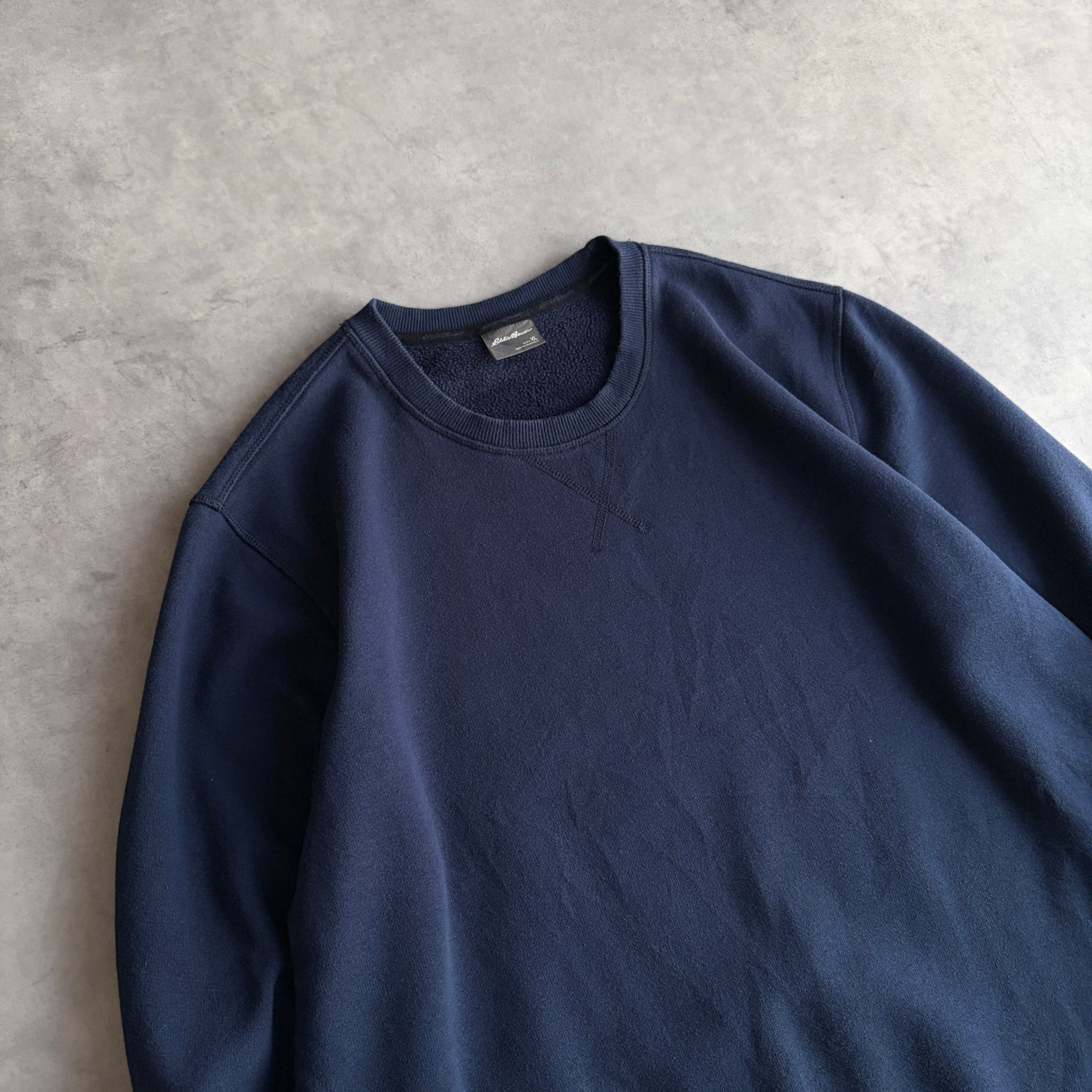 Eddie Bauer/エディーバウアー/無地スウェット/裏起毛/裏フリース/ロゴタブ/前Vガゼット/ソリッド/プレーン/ブランク/ノームコア/ネイビー/紺/M