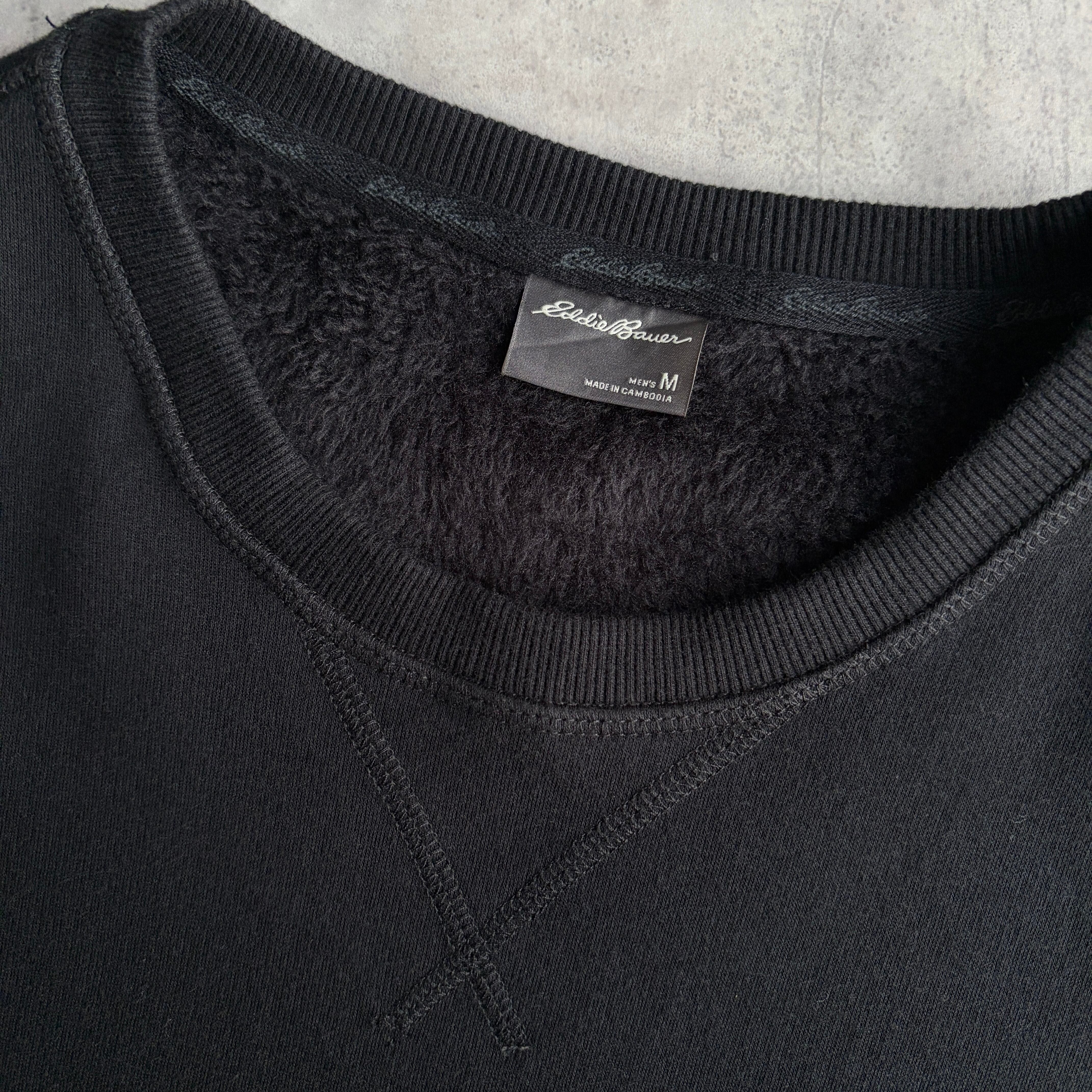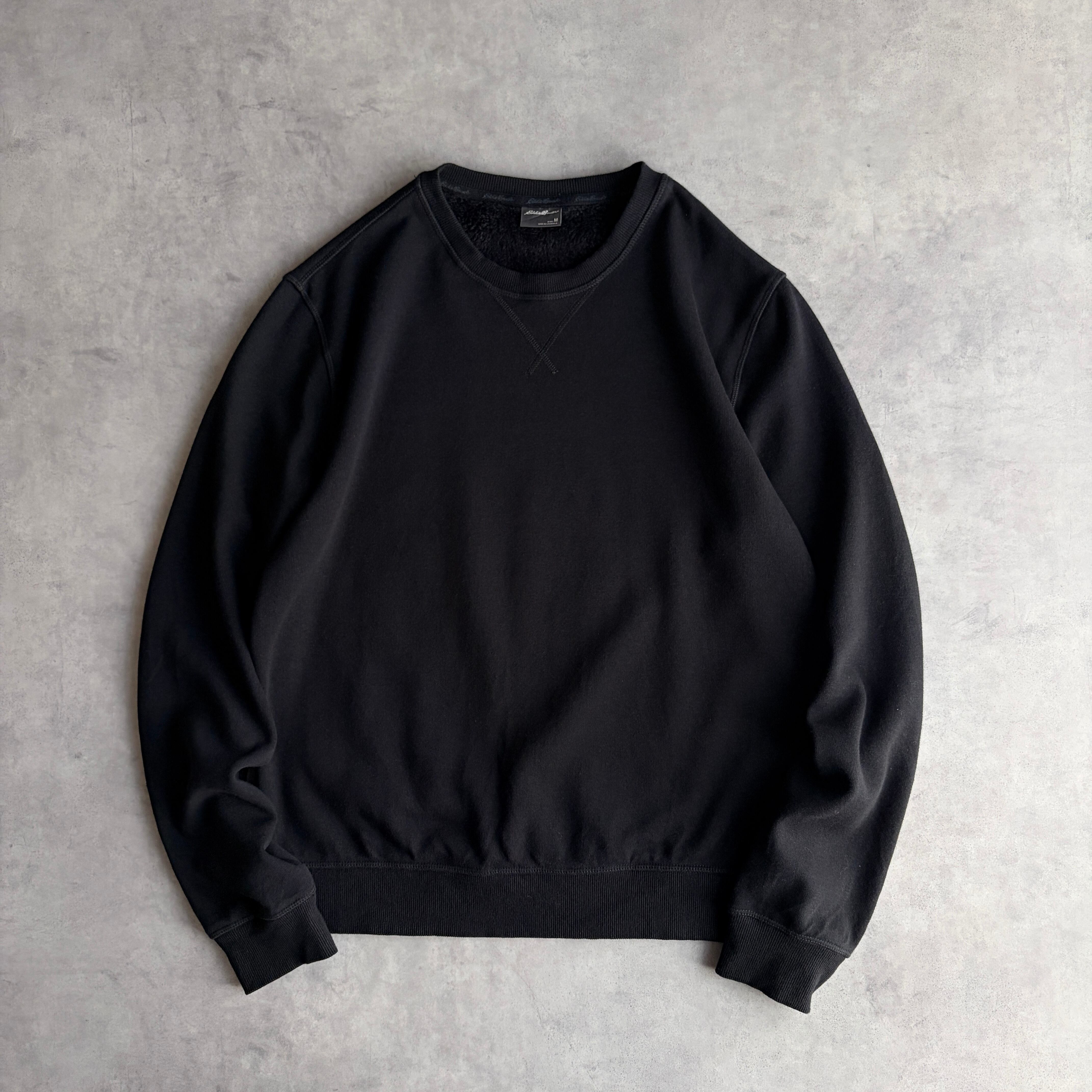 Eddie Bauer/エディーバウアー/無地スウェット/裏起毛/裏フリース/ロゴタブ/前Vガゼット/ソリッド/プレーン/ブランク/ノームコア/ブラック/黒