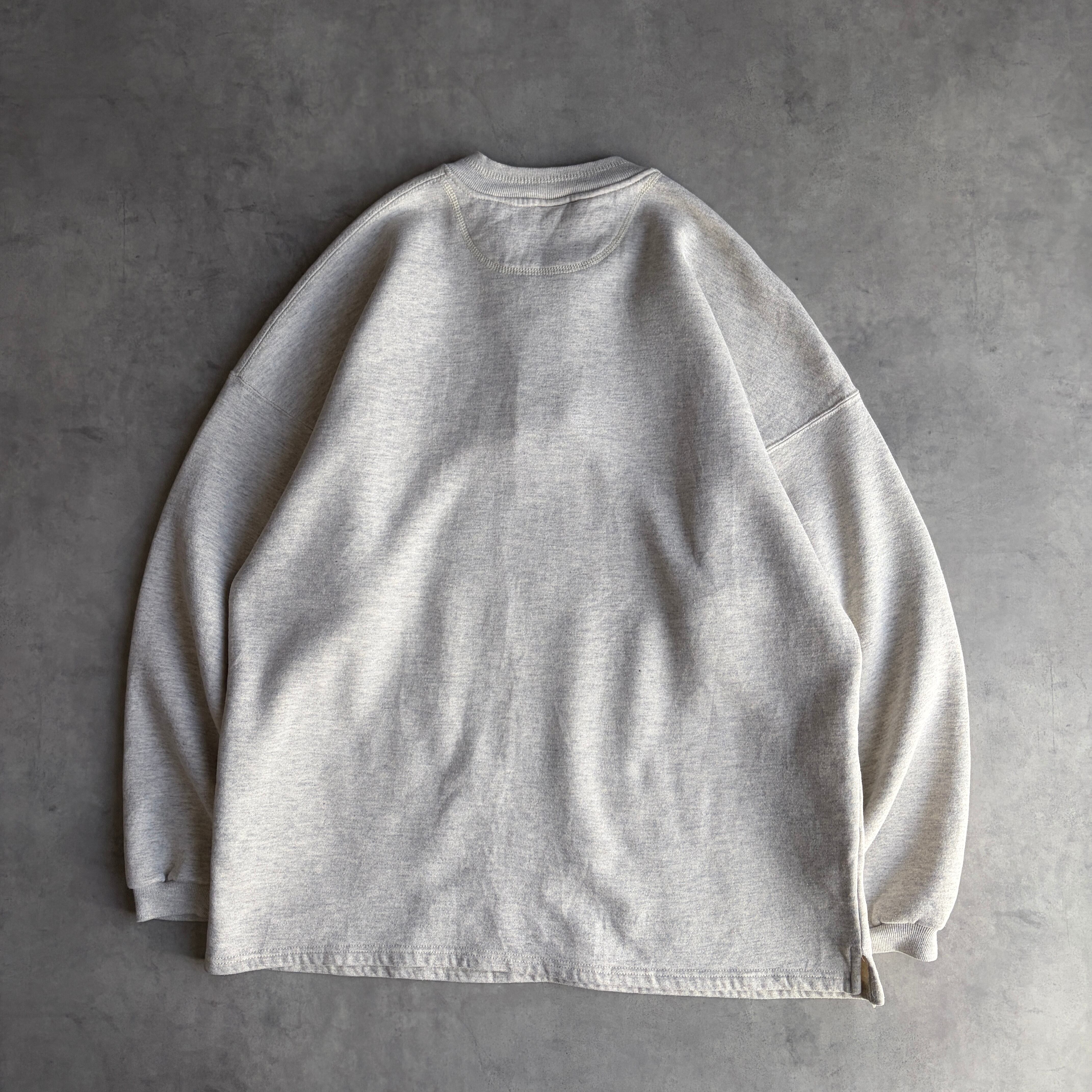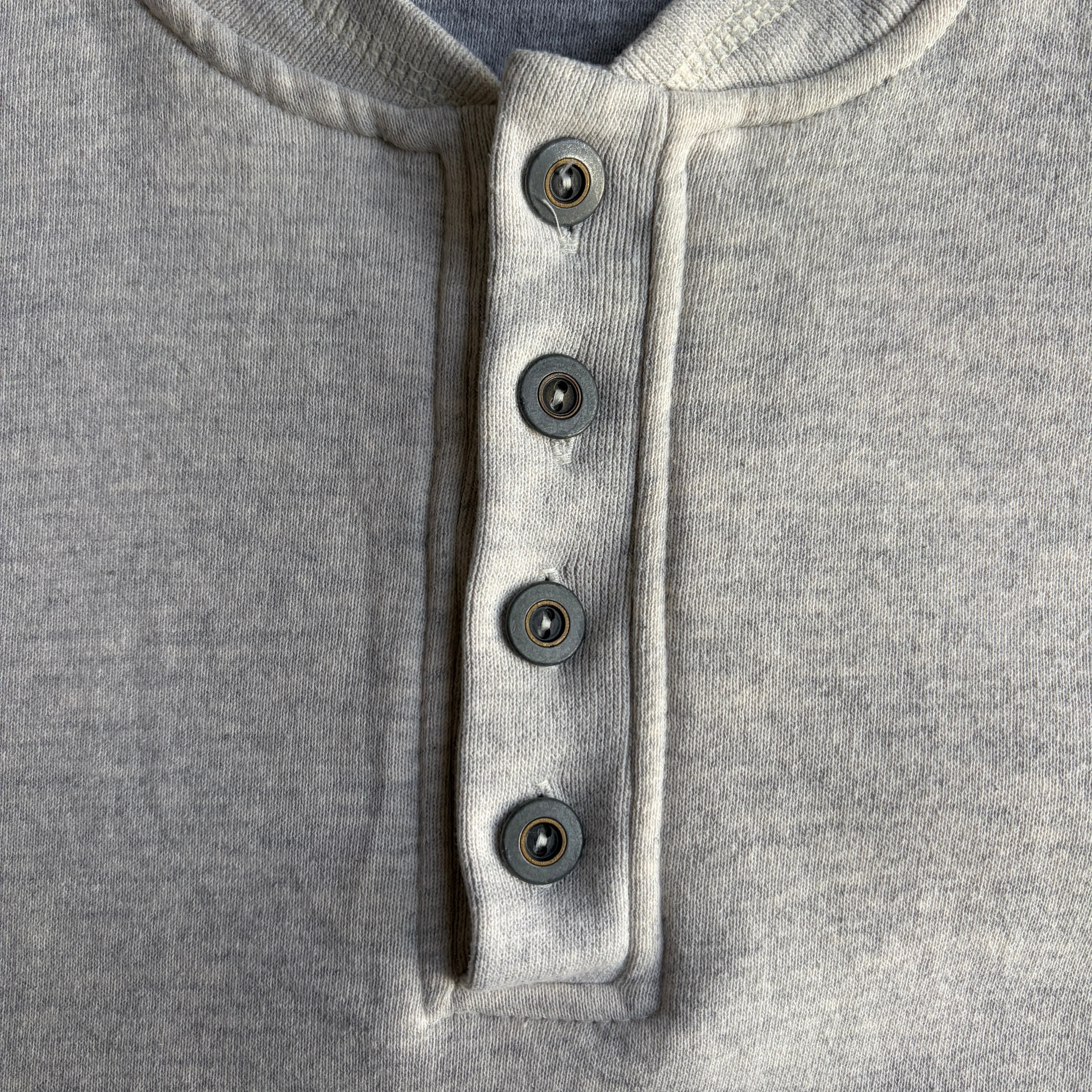 メタルボタンを使用したヘンリーネック仕様でシンプルなプレーンスウェットとはまた違ったアイテム。