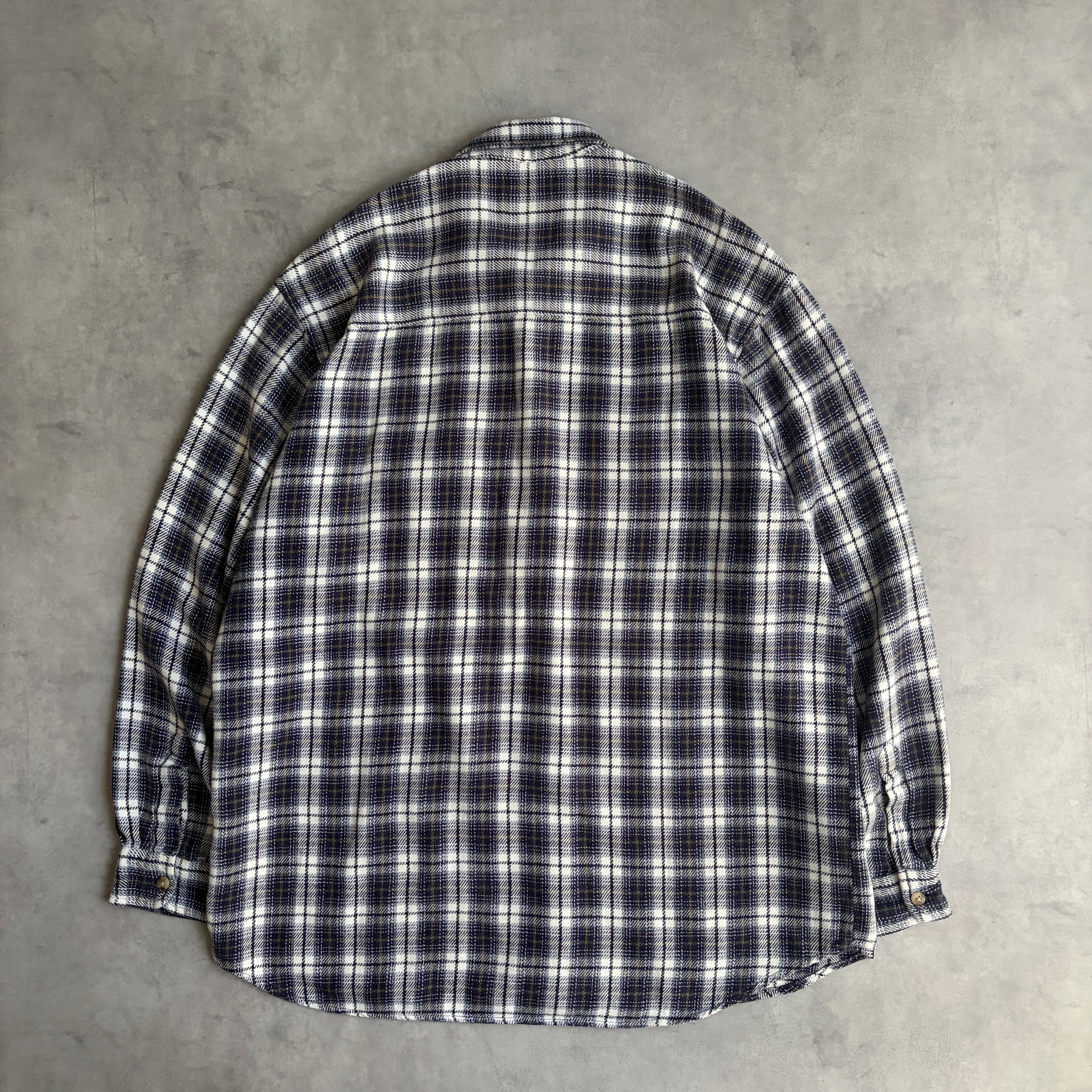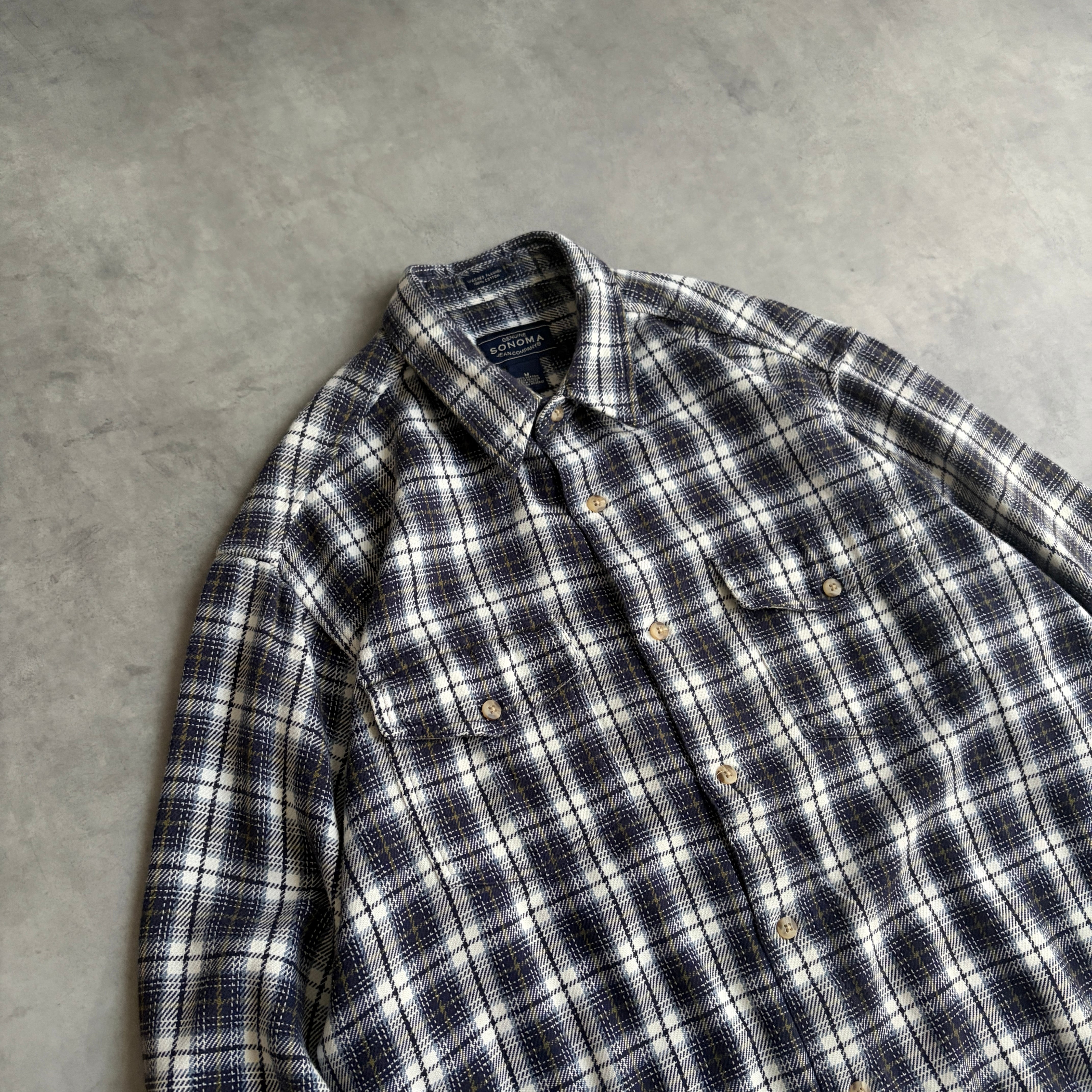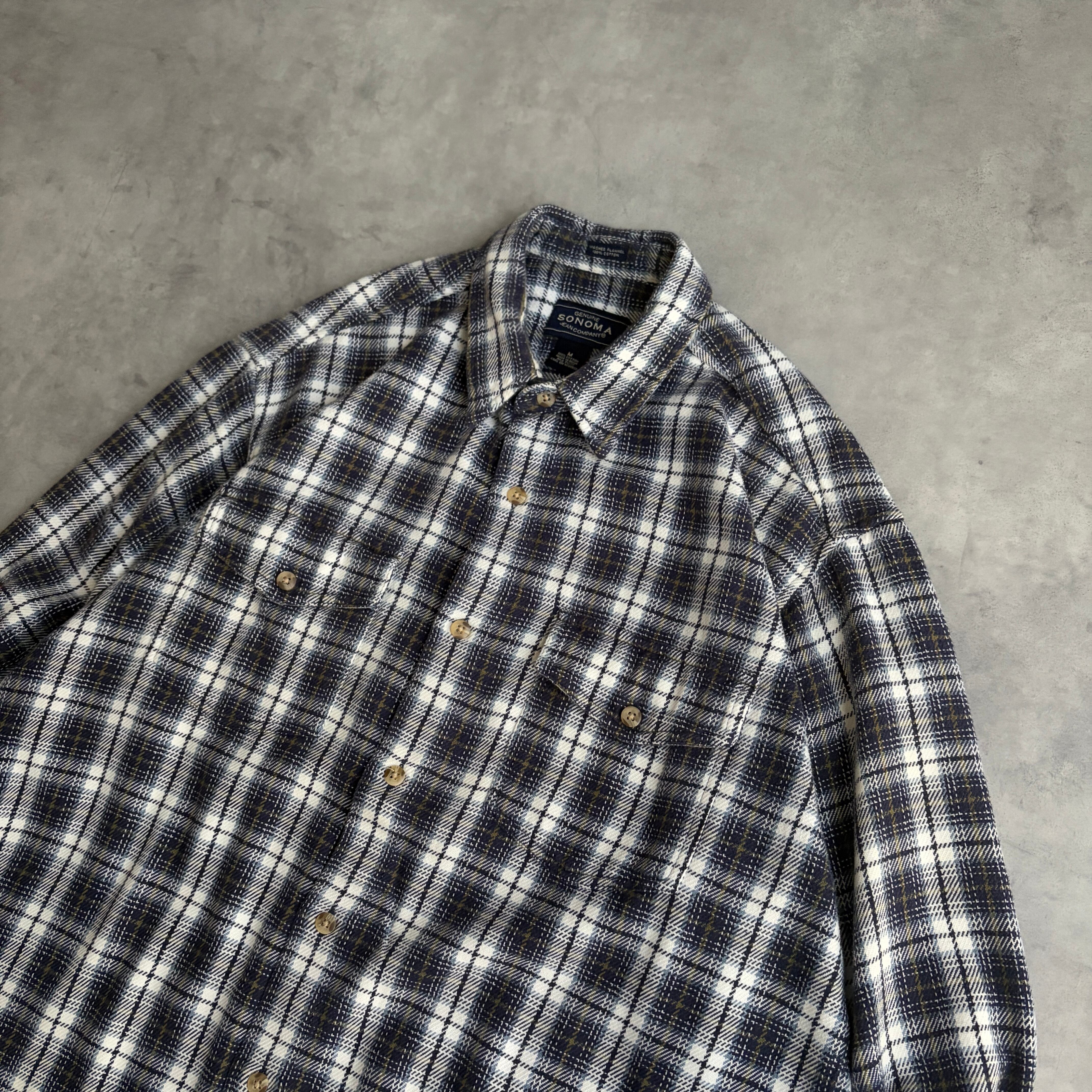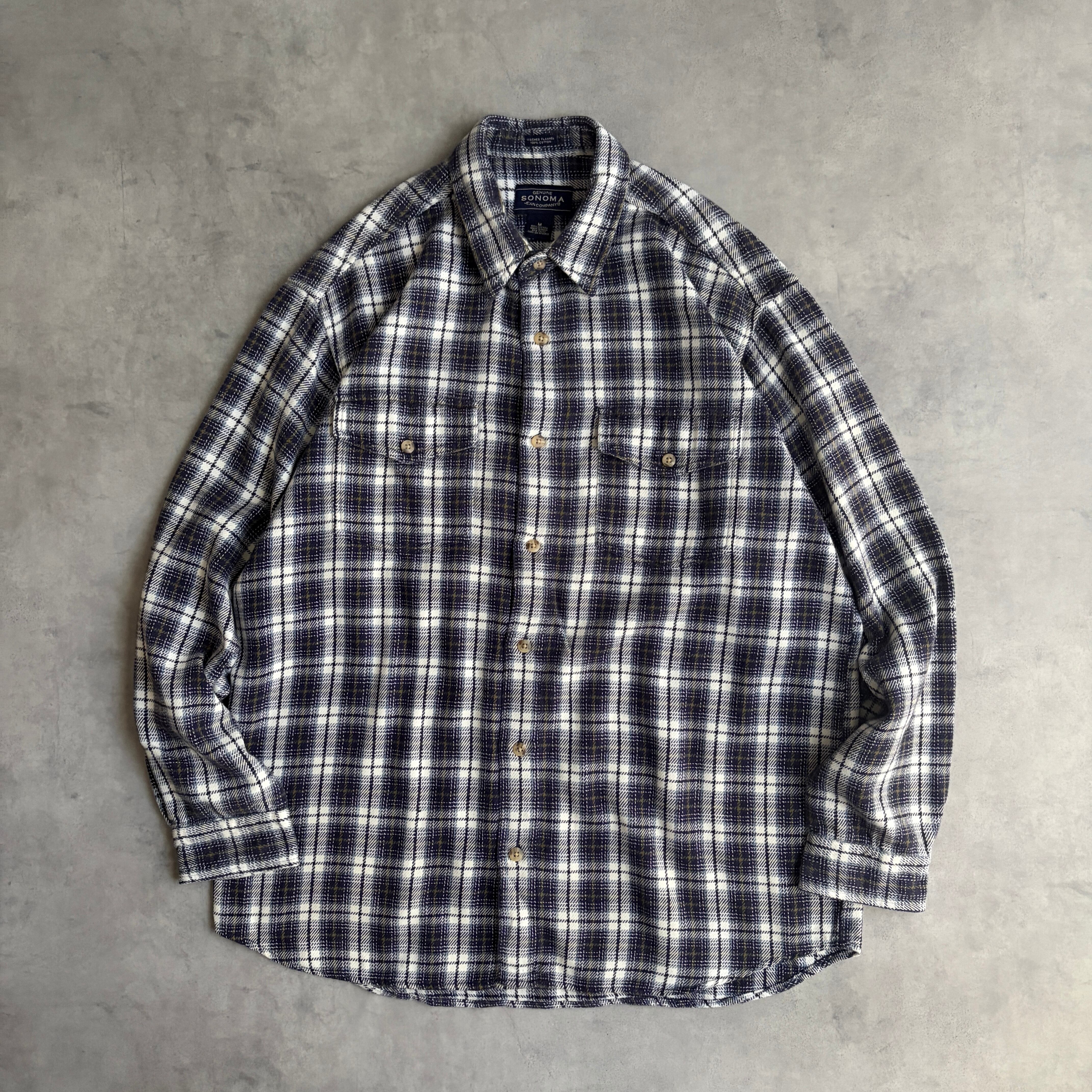 00s/SONOMA/長袖シャツ/フランネル生地/オンブレチェック/フラップポケット/格子柄/ネイビー/M