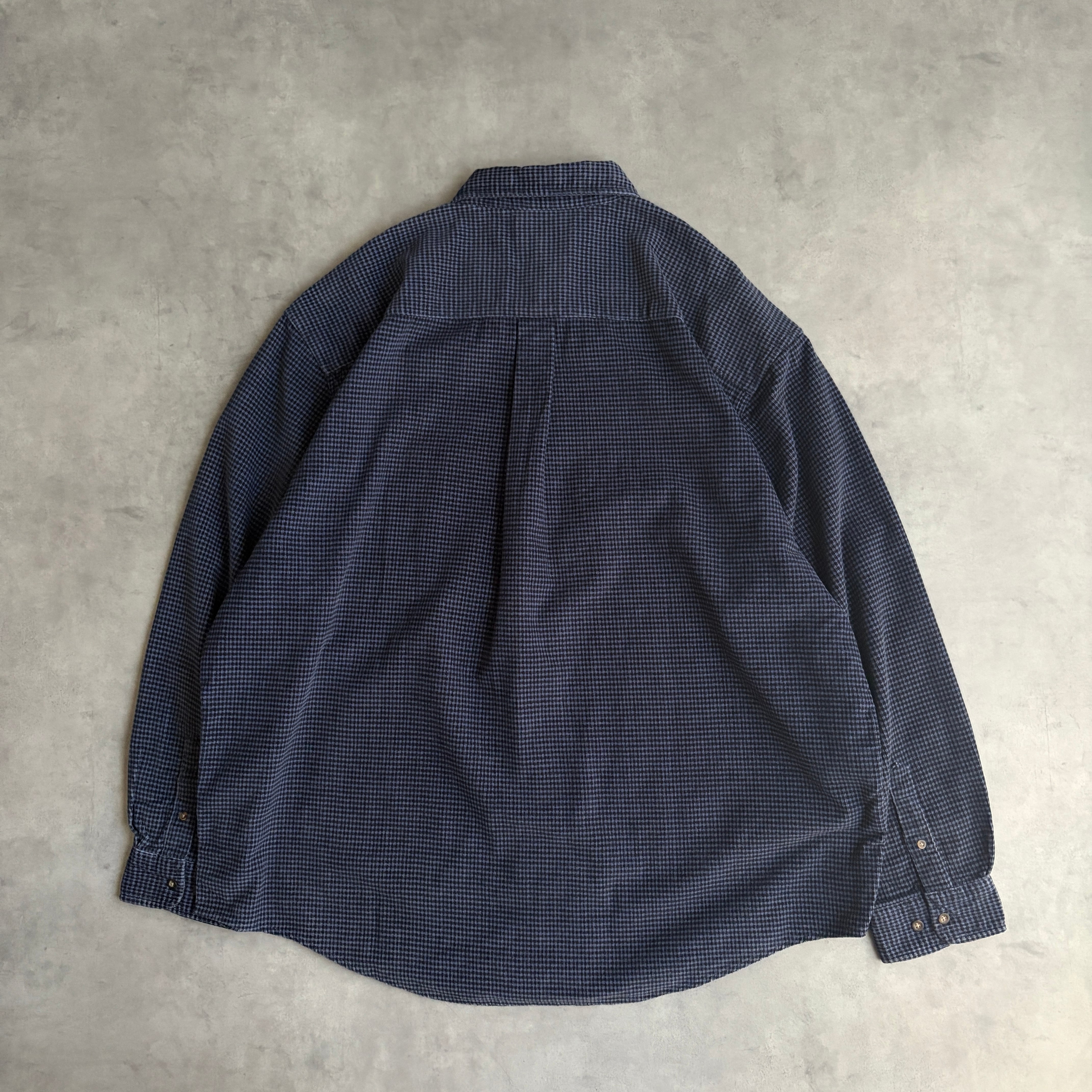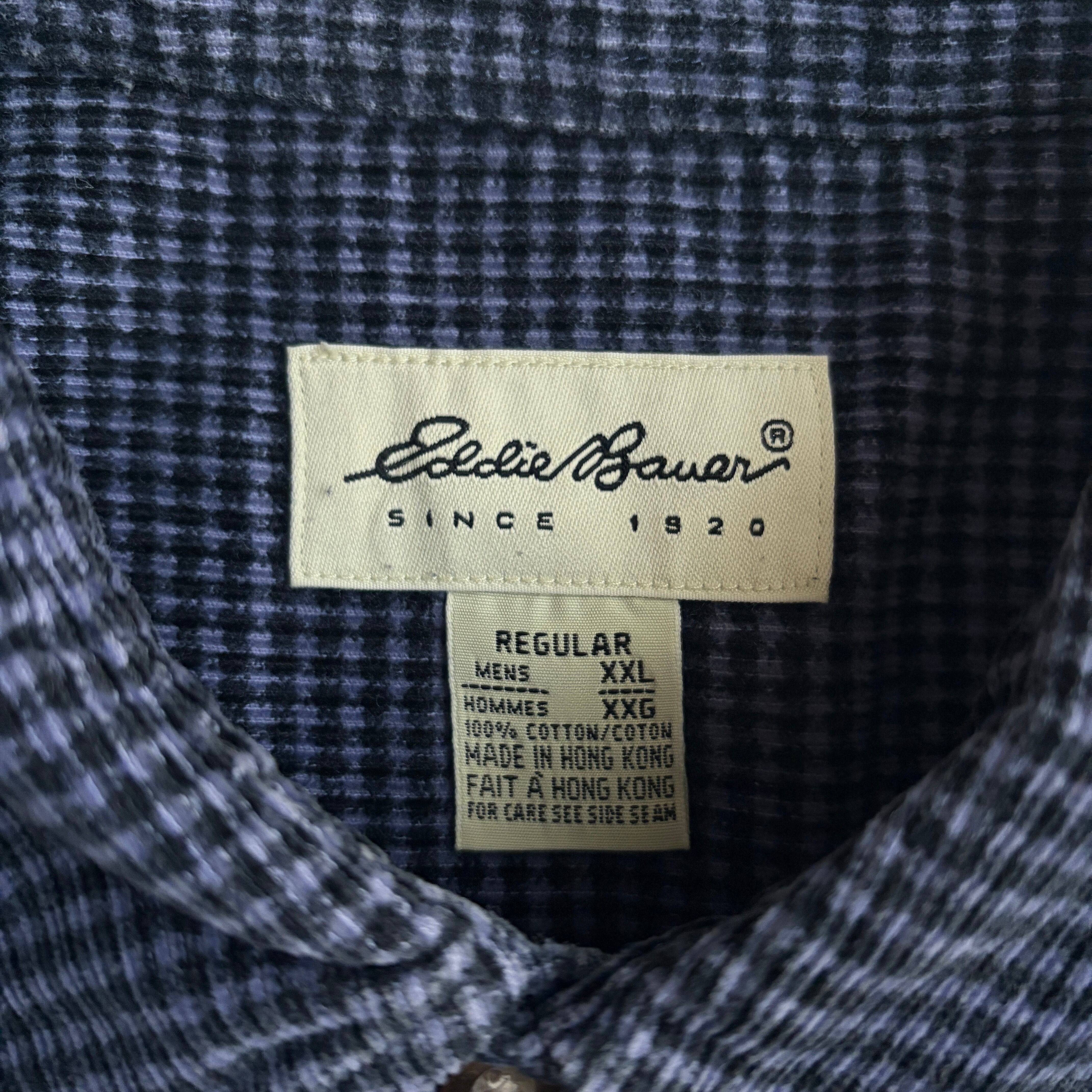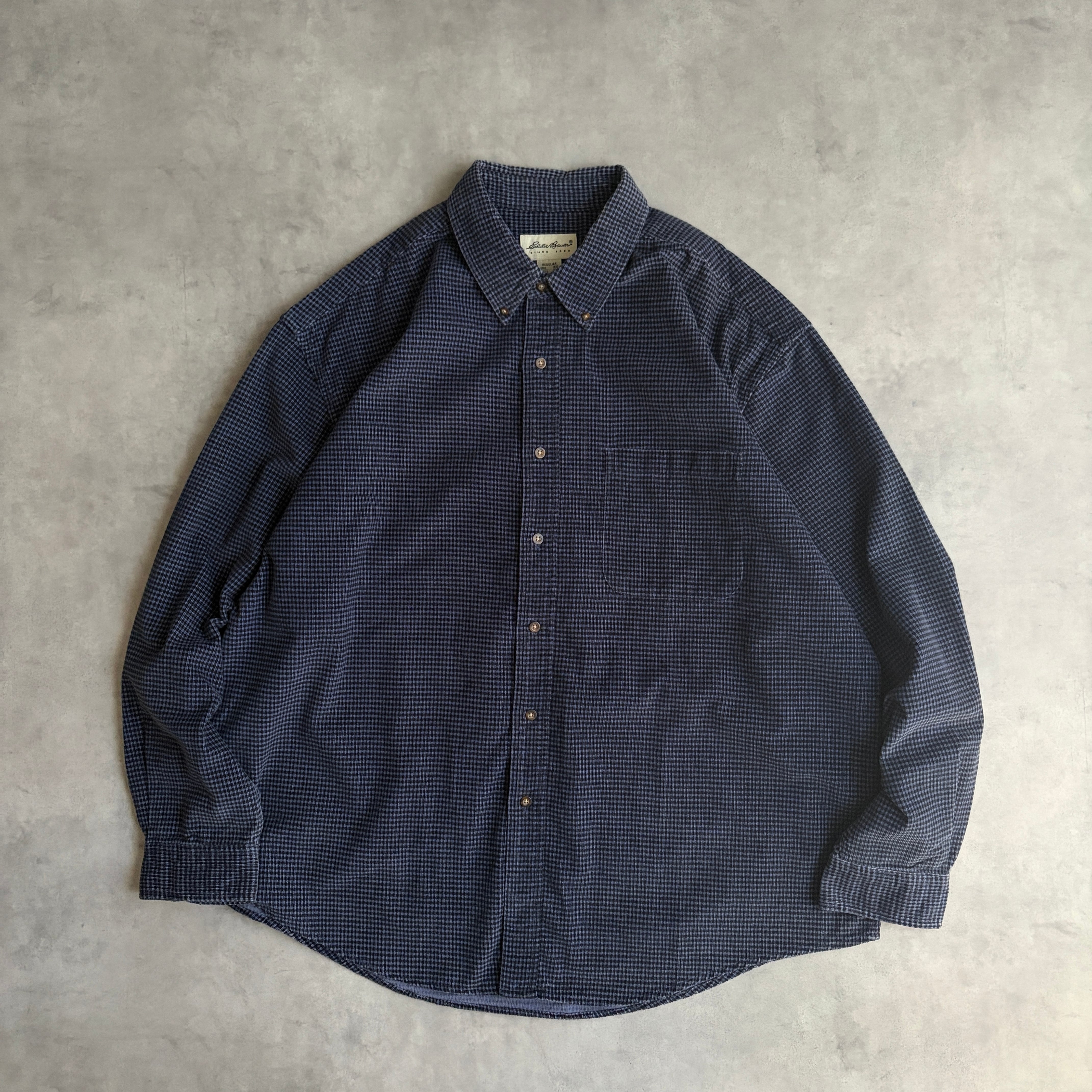 90s/Eddie Bauer/エディーバウアー/長袖シャツ/BD/ボタンダウン/コーデュロイ/コーズ/ギンガムチェックシャツ/小格子柄/細畝/香港製/XXL/ネイビー×ブラック/紺×黒
