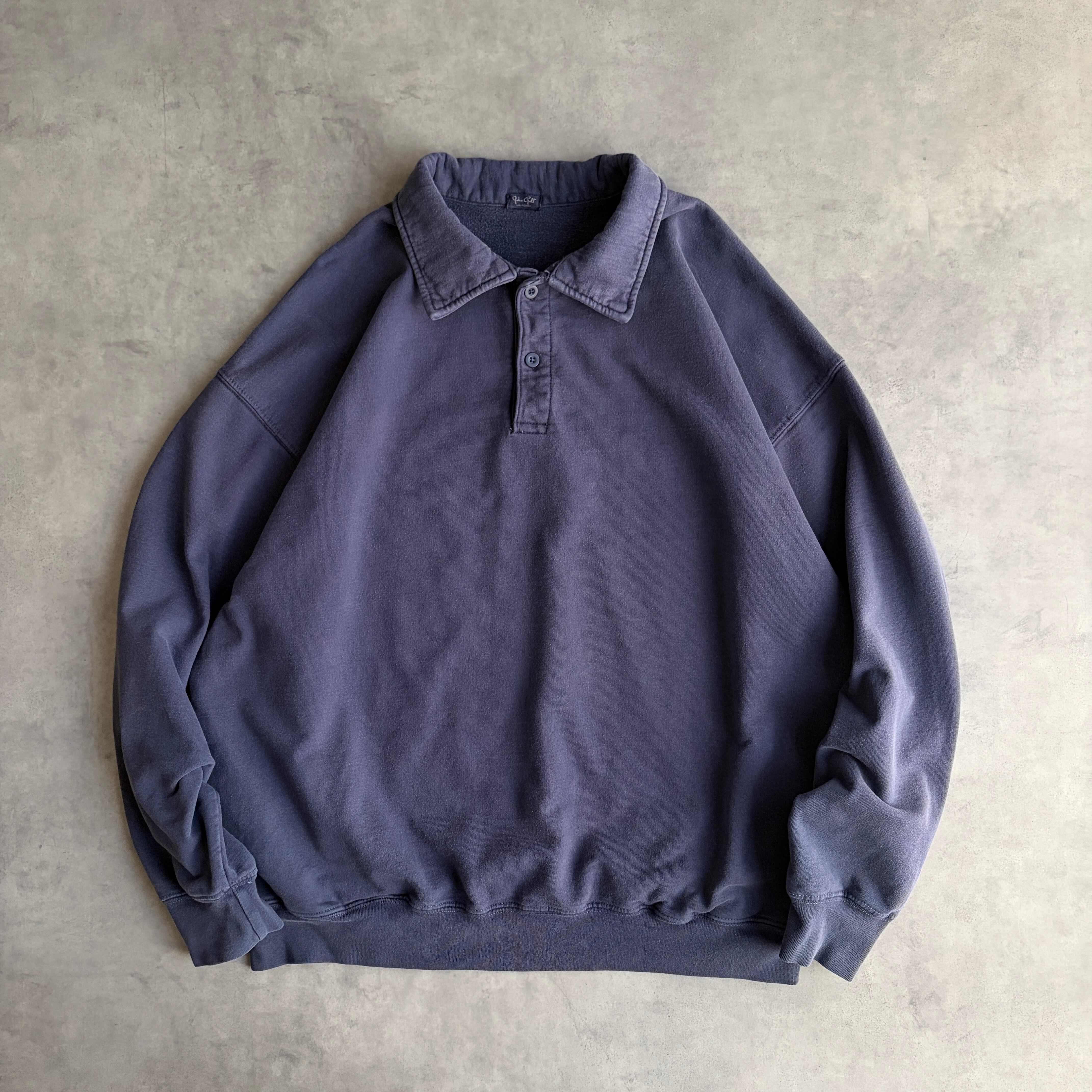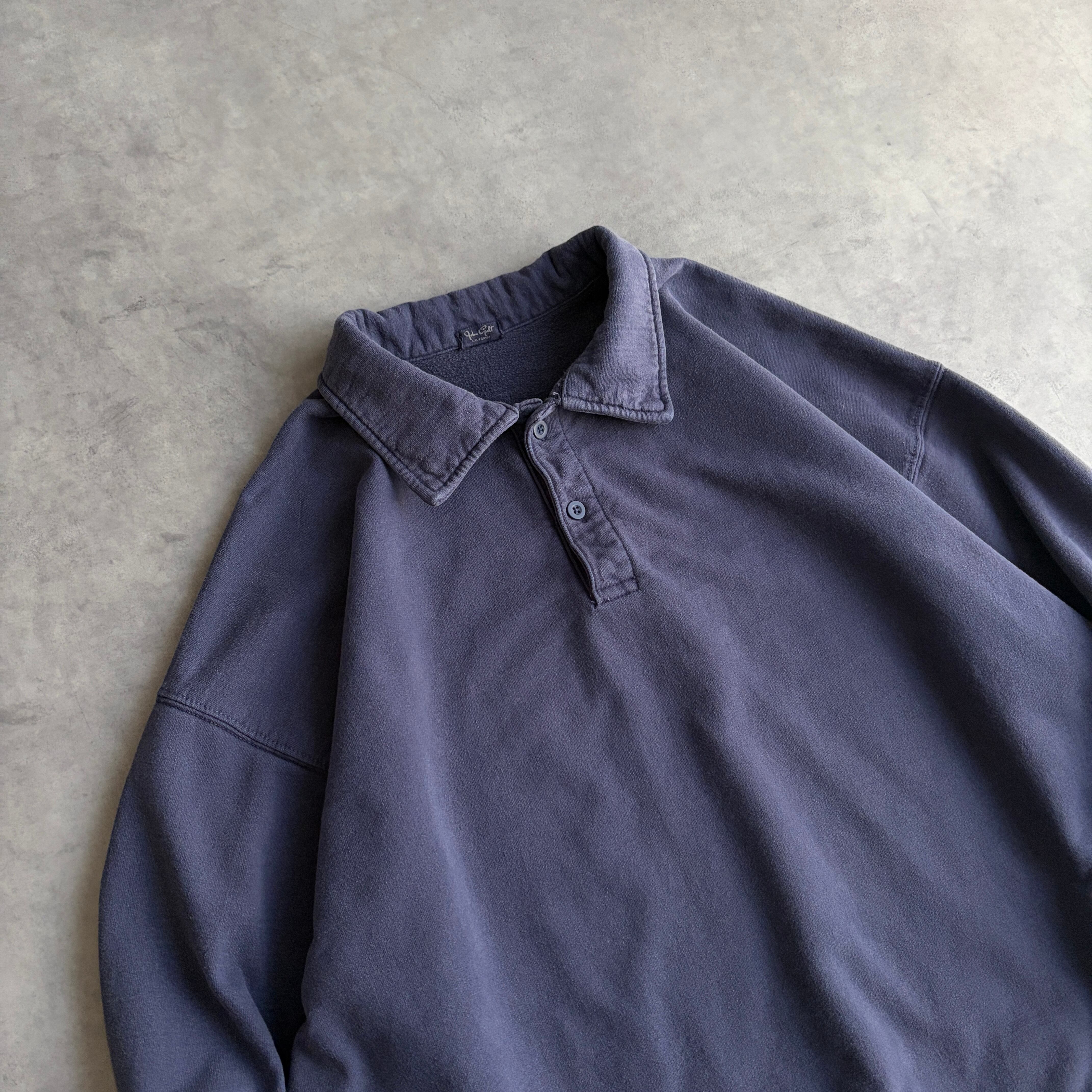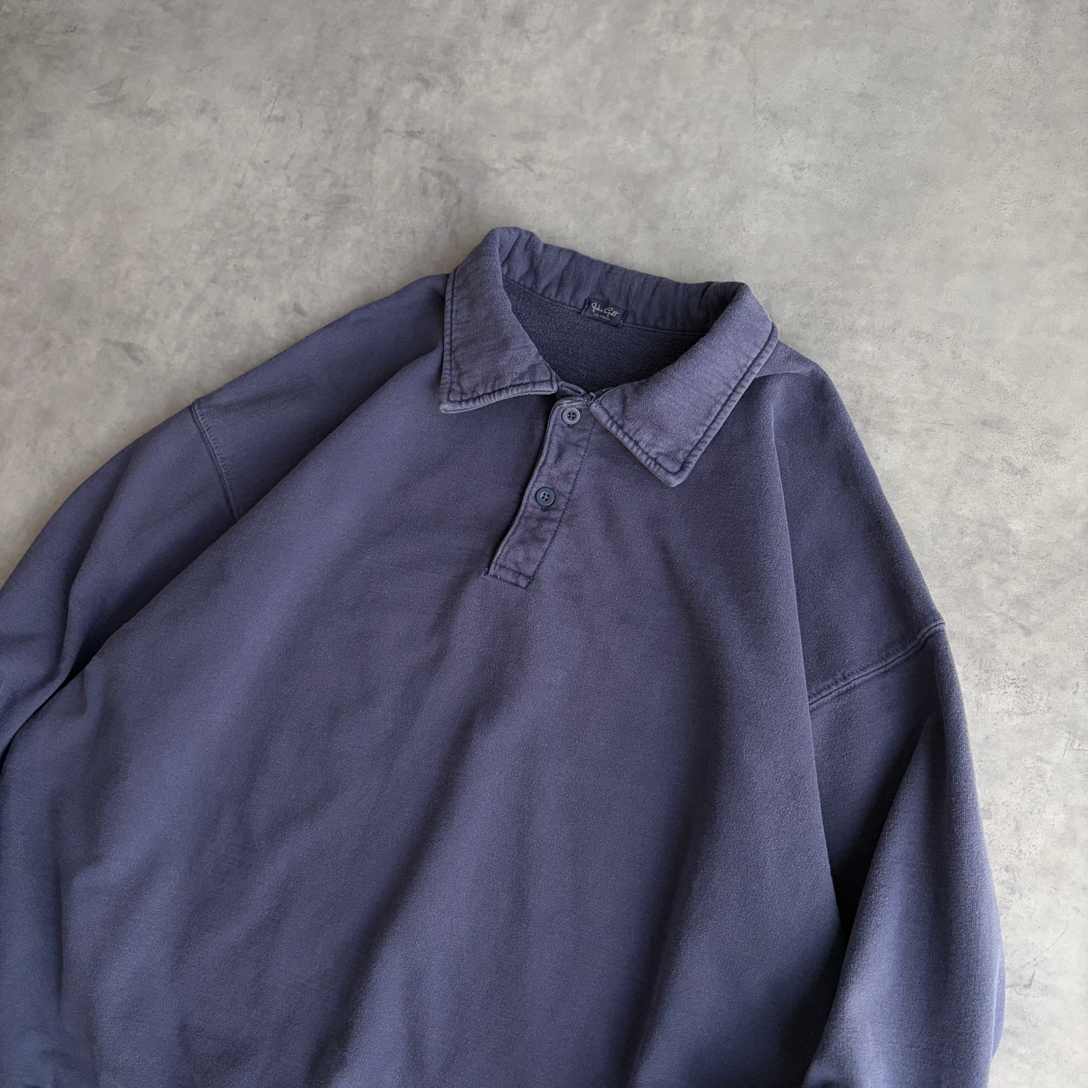 00s/John Galt/ポロスウェット/襟付き/無地/ソリッド/ノームコア/プレーン/ブランク/ポケット付き/短丈/くすみネイビー