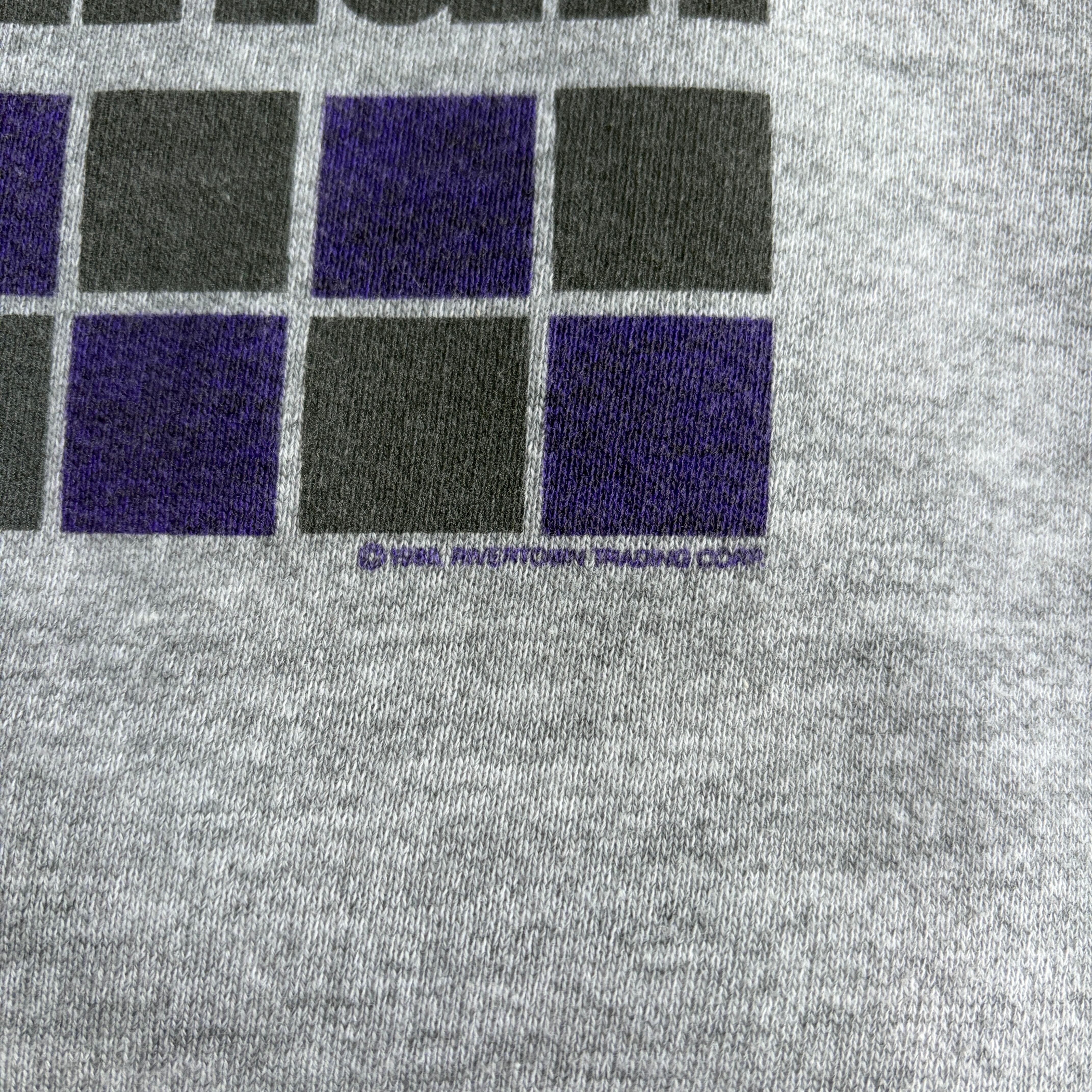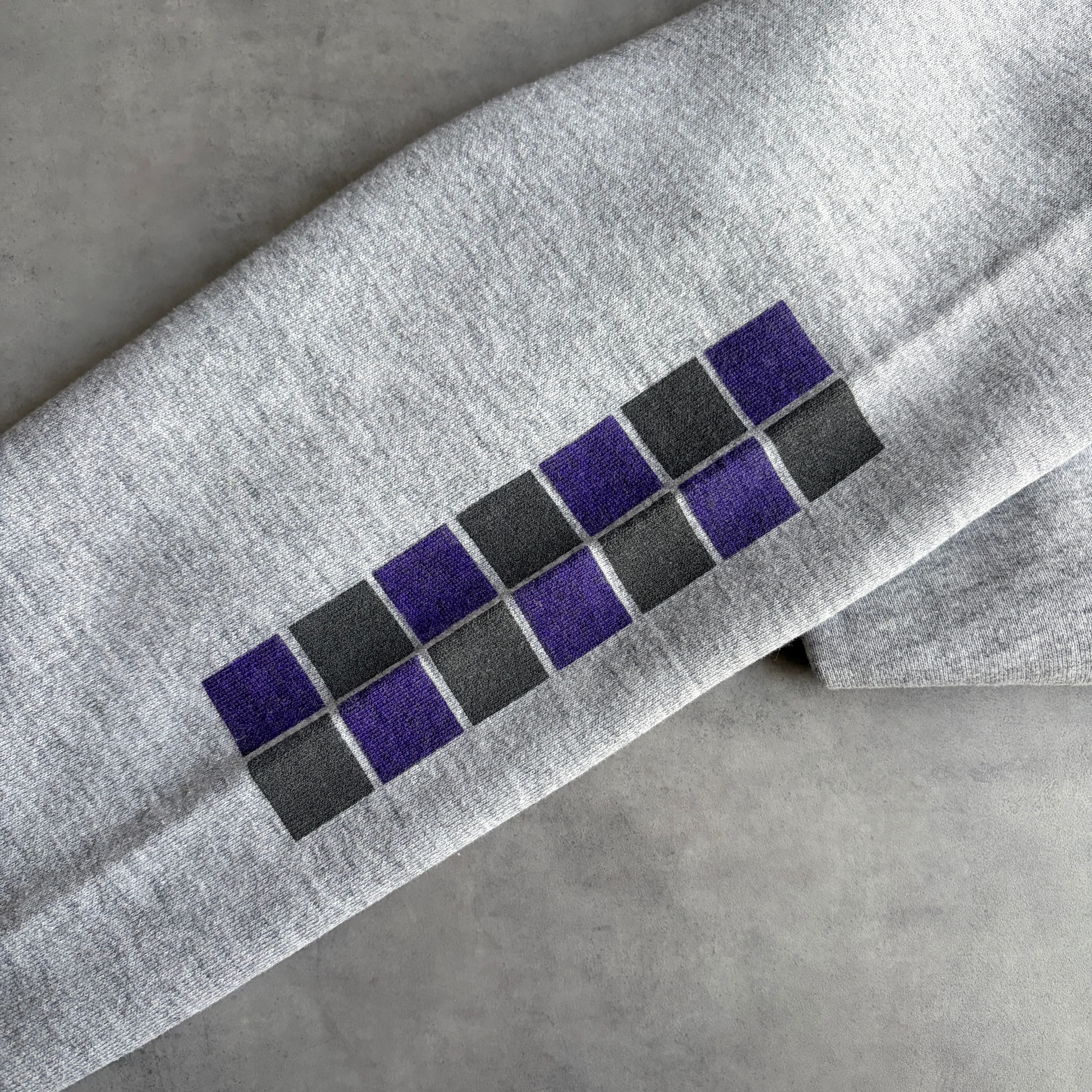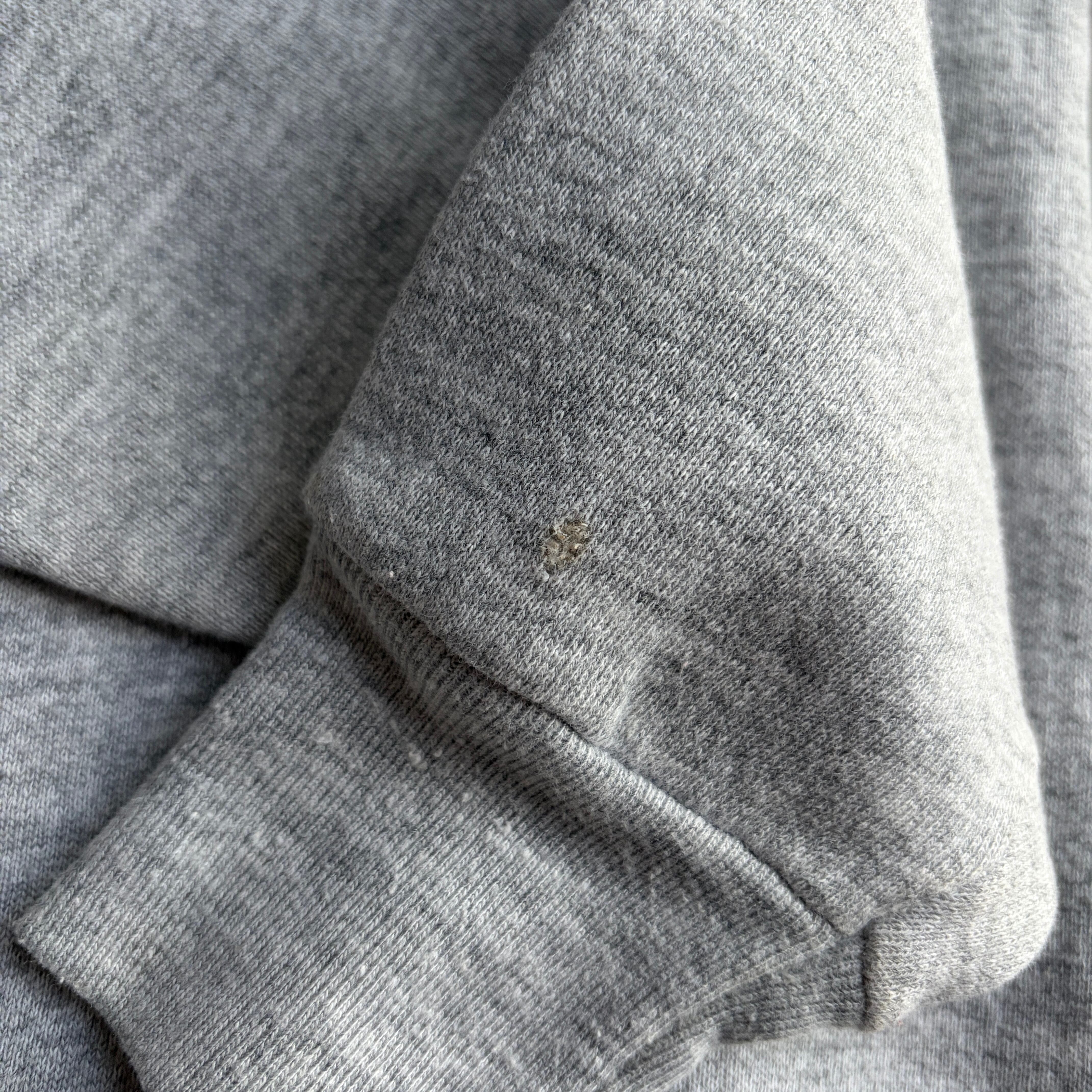 80s/FRUIT OF THE LOOM/フルーツオブザルーム/プリントスウェット/USA製/アメリカ製/ラグランスリーブ/メッセージ/グラフィック/袖プリント/ブラック柄/リフレクター/杢グレー