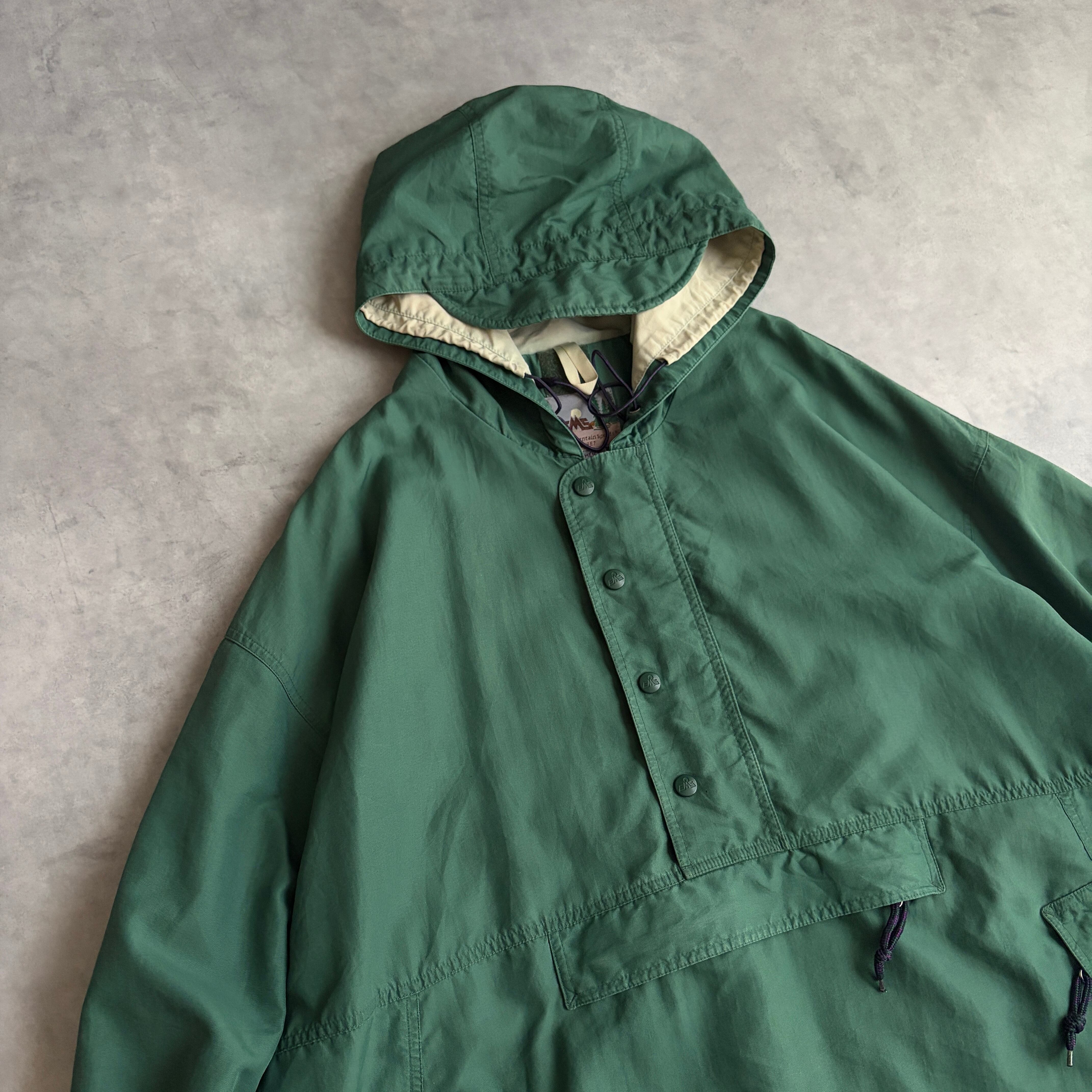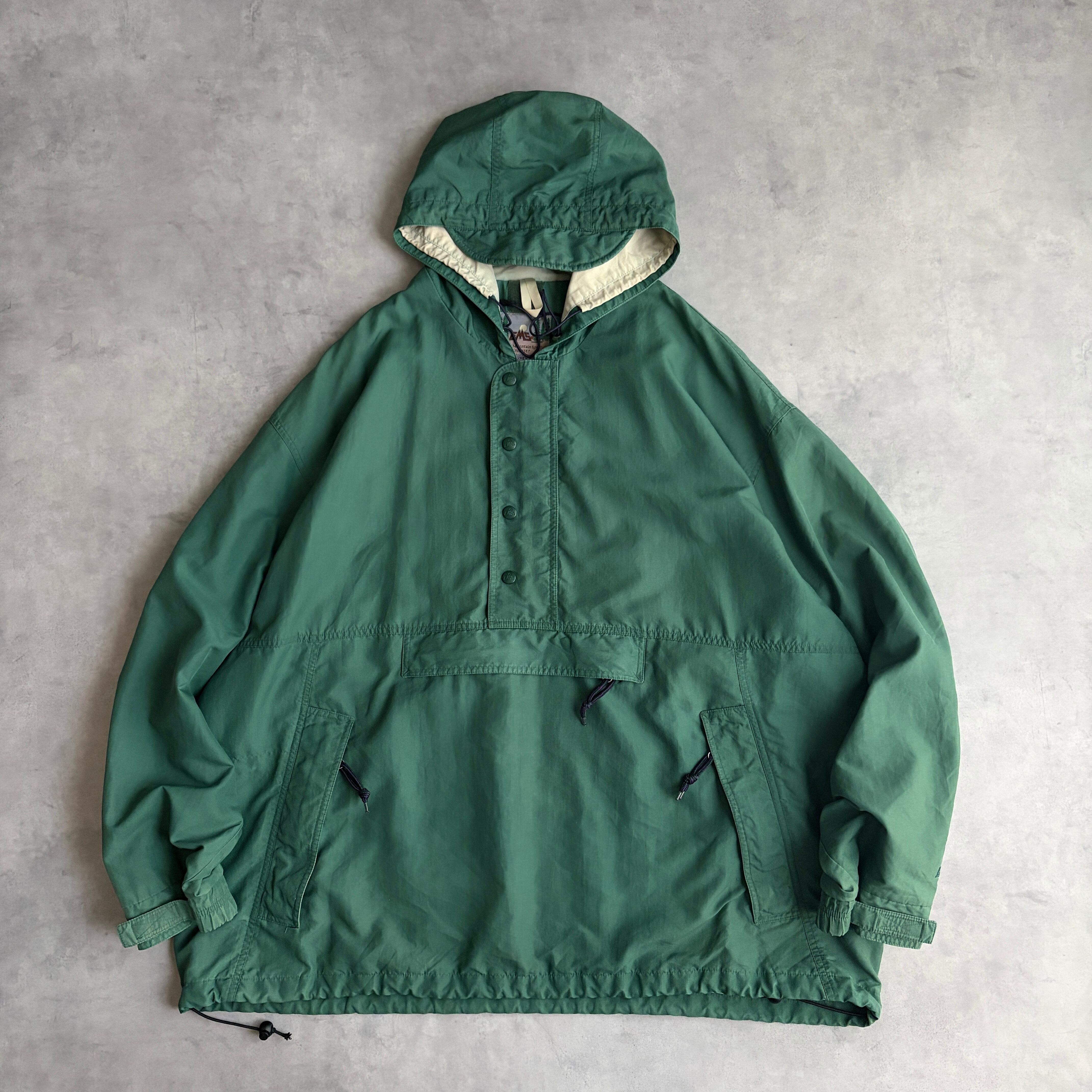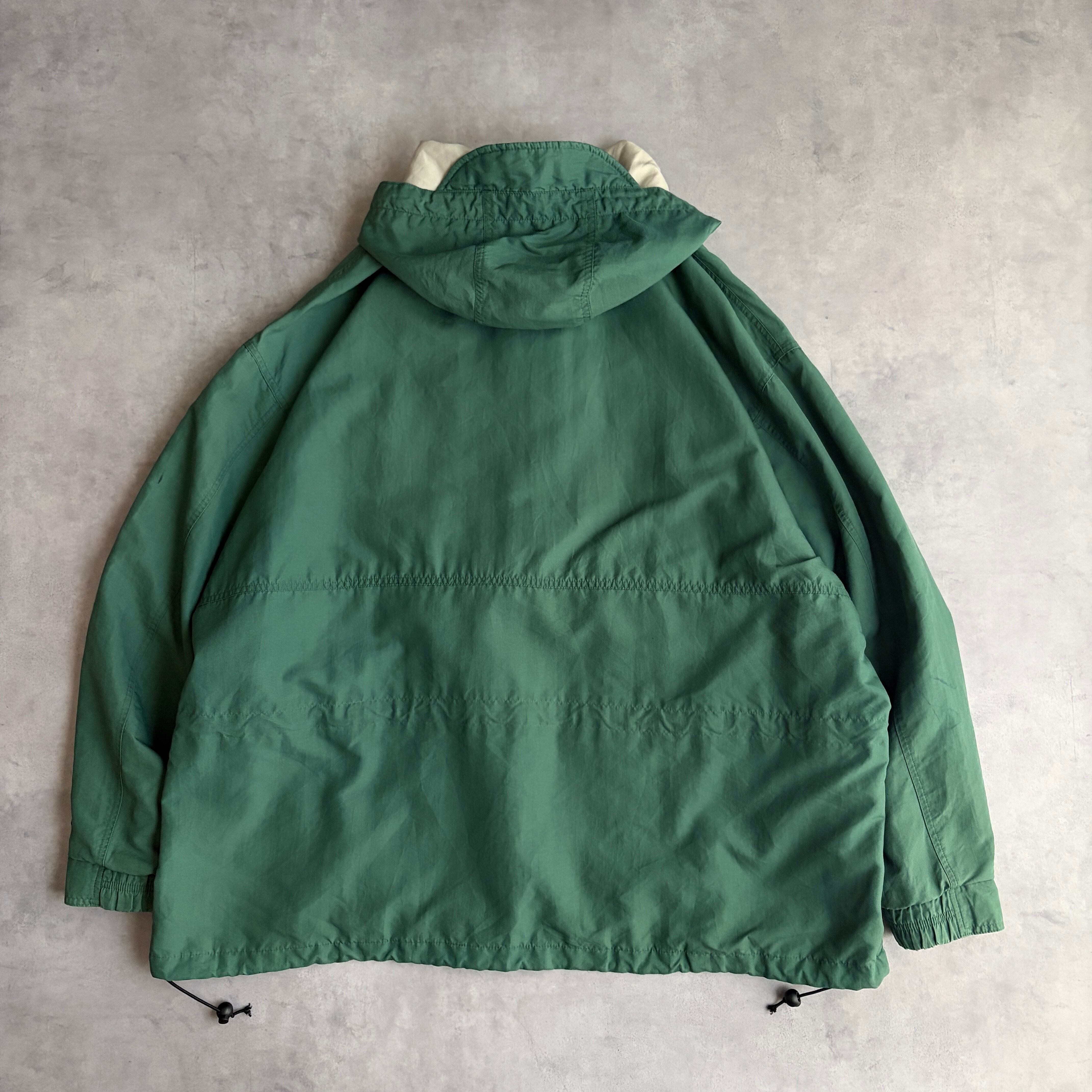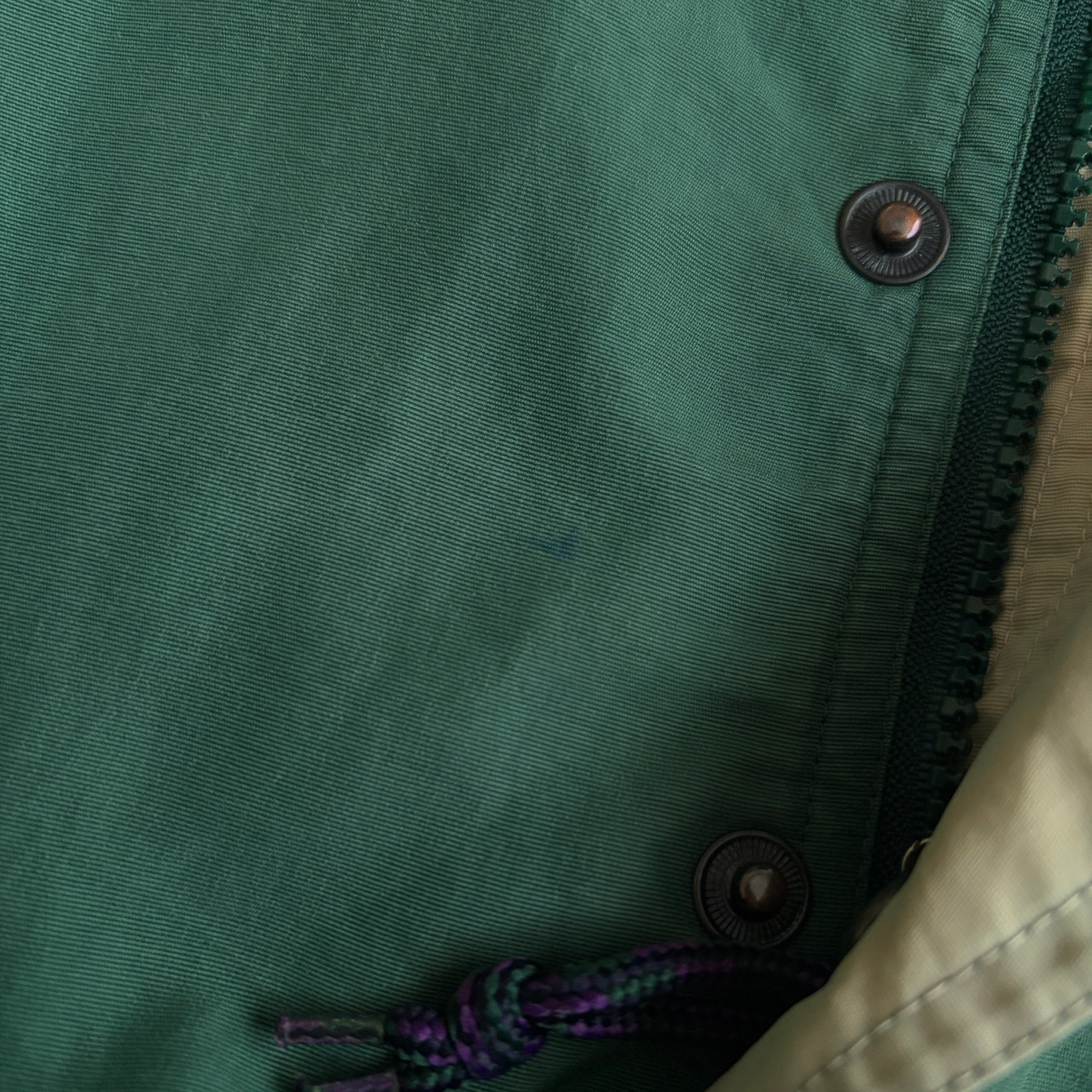 比翼フロントにスナップボタンとハーフジップ、腹部のポケットにカンガルーポケットの中にはカラビナと腰ドローコード、裾にはドローコード付き。