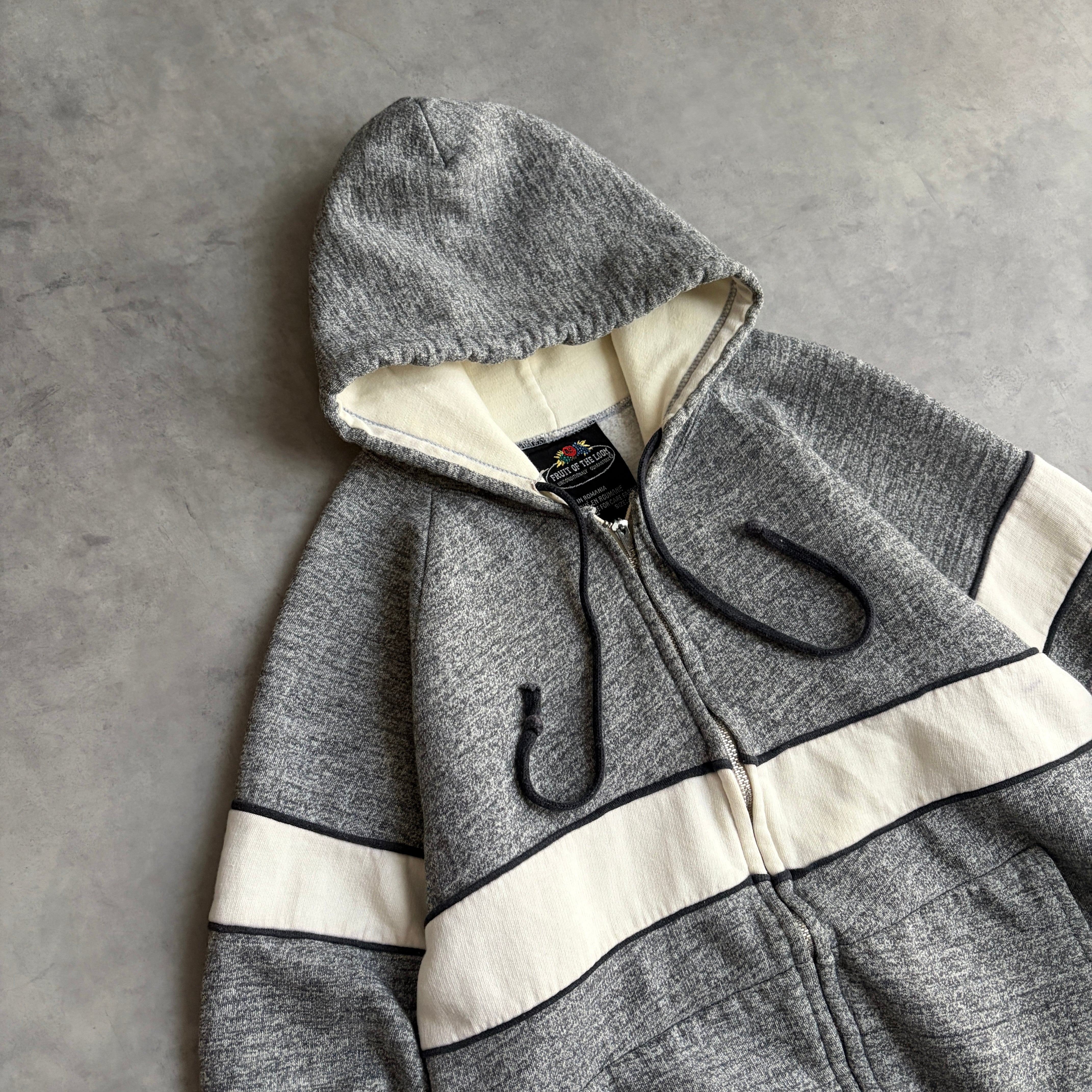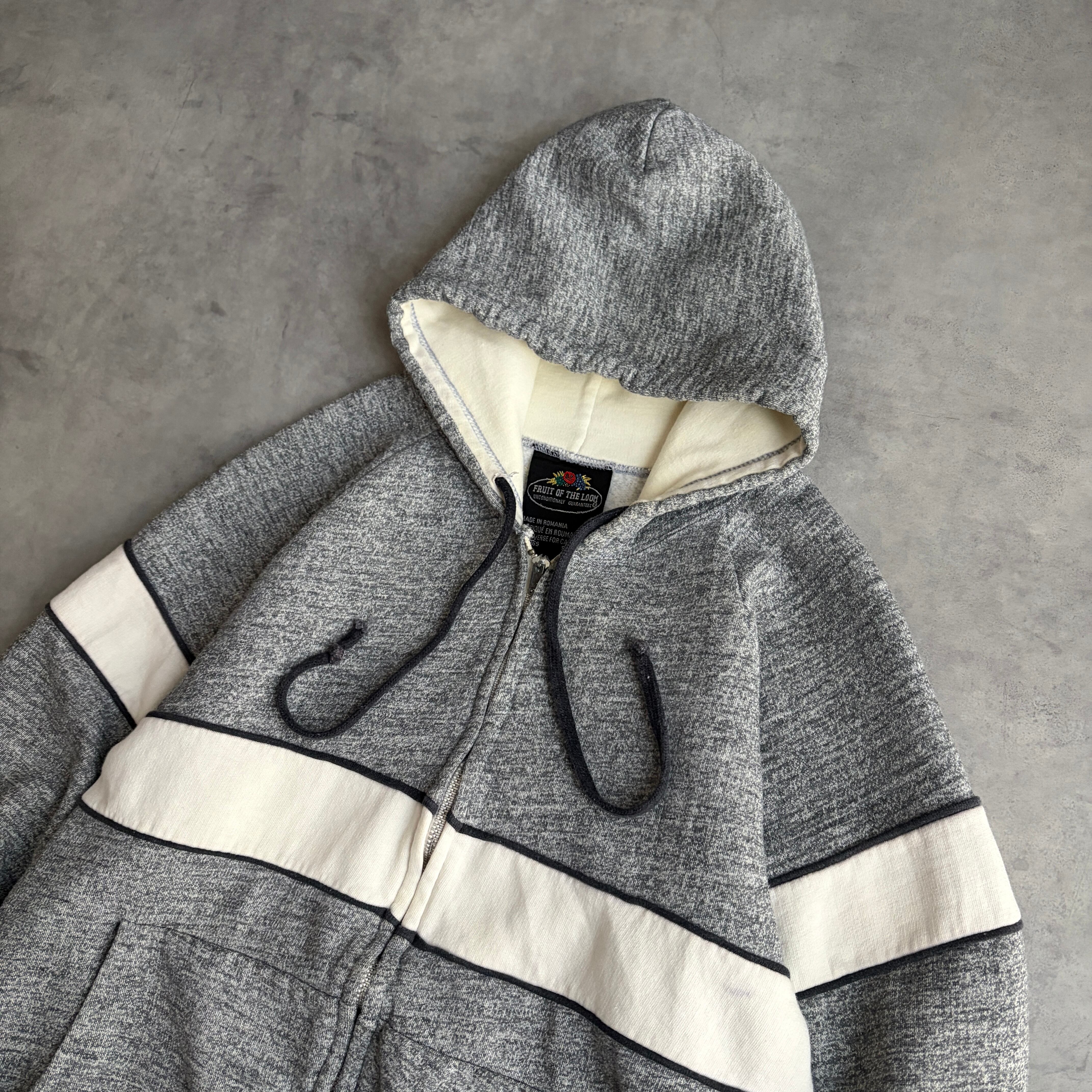 70s/FRUIT OF THE LOOM/フルーツオブザルーム/フルジップパーカー/ルーマニア製/バイカラー/太ボーダー/片爪ジップ/ピンロック/メランジ/杢/グレー