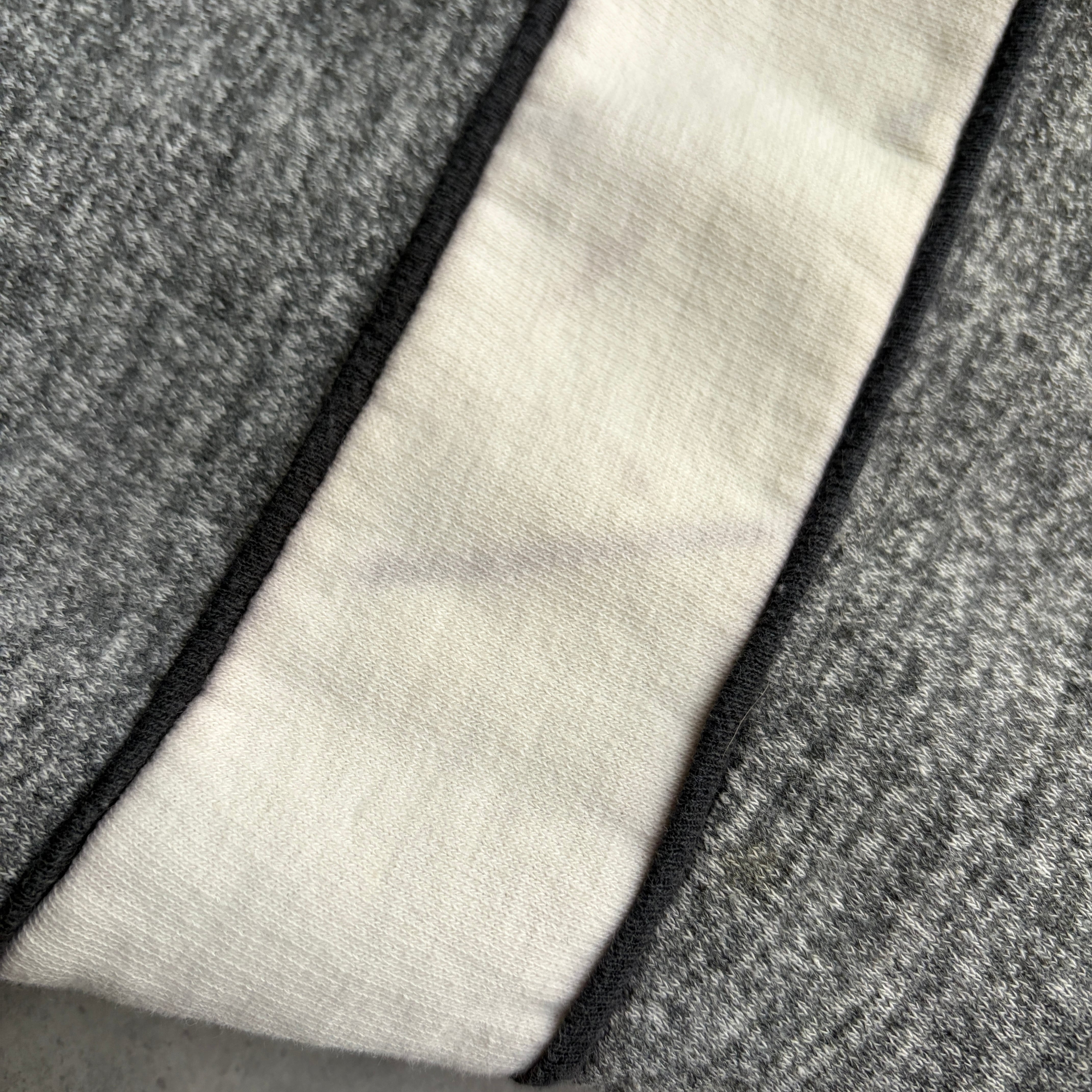 白い生地に色移りがあります。