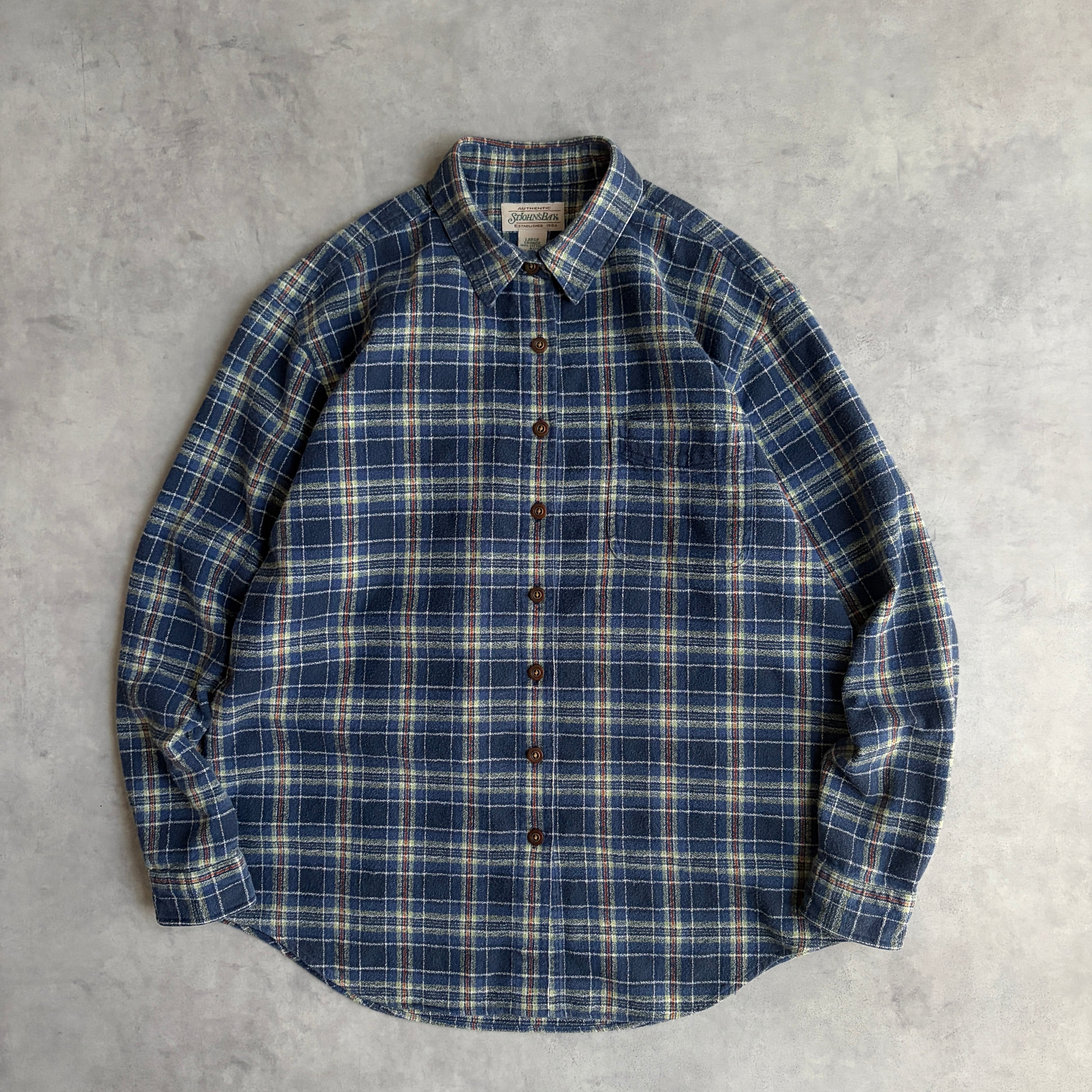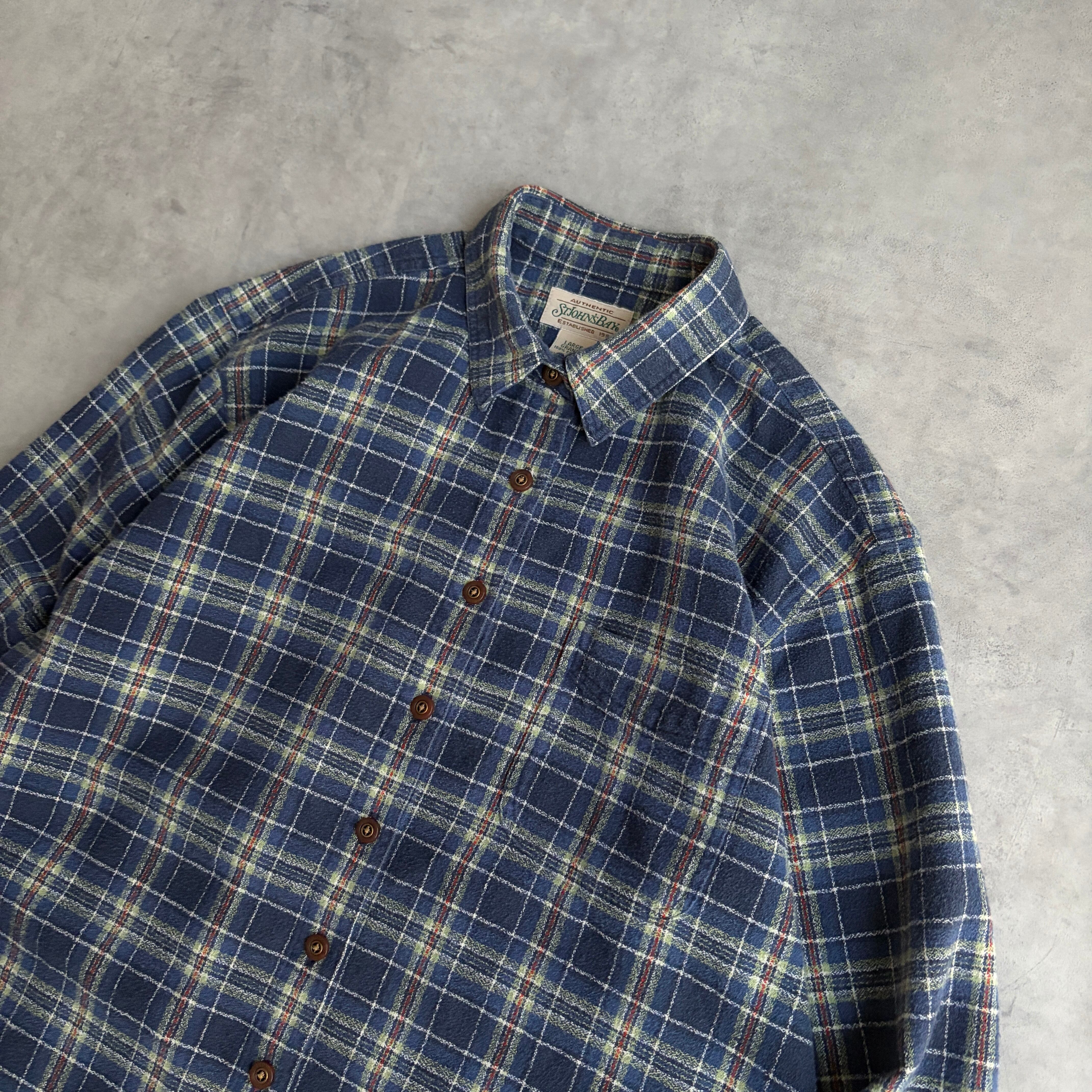 90s/ST JOHN'S BAY/セントジョンズベイ/フランネルシャツ/長袖/チェック/格子柄/樹脂ボタン/ブルーベース